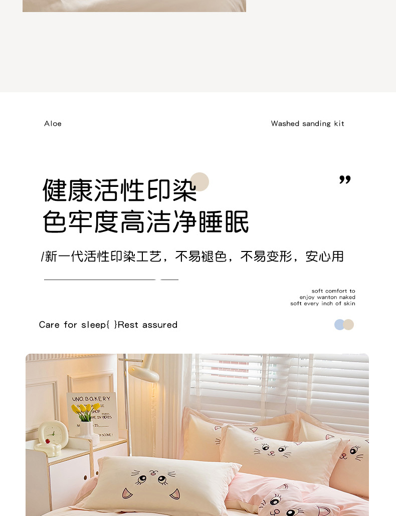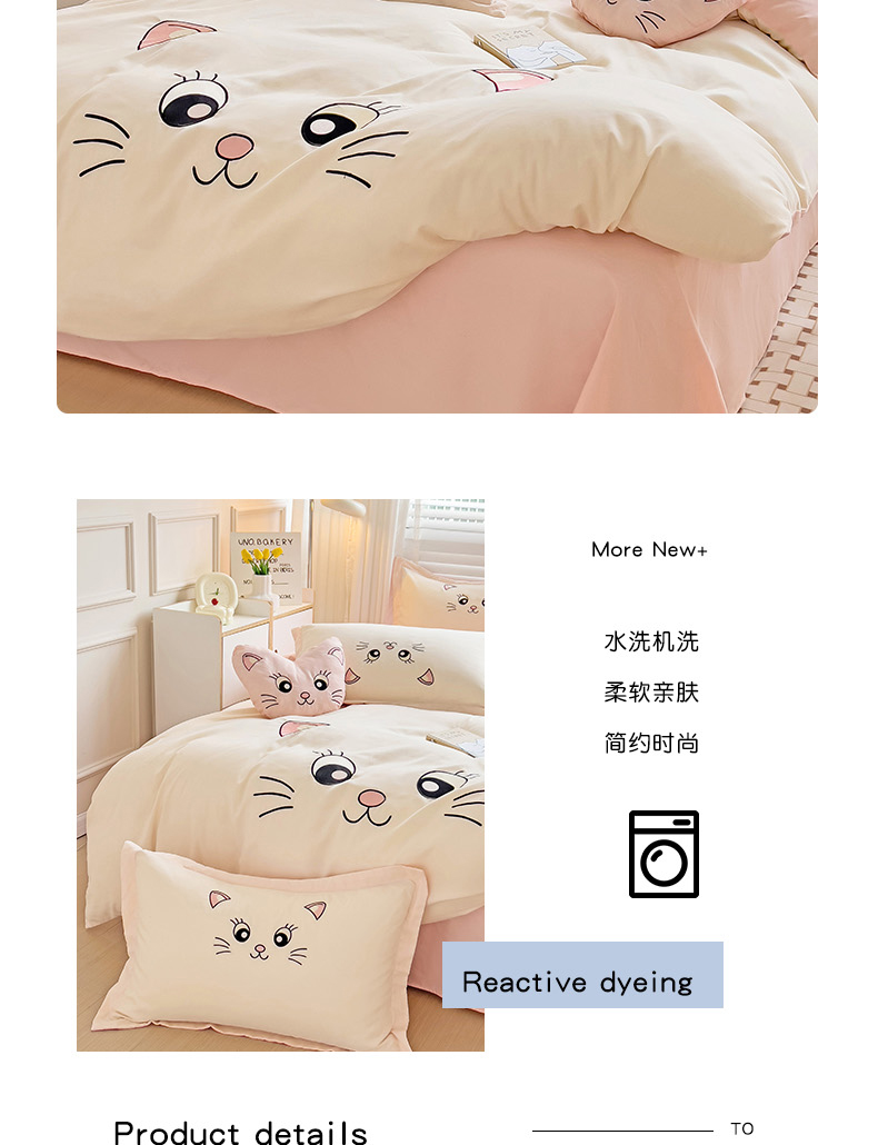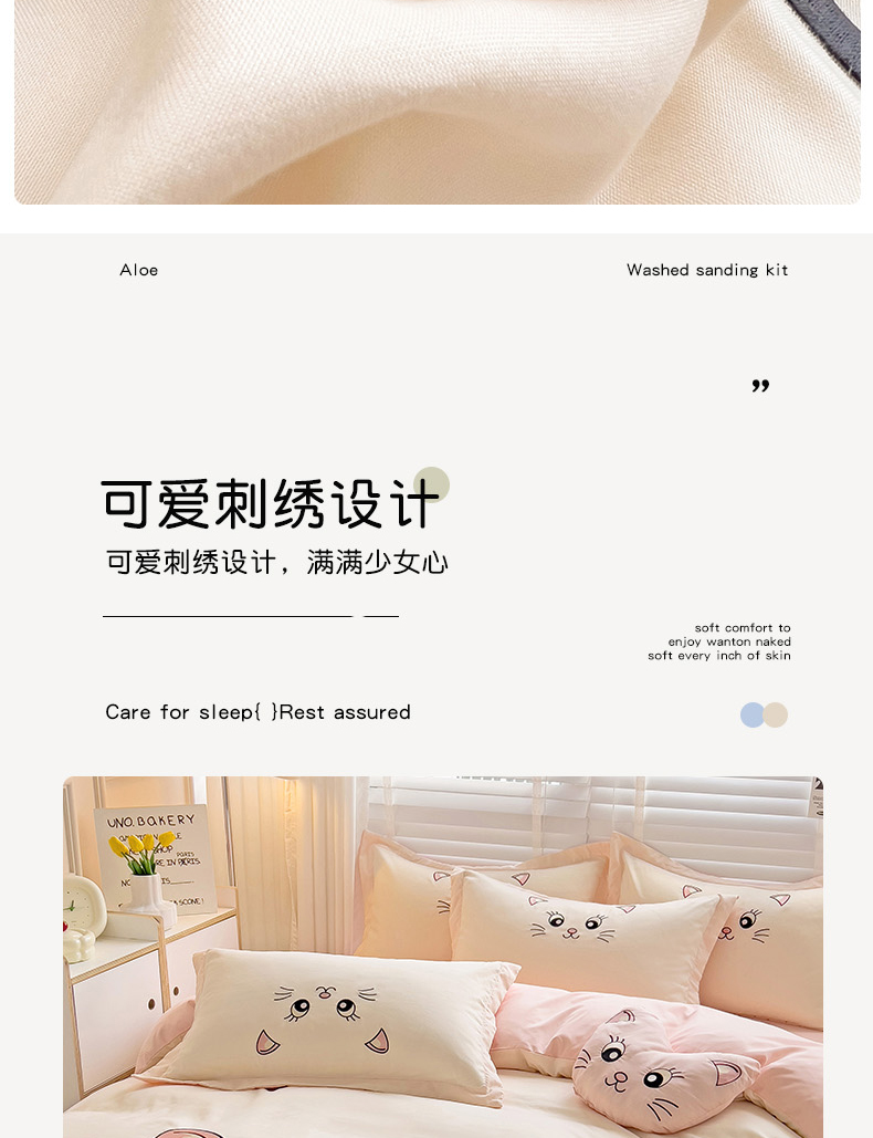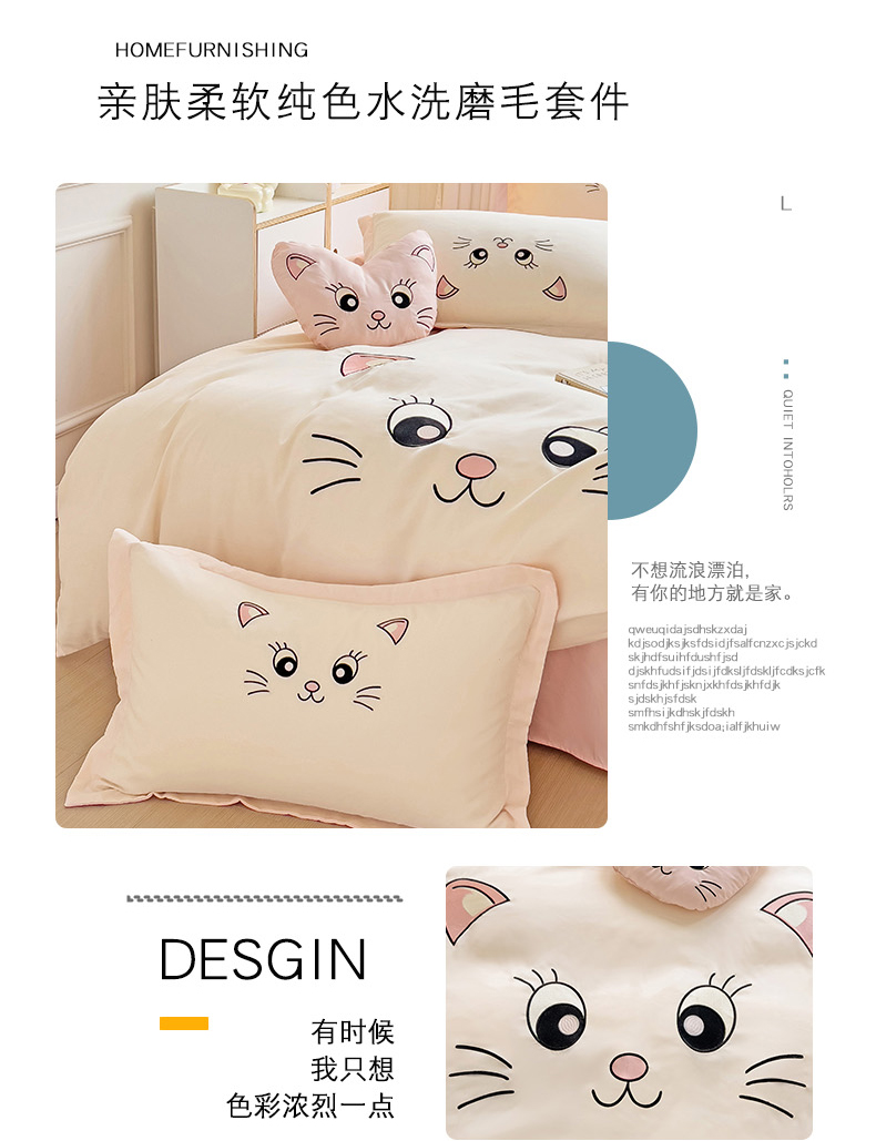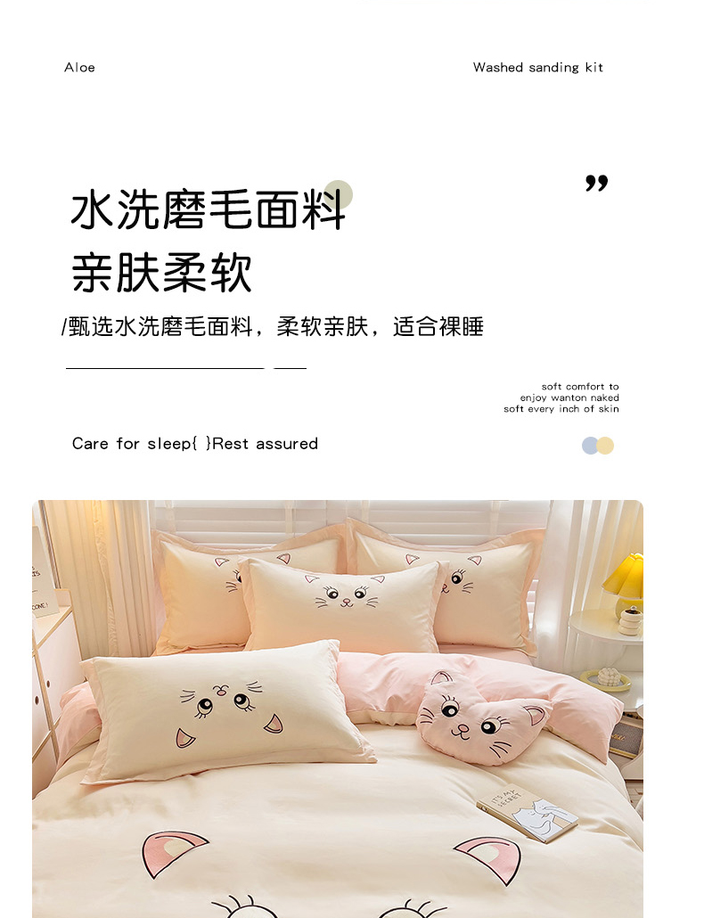 商品名称:娜娜 2023新款亲肤柔软水洗磨毛毛巾绣四件套-咪咪猫 咪咪猫-奶昔白