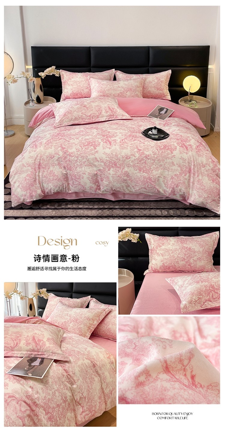 商品名称:慕希2024新款数码印花牛奶绒婴儿绒保暖绒四件套 诗情画意-粉