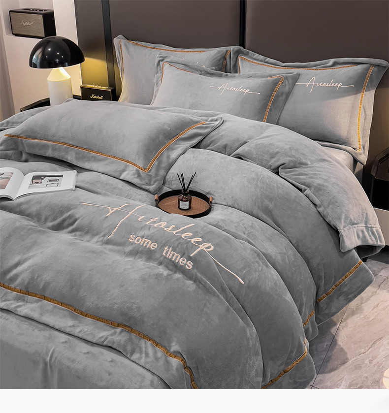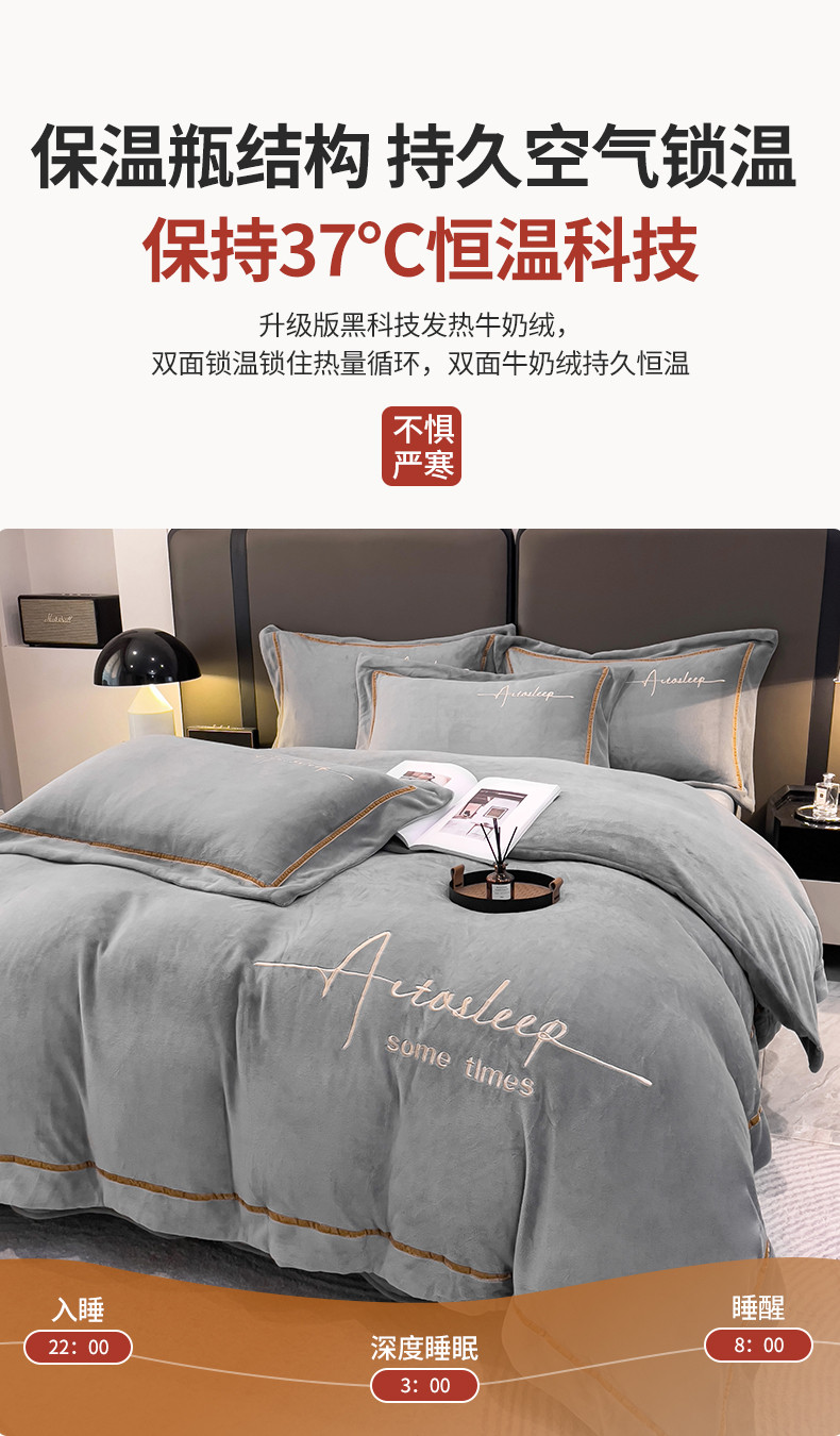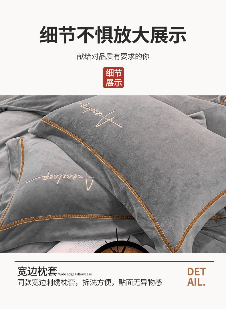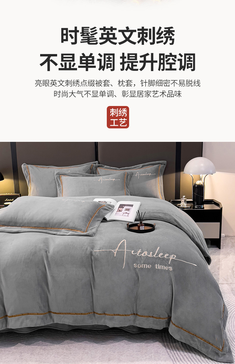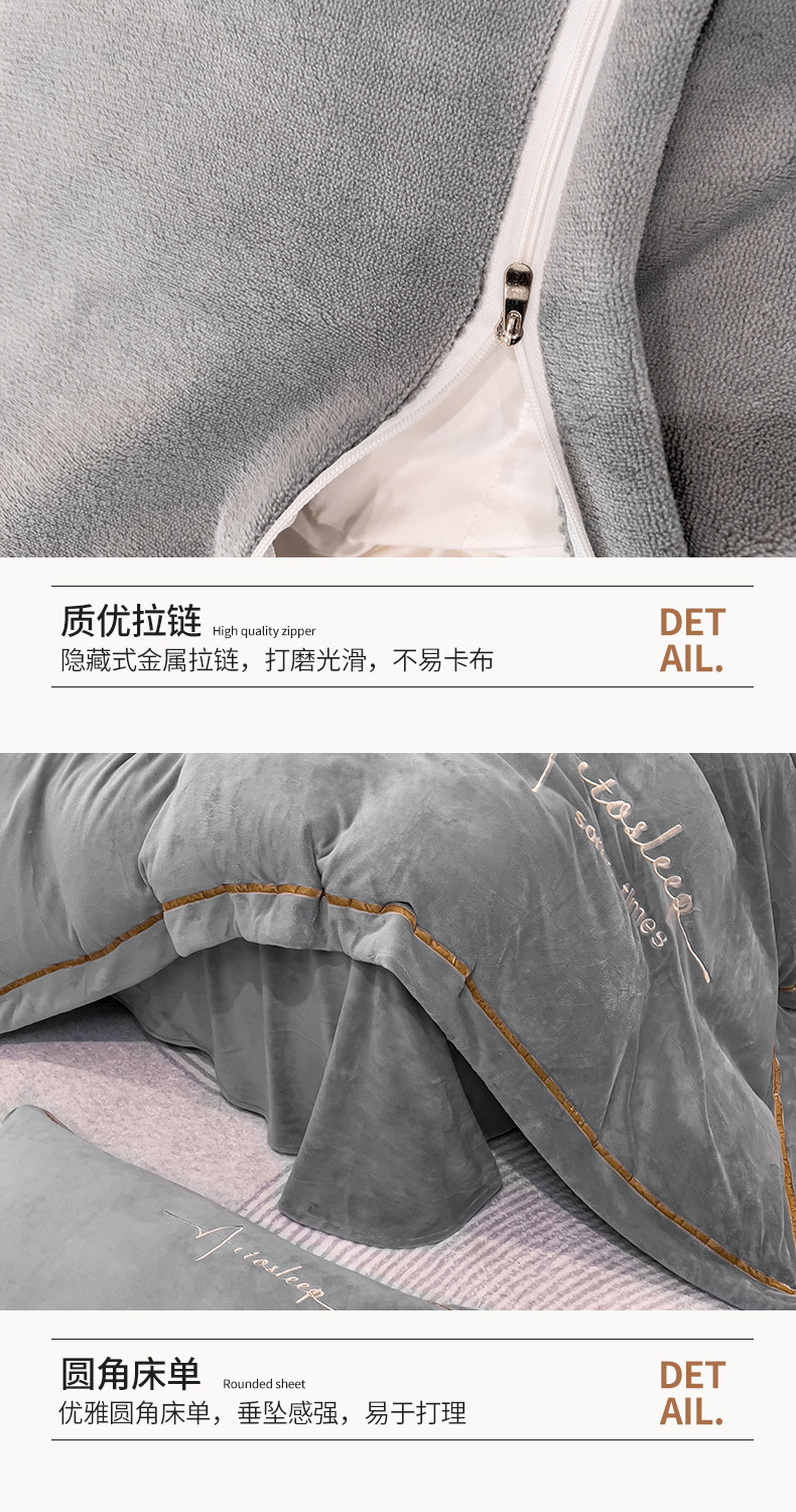 当前位置: 91家纺网 > 商品网购 > 床品套件 > 四件套 > 牛奶绒四件套 > 露梦 2025新款高克重牛奶绒刺绣四件套-赫本 赫本-绅士灰