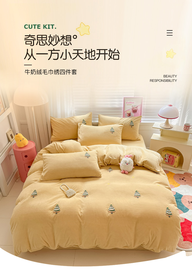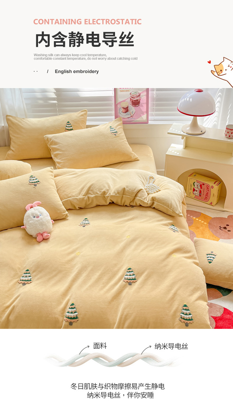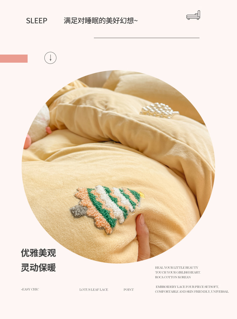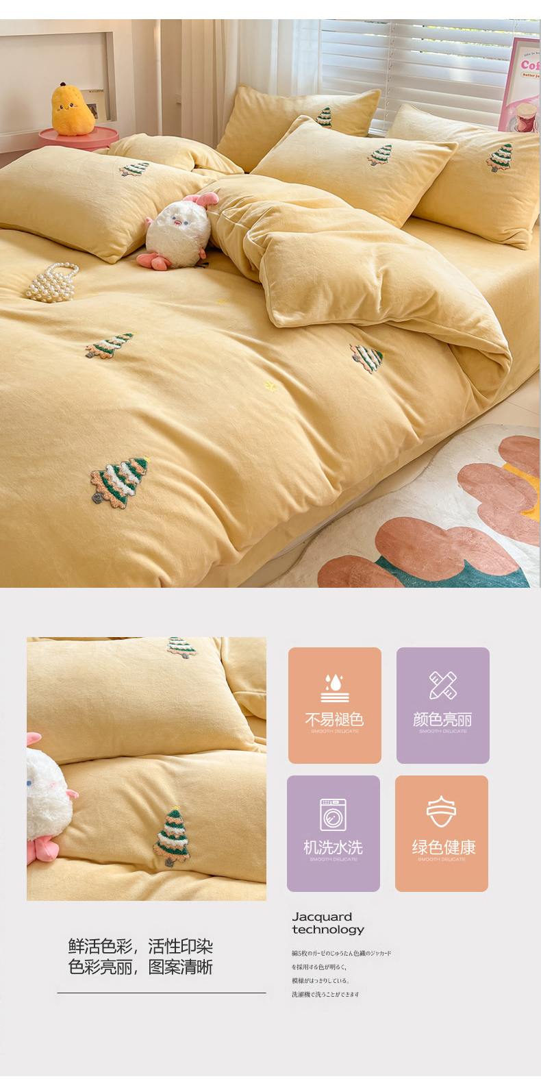 商品名称:丽涵家纺 2023秋冬散版牛奶绒毛巾绣系列四件套 圣诞树