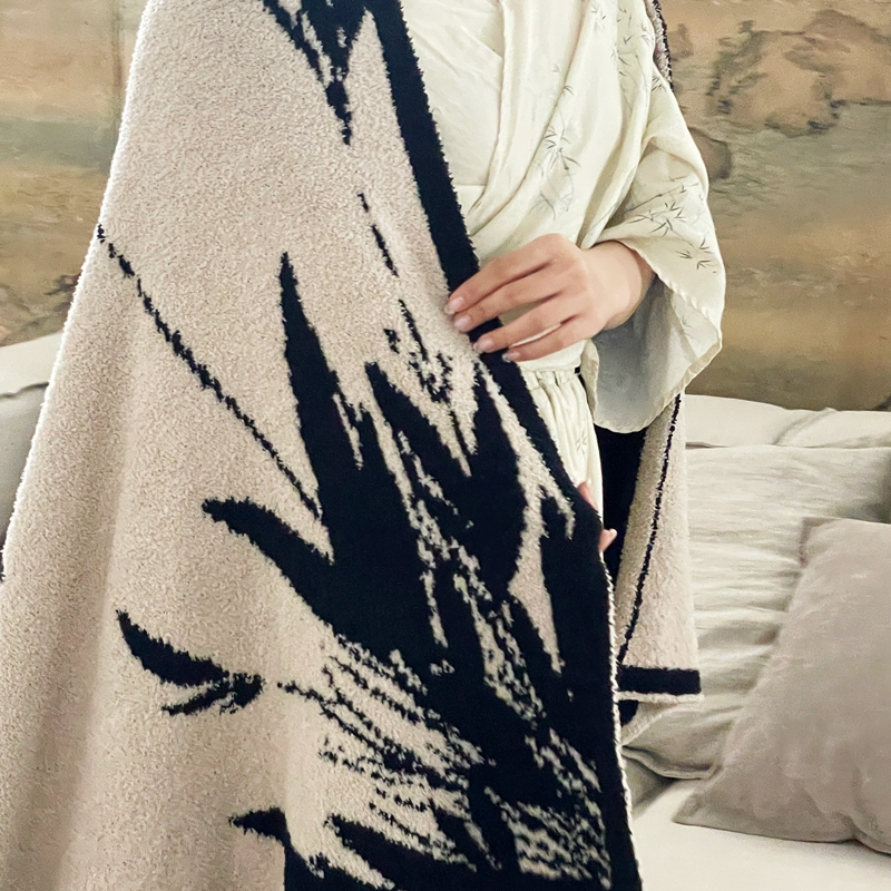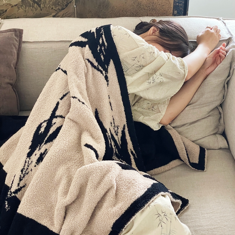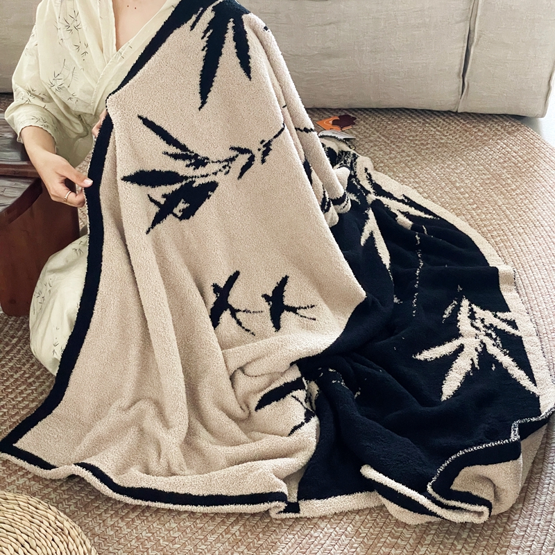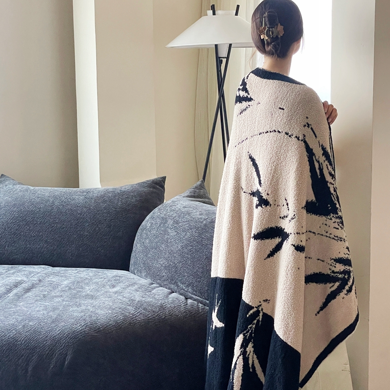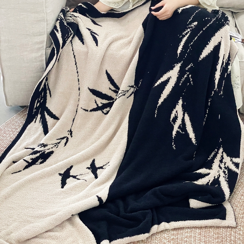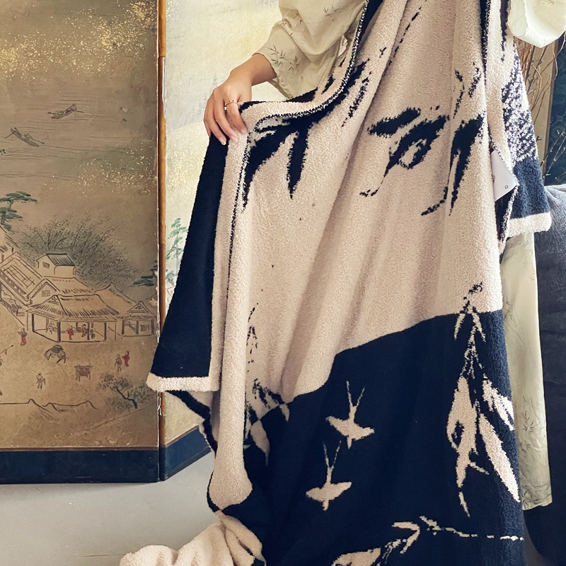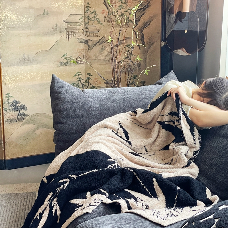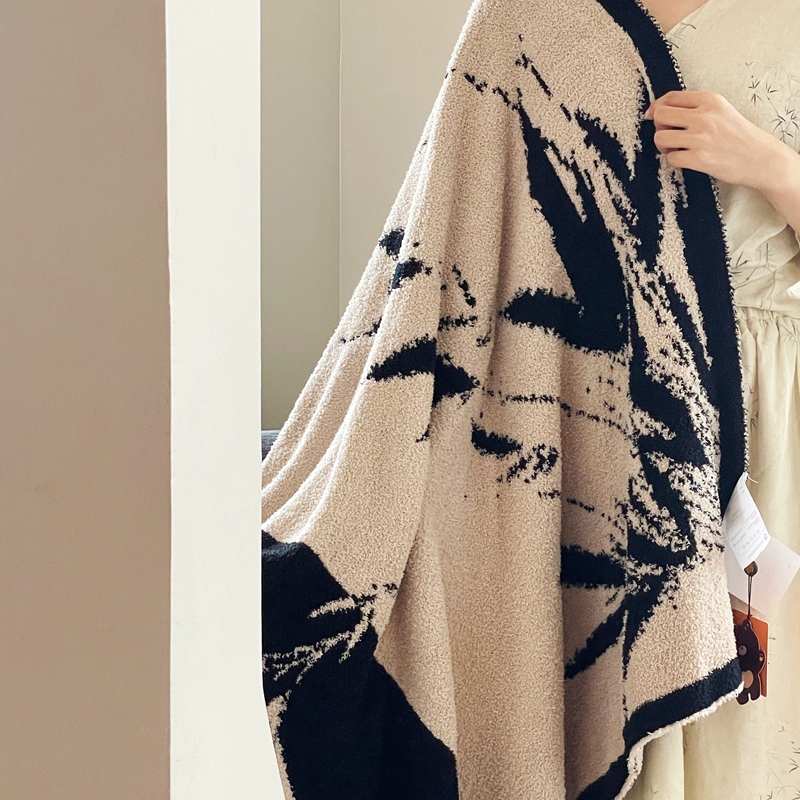 圆岛家纺 2023新款半边绒针织毛毯 隐竹
