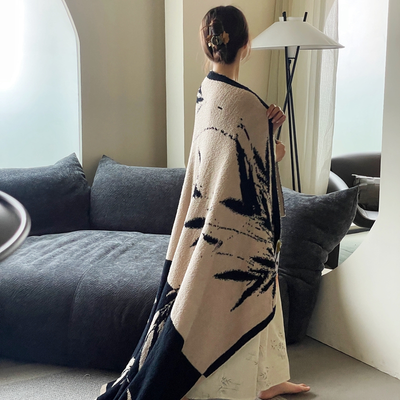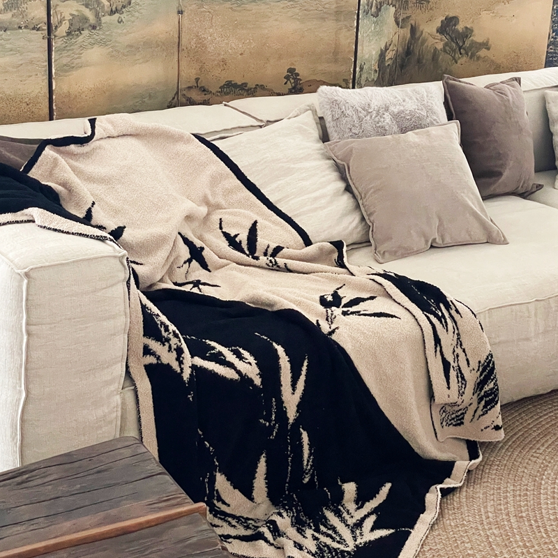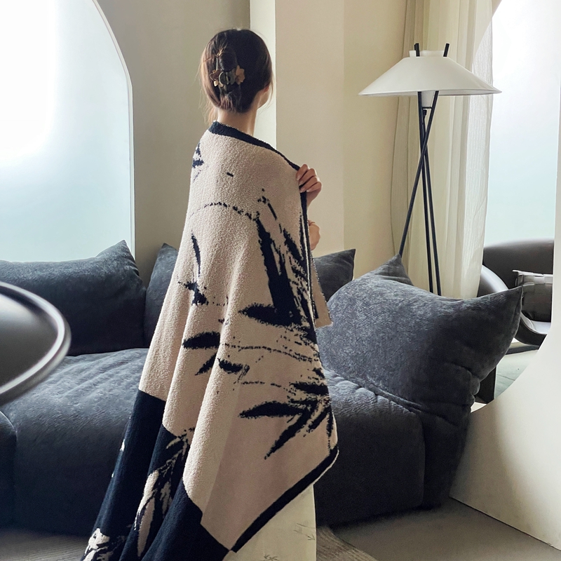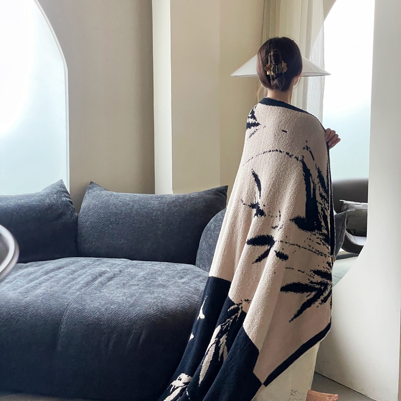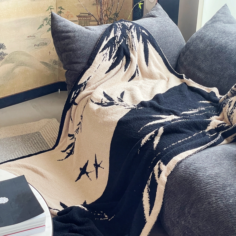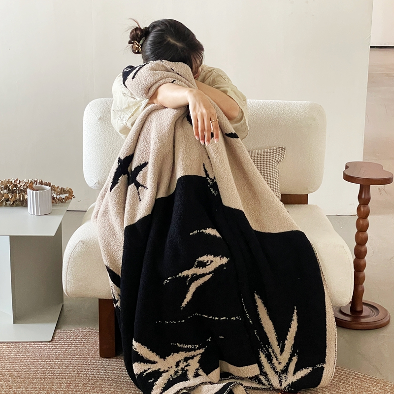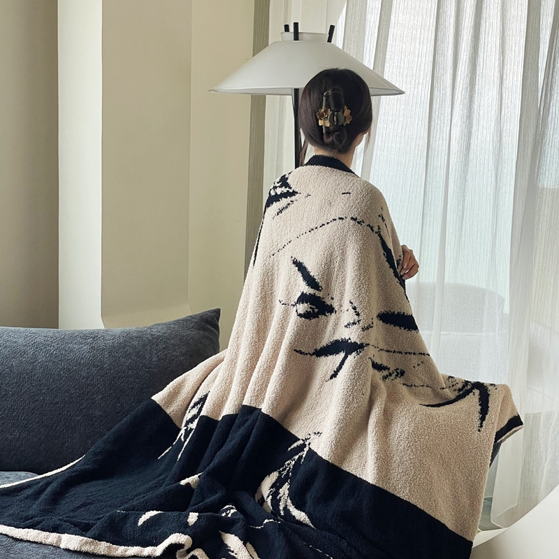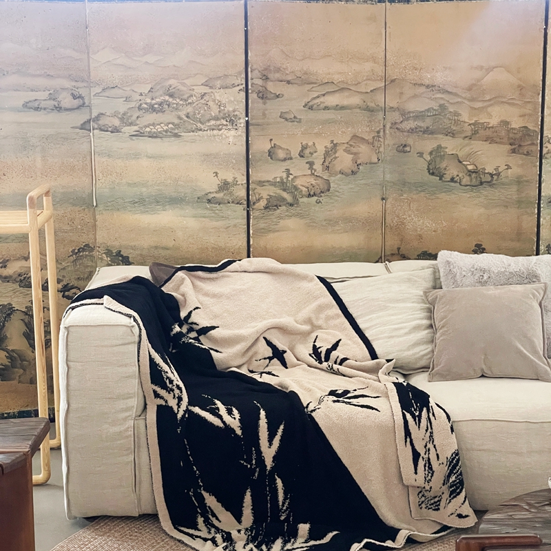 圆岛家纺 2023新款半边绒针织毛毯 隐竹