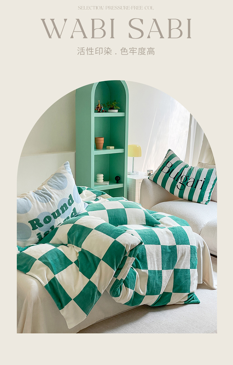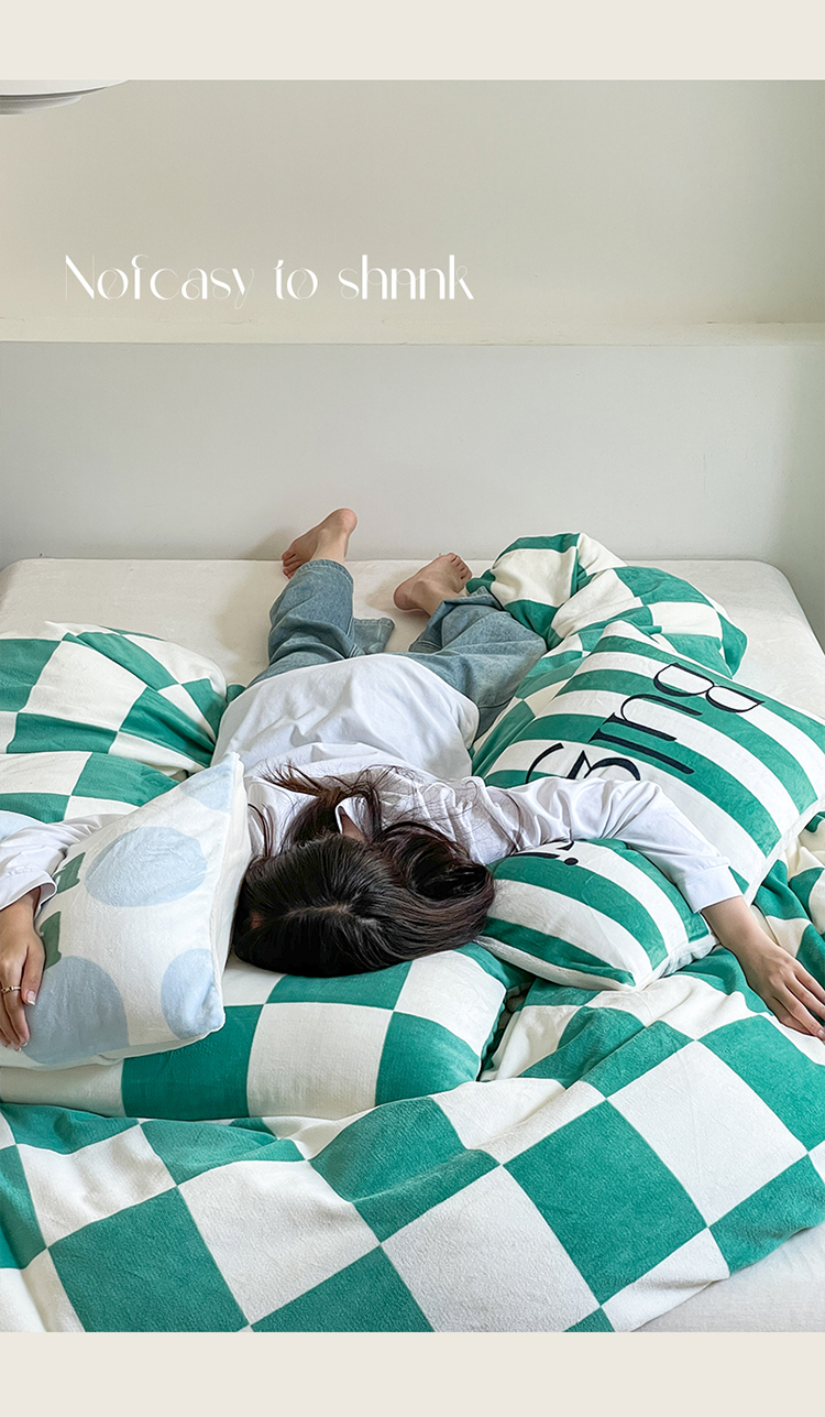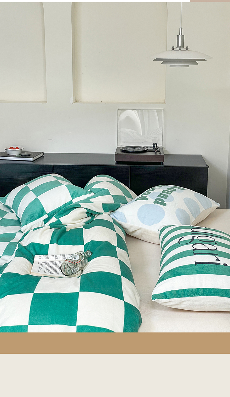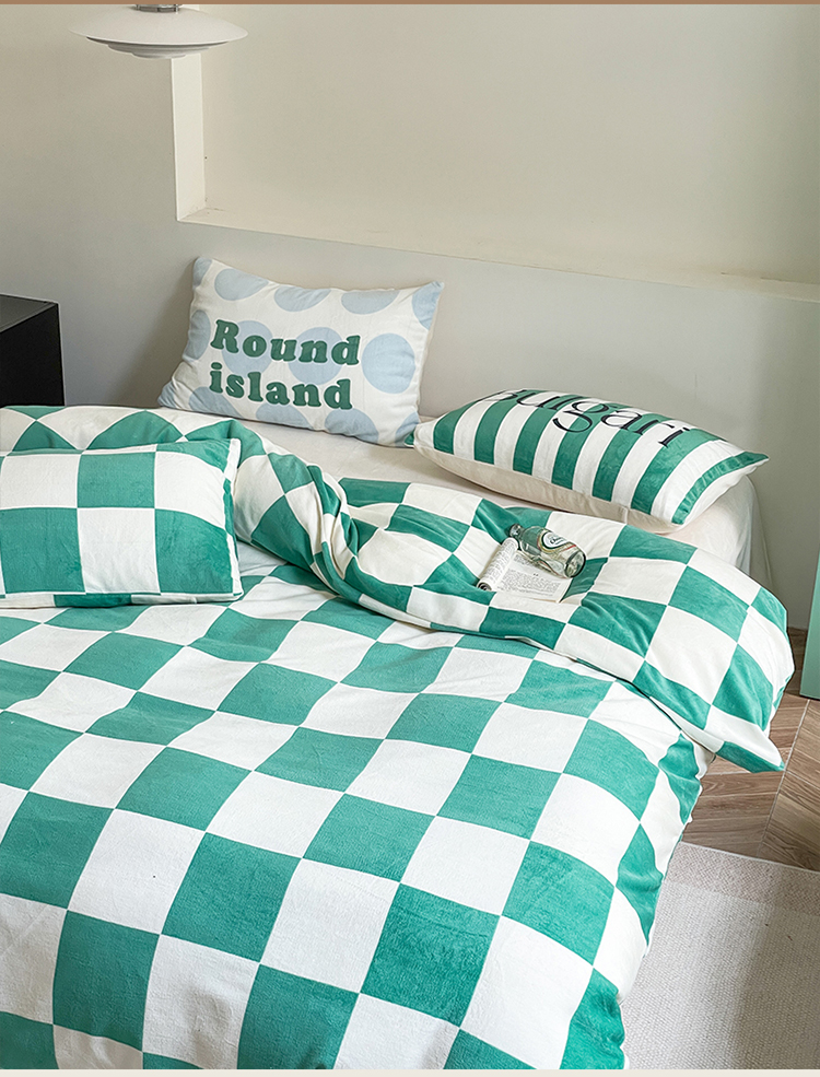 圆岛家纺 2023新款原创牛奶绒印花保暖四件套 棋盘格绿