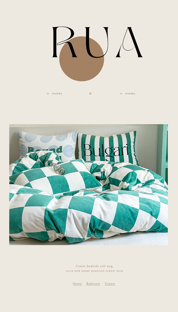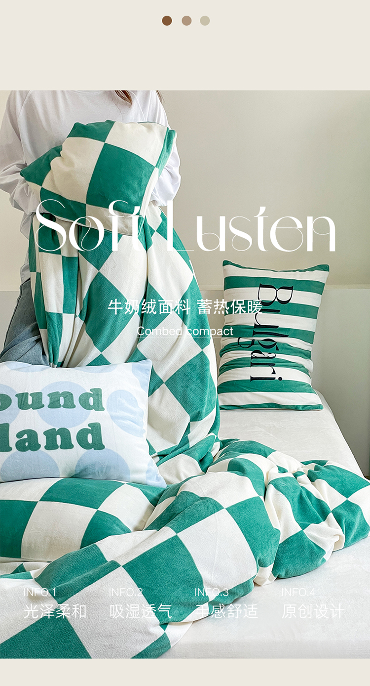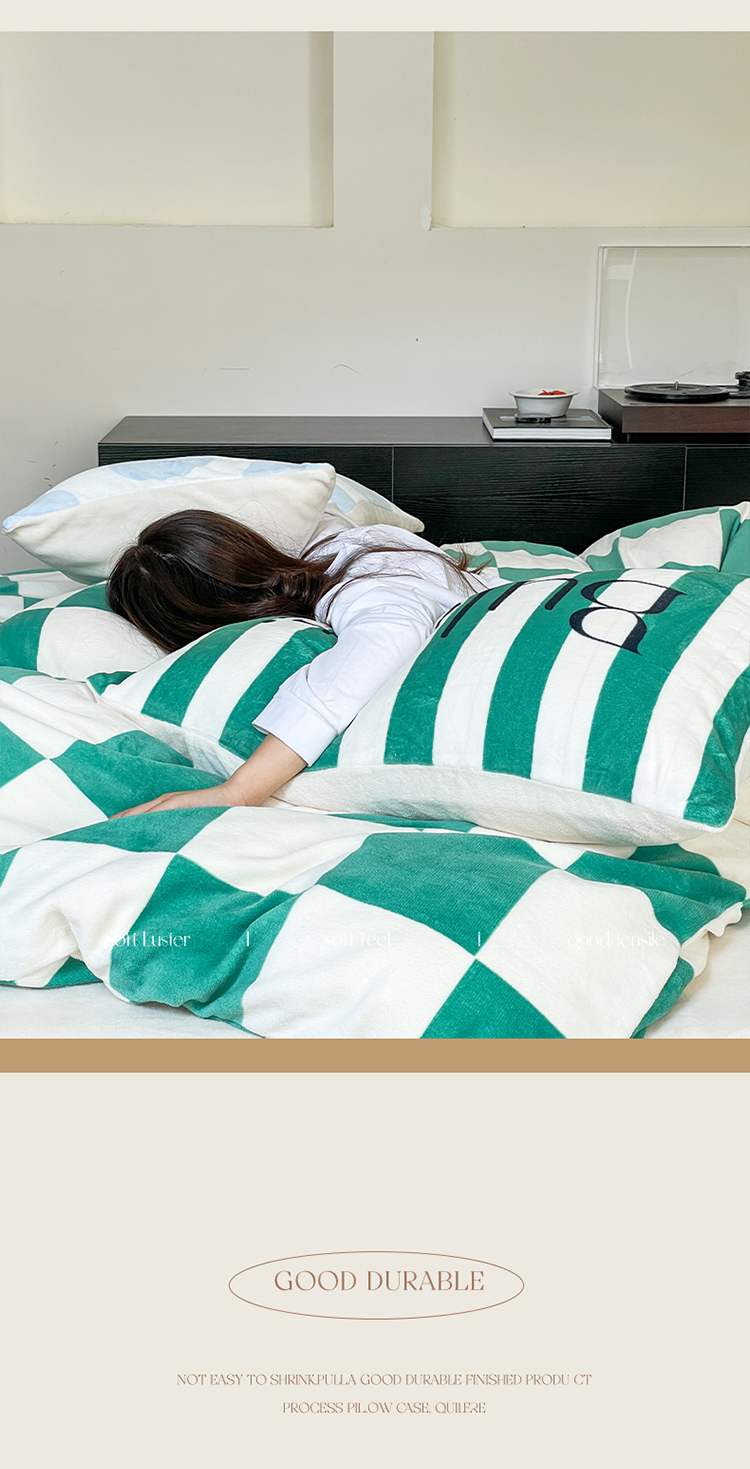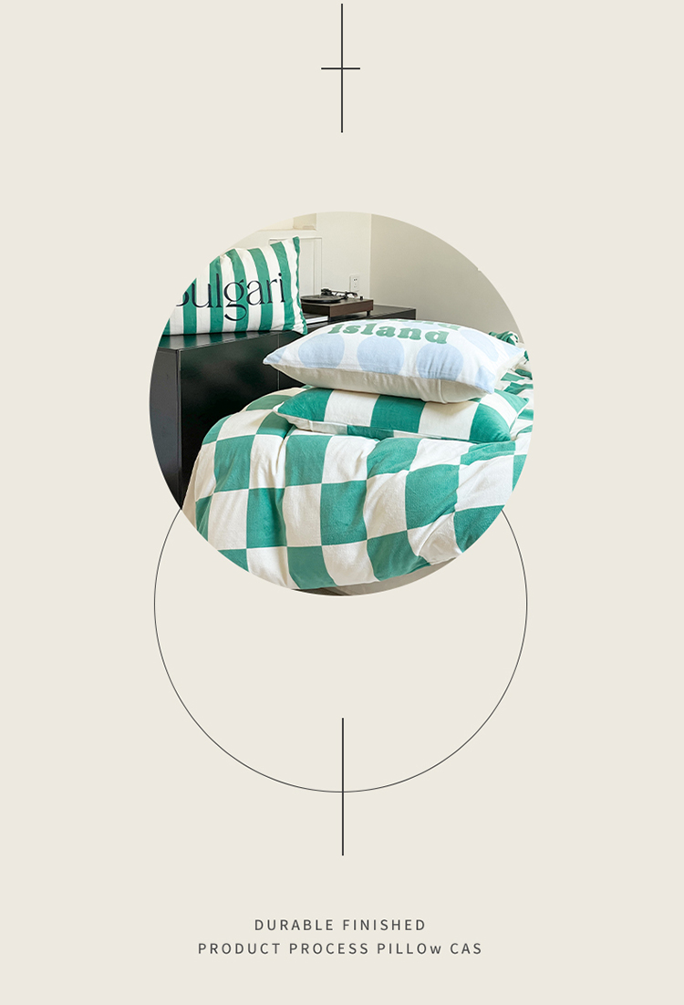 圆岛家纺 2023新款原创牛奶绒印花保暖四件套 棋盘格绿