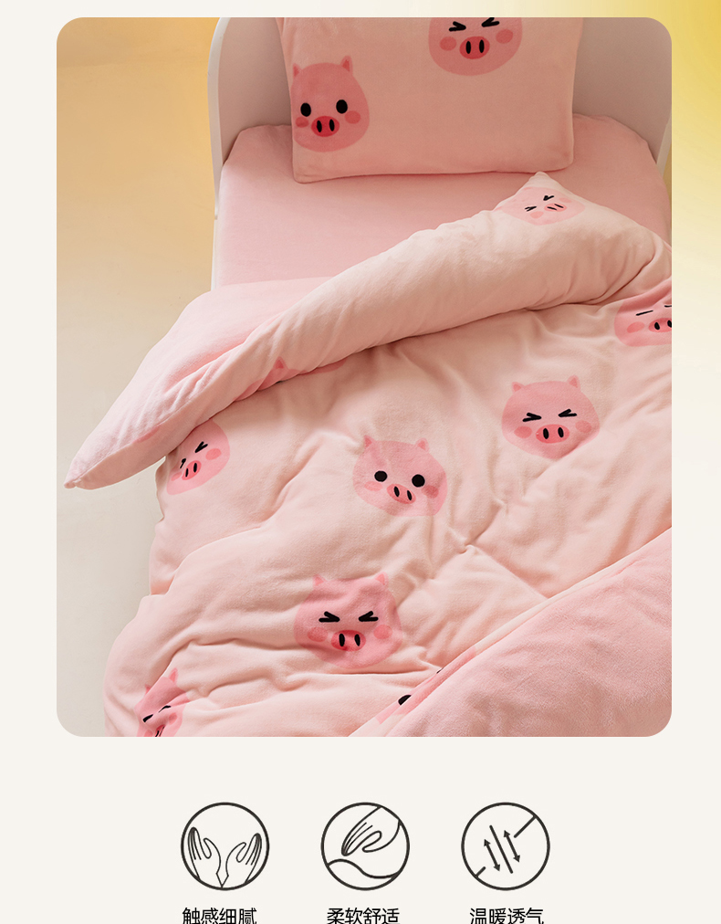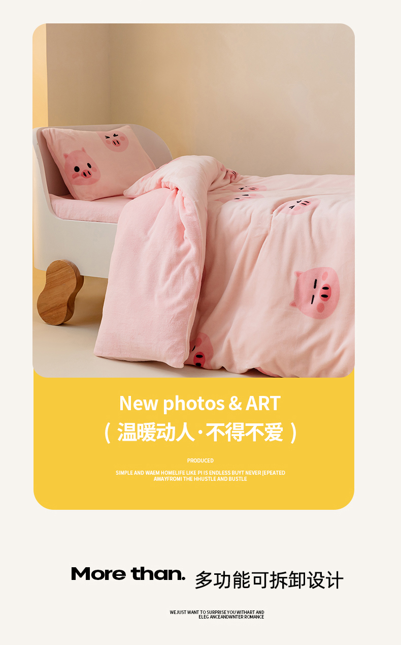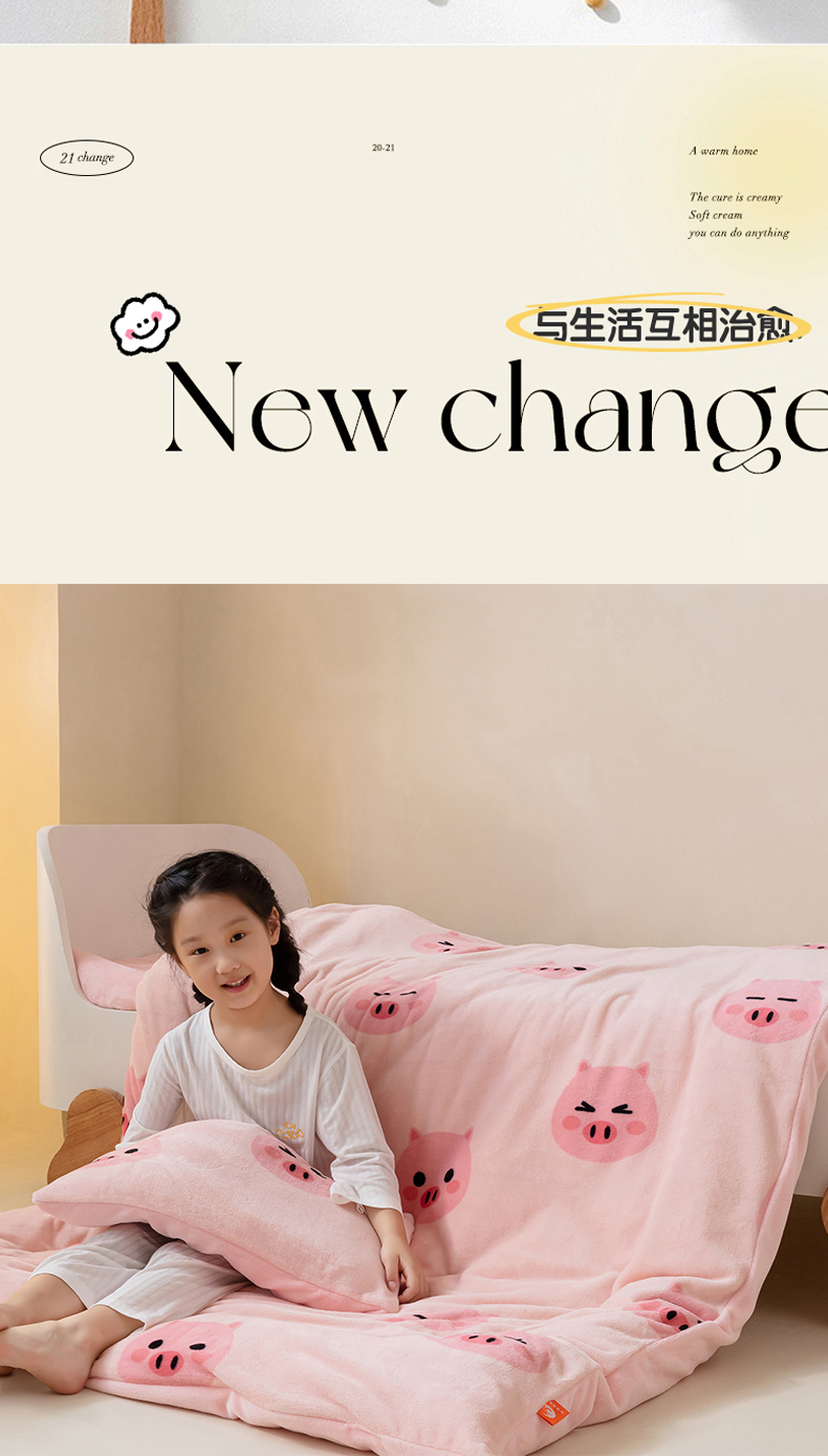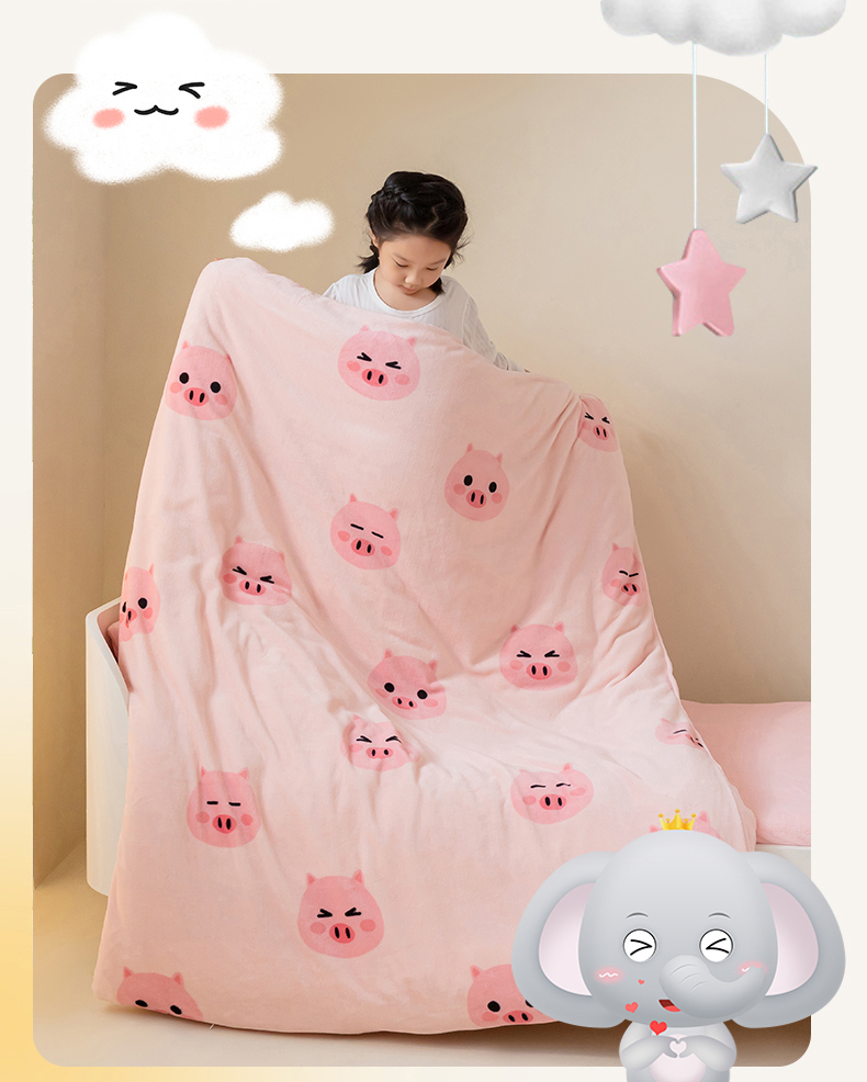 • 91家纺网 家纺一手货源 找家纺 艾佳宝贝 2023新款牛奶绒多功能儿童盖毯式可脱卸被子 pink 小猪