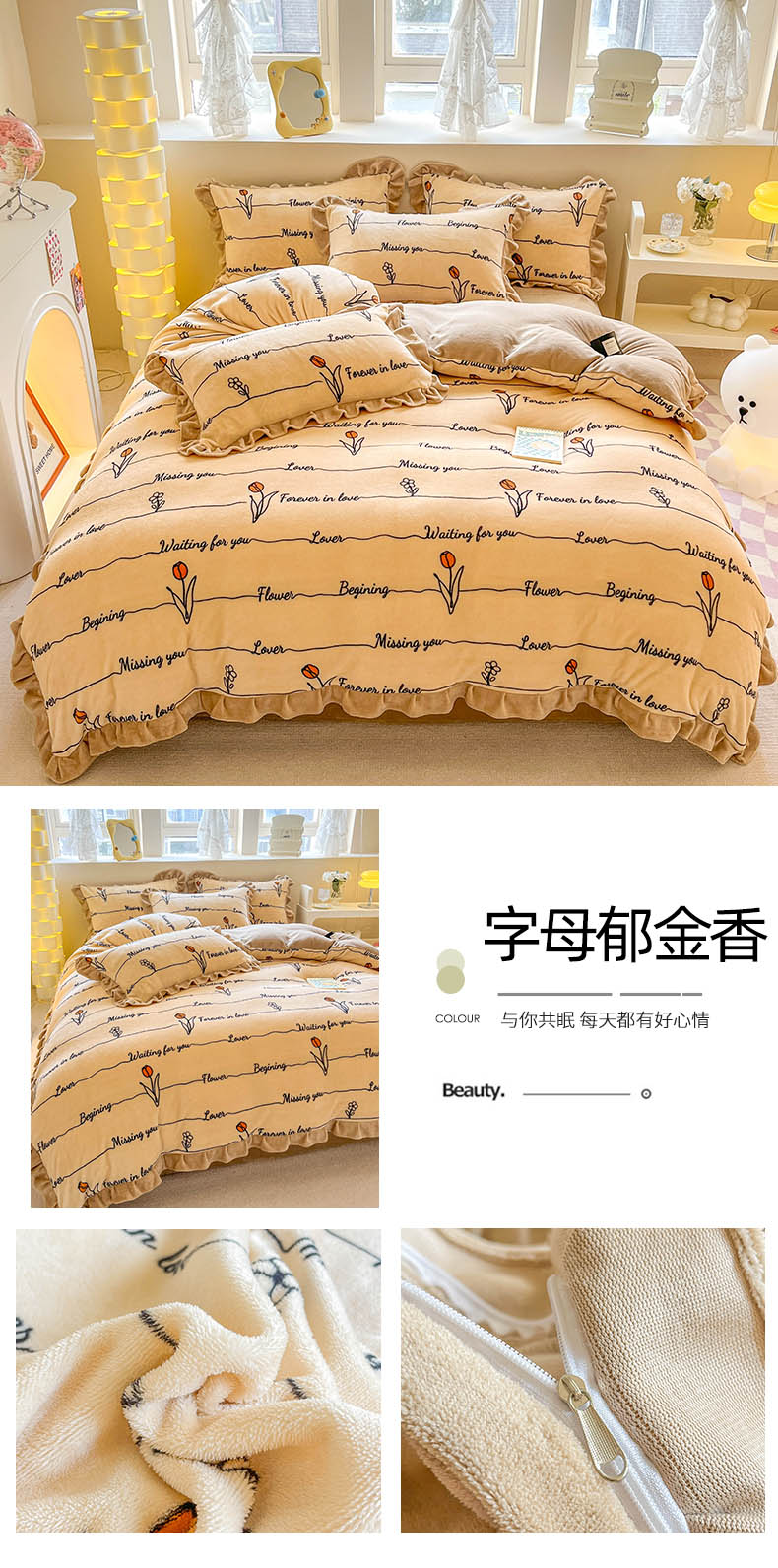 商品名称:米莱 2023新款印花韩版牛奶绒四件套 字母郁金香