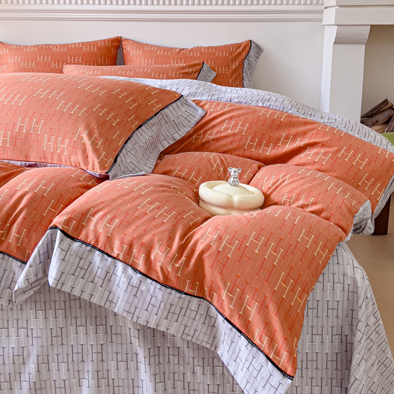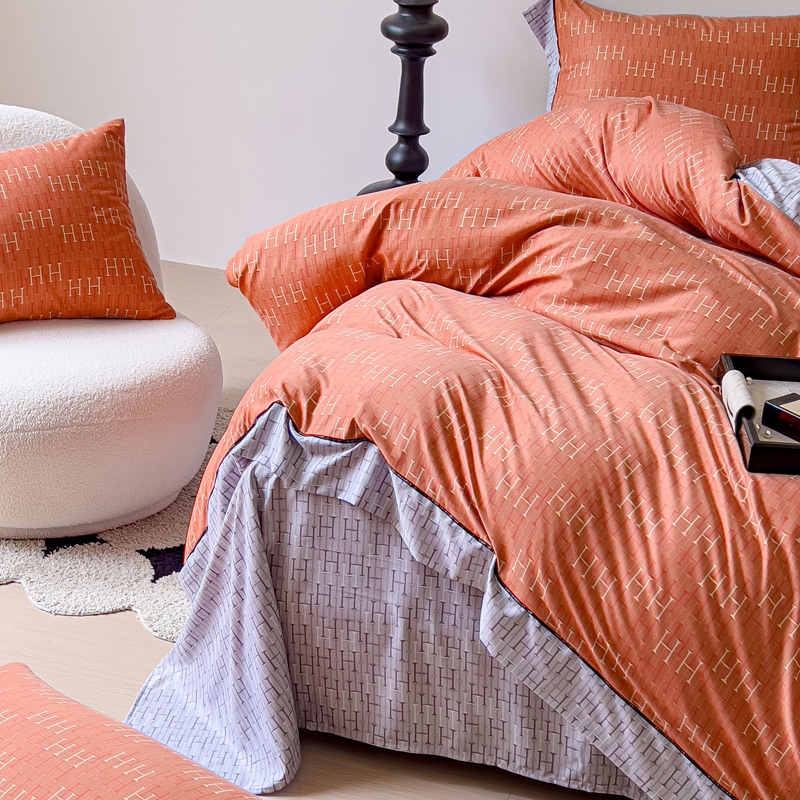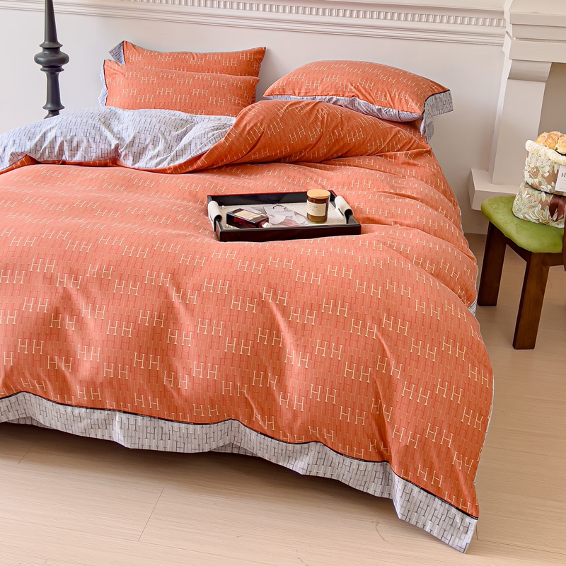 商品名称:棉生活 2023新款云绒棉印花宽边四件套 H橙
