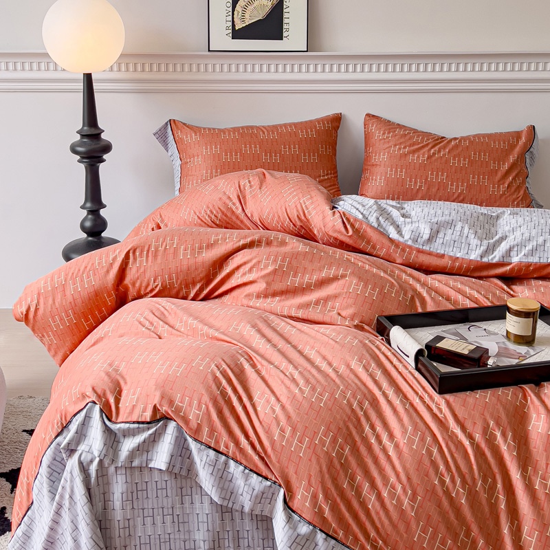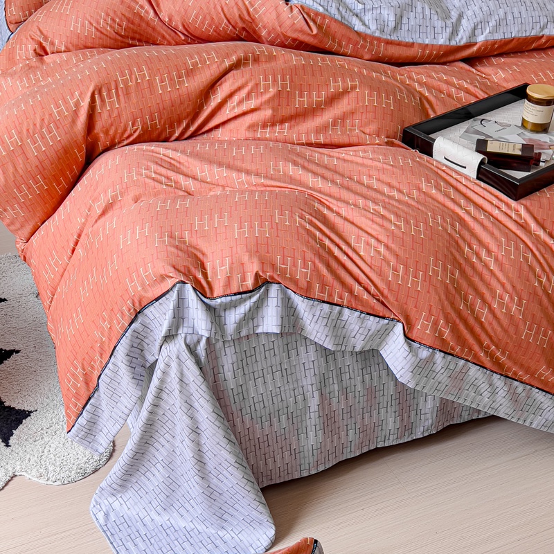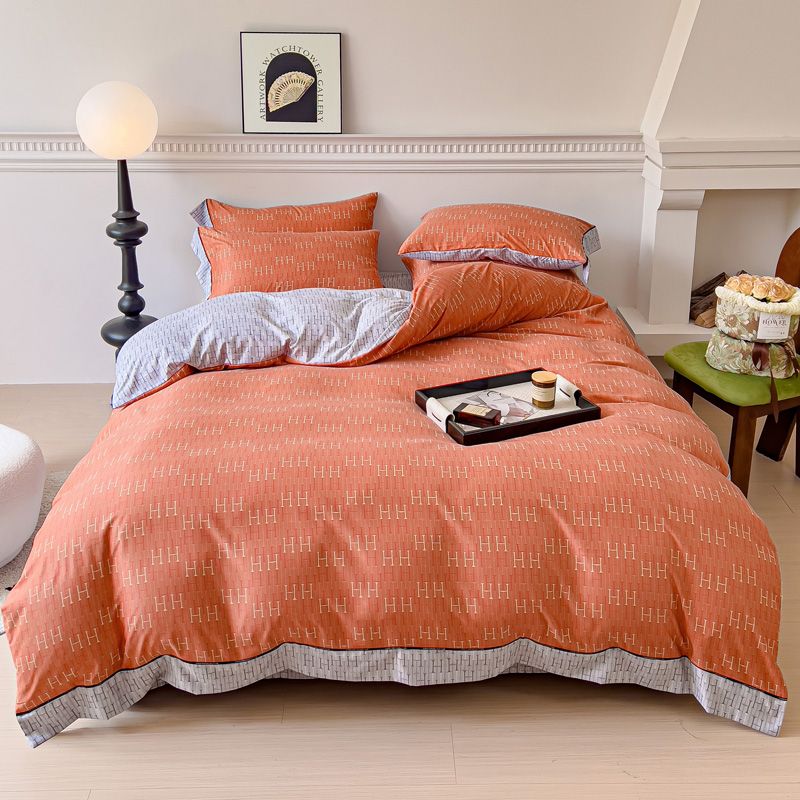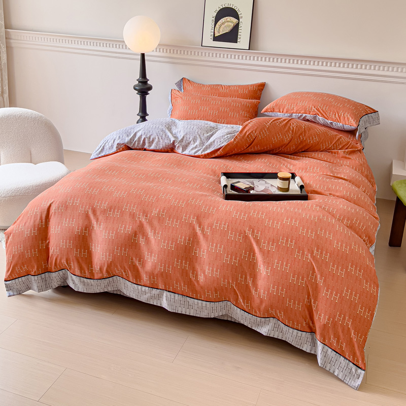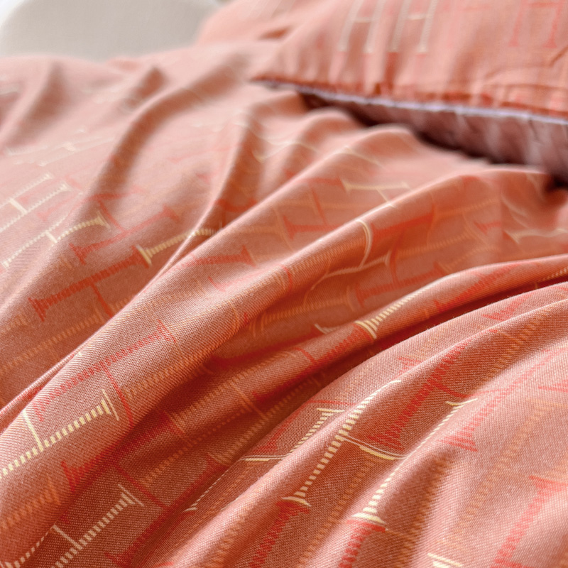 棉生活 2023新款云绒棉印花宽边四件套 H橙