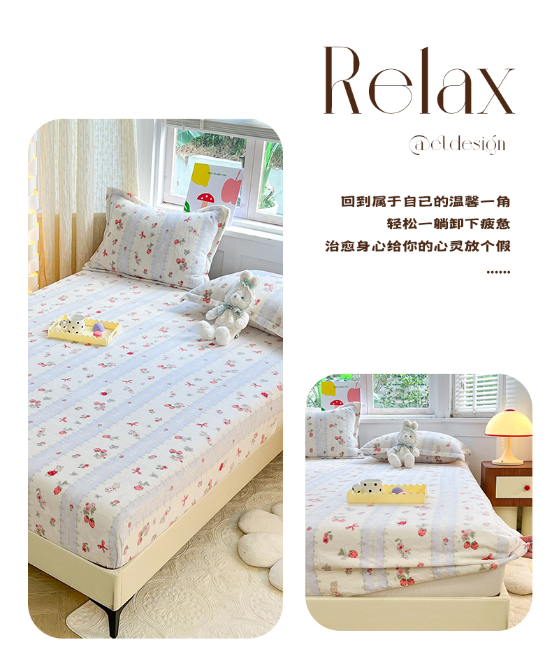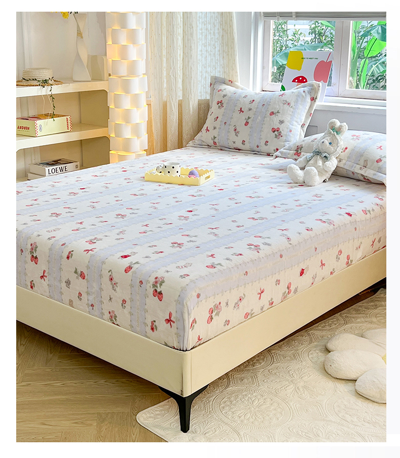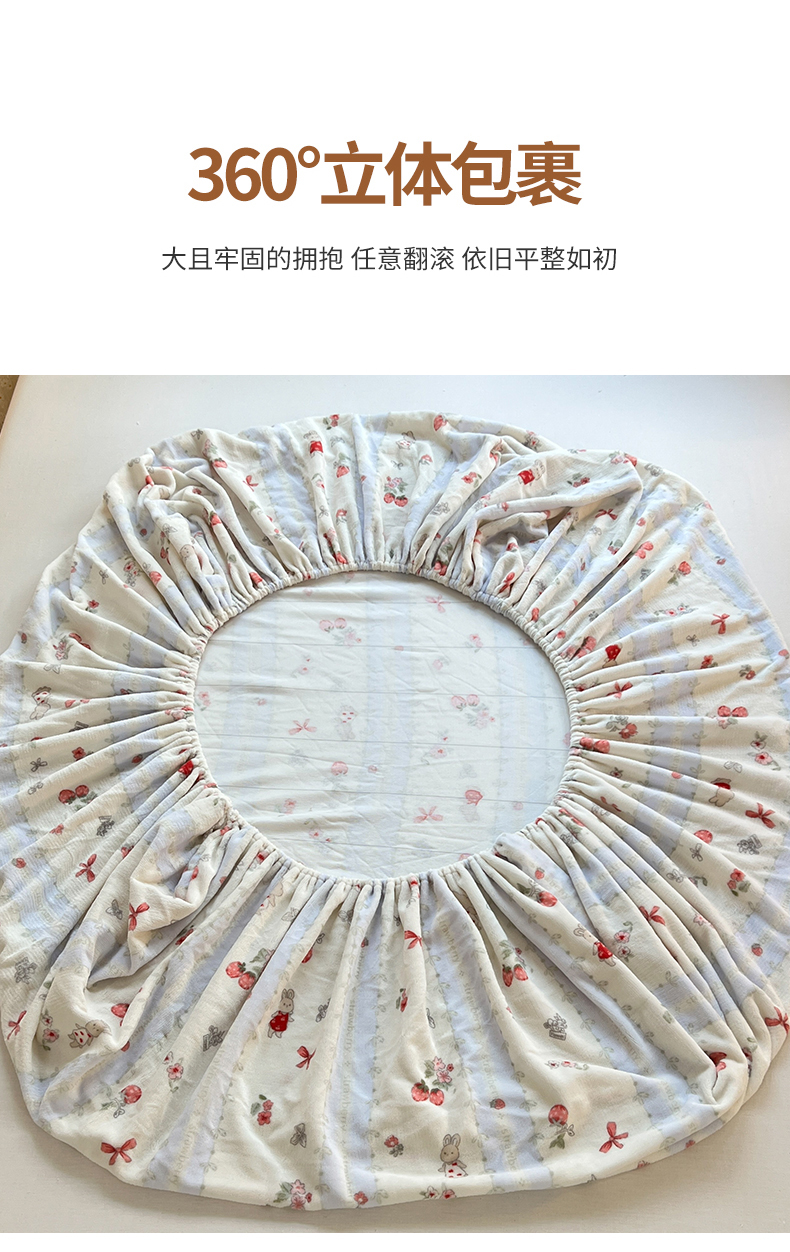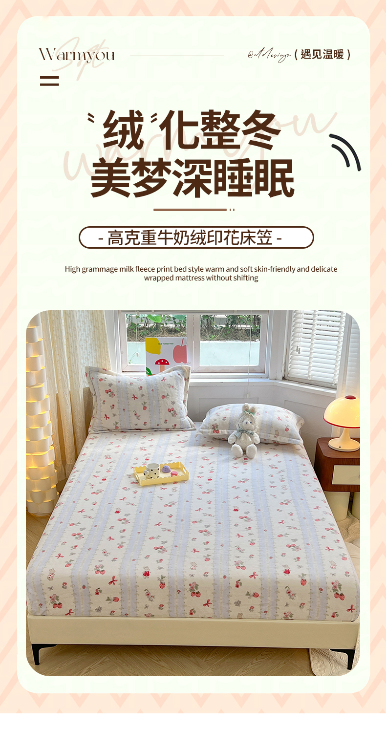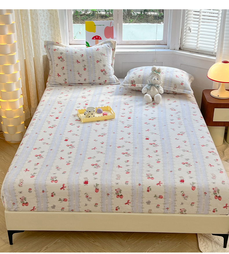妖妖家纺 2023新款牛奶绒单床笠 兔兔与草莓