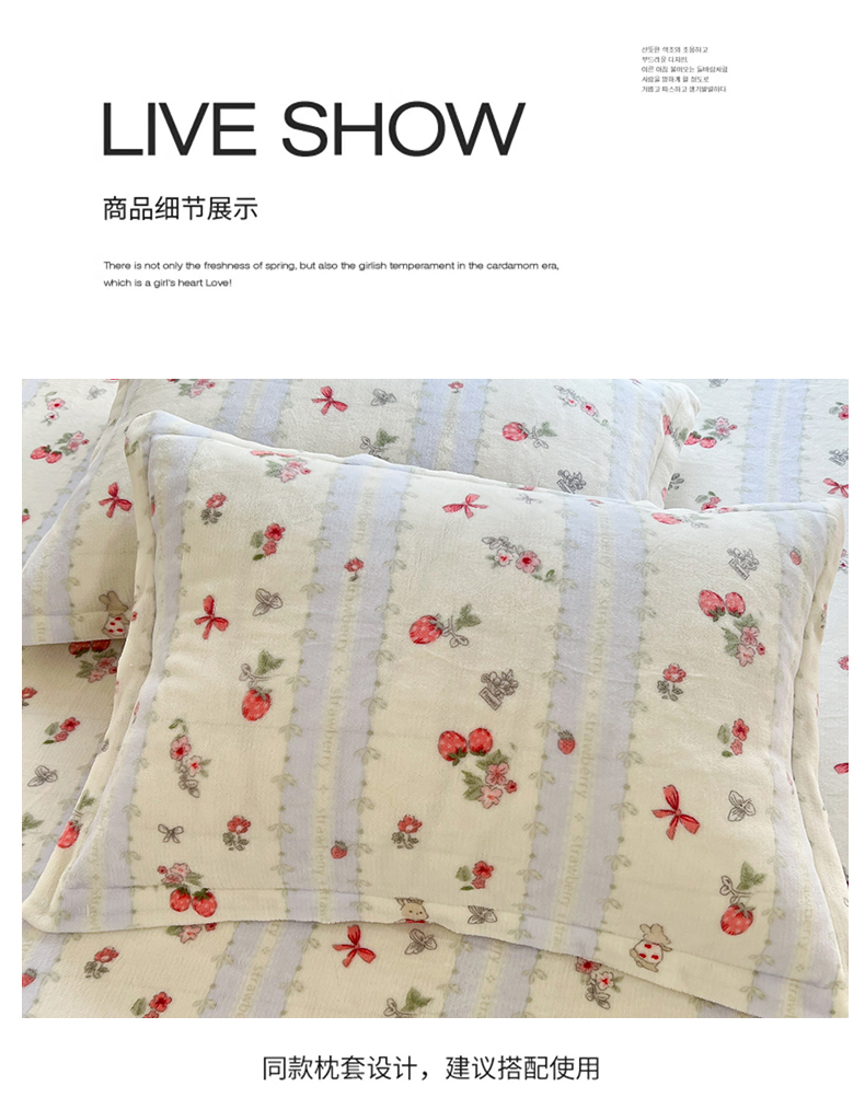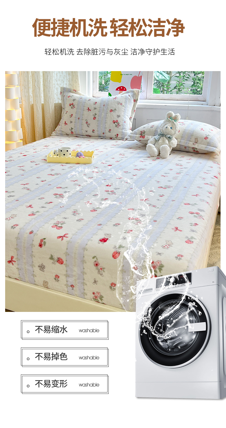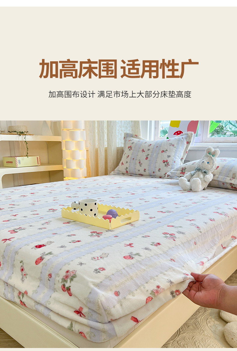 商品名称:妖妖家纺 2023新款牛奶绒单床笠 兔兔与草莓