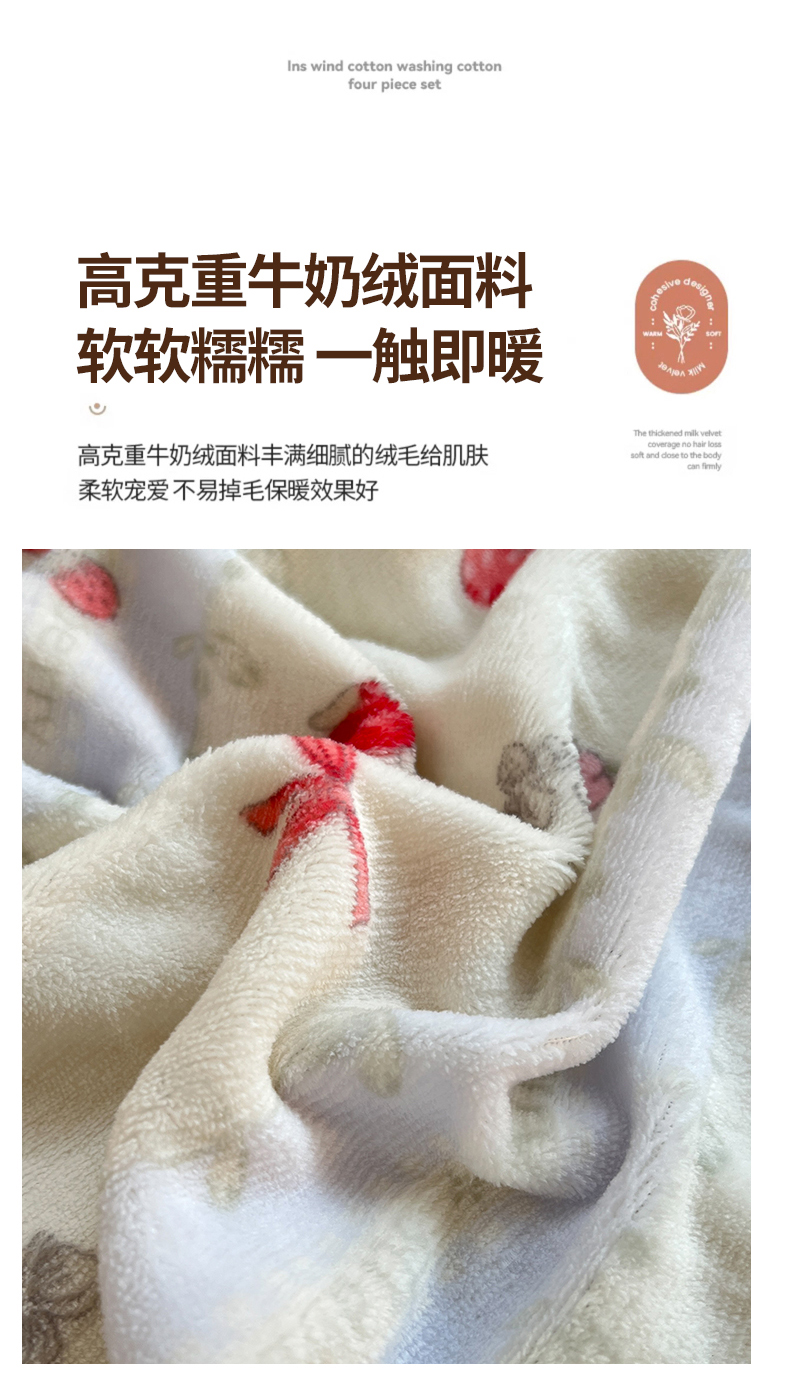 (总)妖妖家纺 2023新款牛奶绒四件套,草莓小熊,开心米奇,千鸟蝴蝶结,小兔花,幸运熊,阳光恐龙,郁金花开,草莓兔,呆萌熊,戴佳,花朵兔,花漫,浪漫蝴蝶结,罗意花礼,梦幻花季,南瓜熊,奇谷花,兔子与小仙女-白,兔子与小仙女-绿,香榭乐园,小熊婚礼,心动草莓熊,寻花梦,忆花情,紫车厘