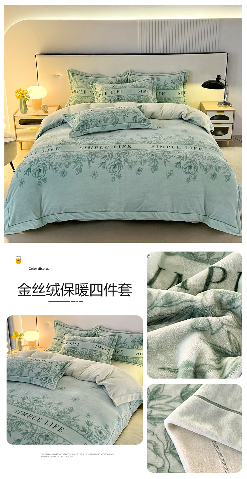 富之航家纺 2023新款230克金丝绒四件套 蔓舞-绿