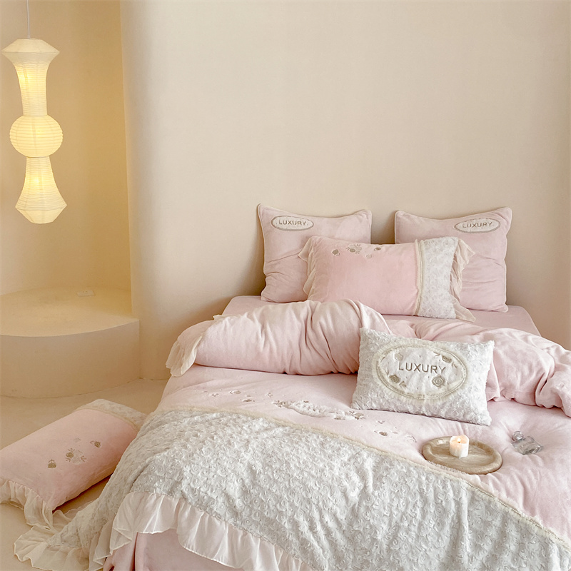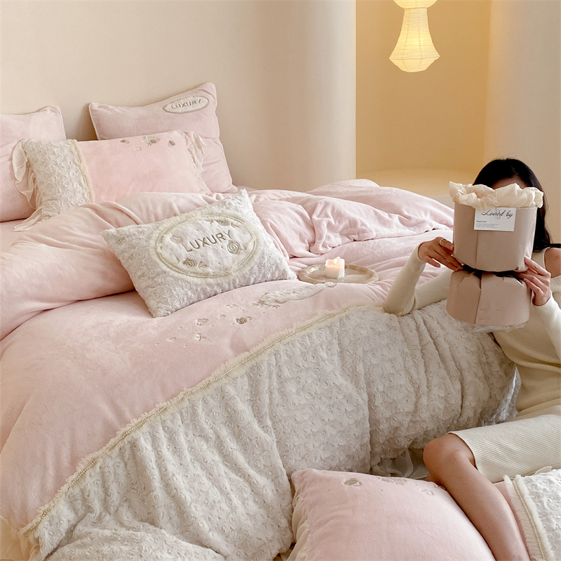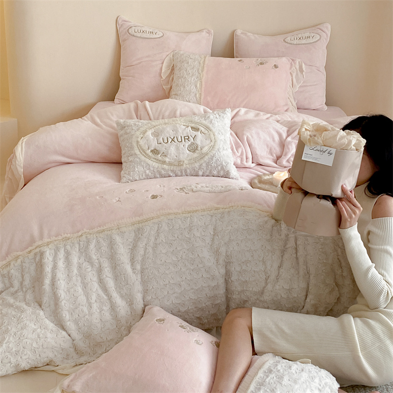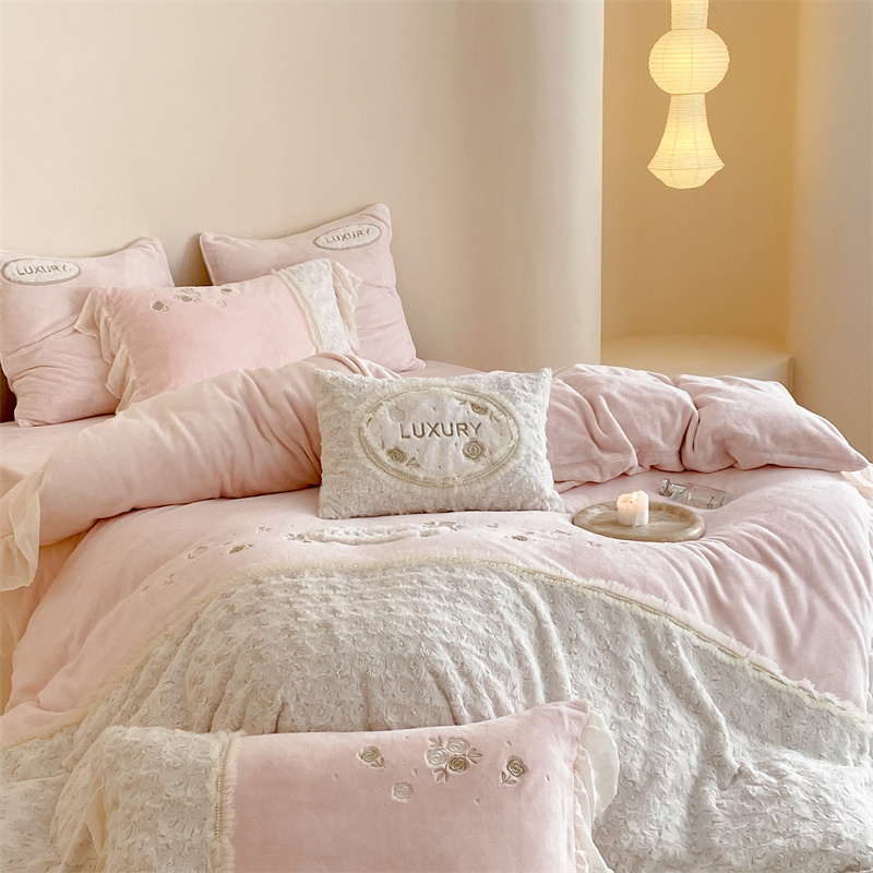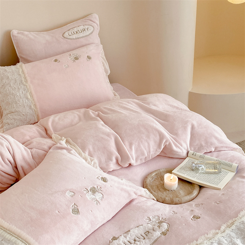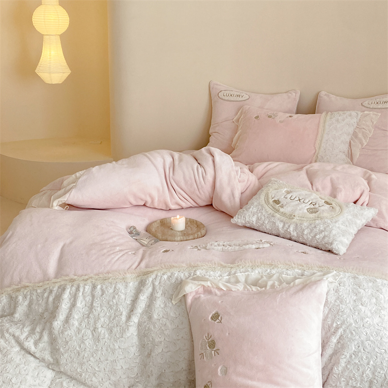 馨蕊家居 2023新款300克极细腻超柔煦暖绒四件套-绒夏梦 初夏粉