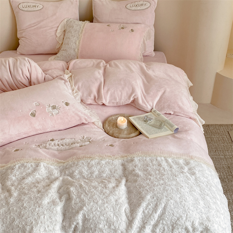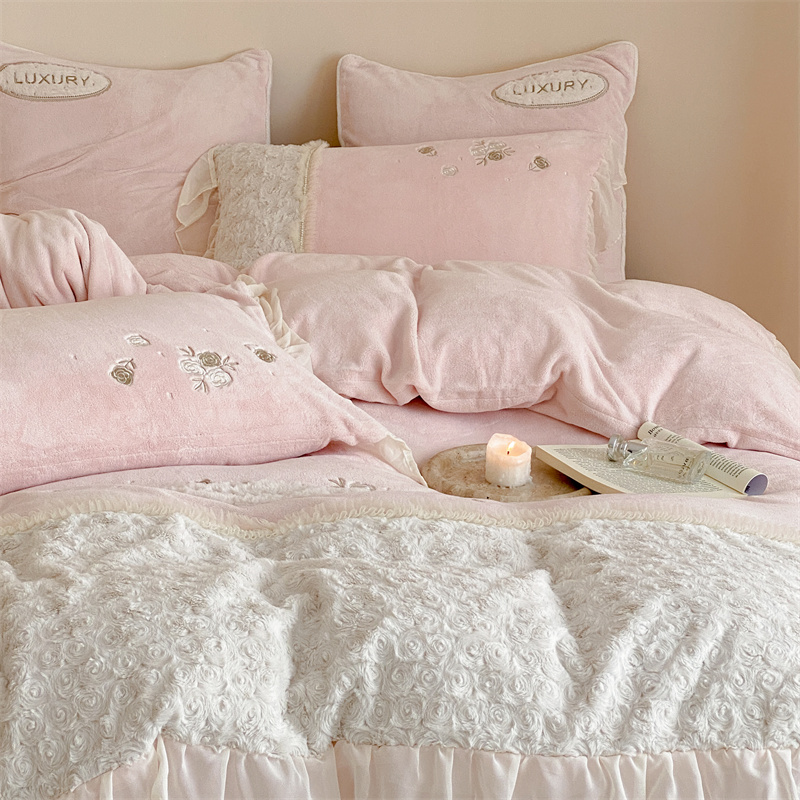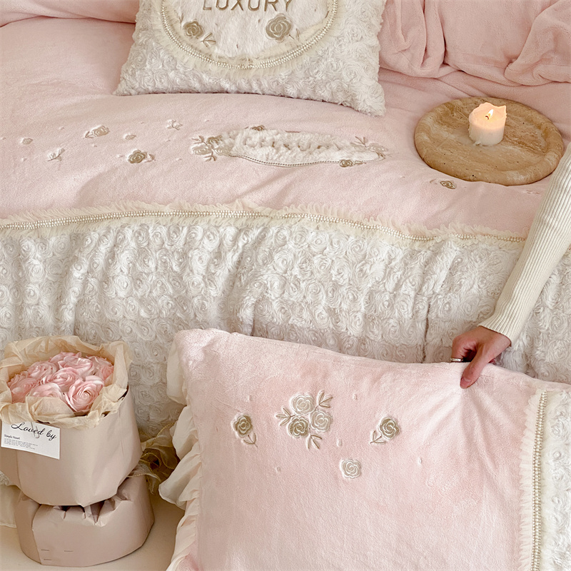 商品名称:馨蕊家居 2023新款300克极细腻超柔煦暖绒四件套-绒夏梦 初夏粉
