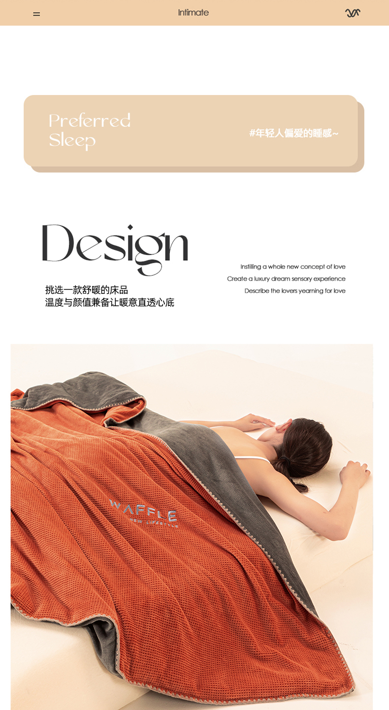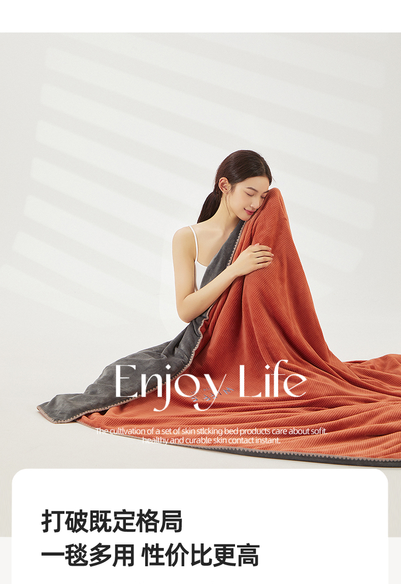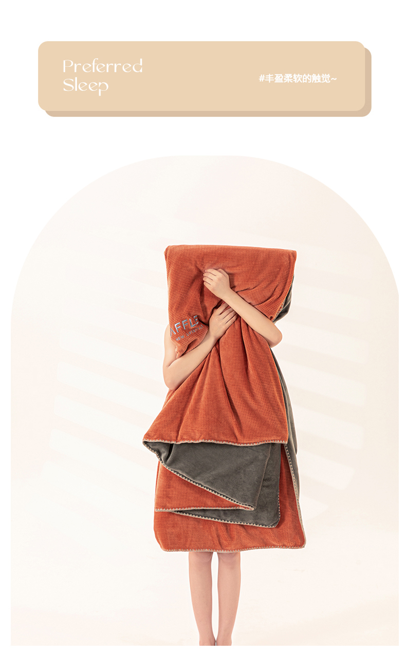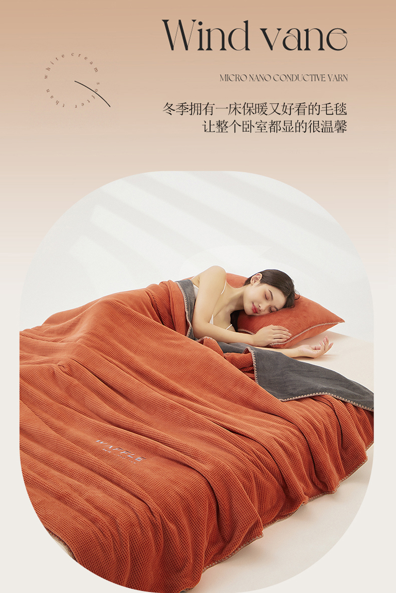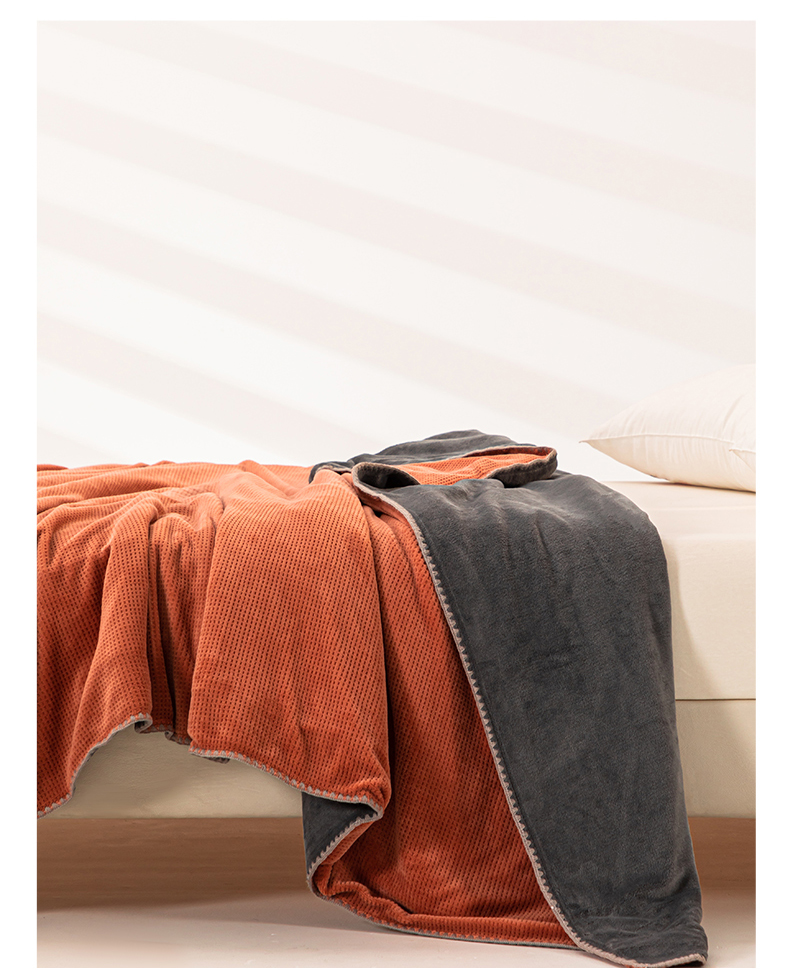 商品名称:吾诺 2023秋冬华夫格牛奶绒毯子 毛毯床单床笠单品系列-多功能绒毯 焦糖咖-深灰