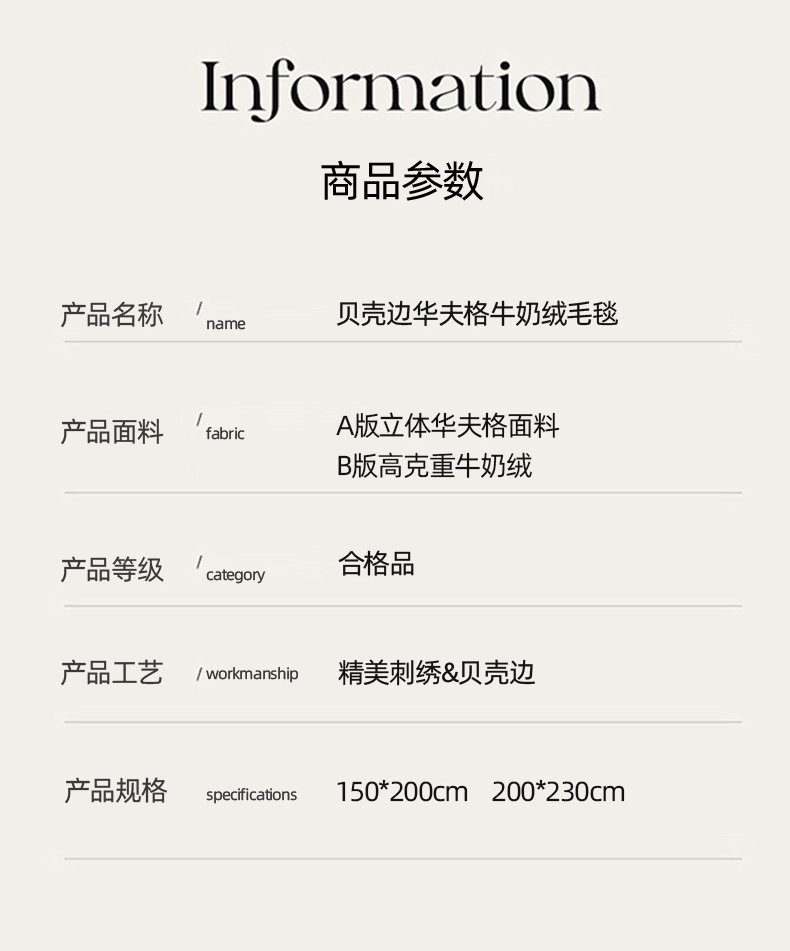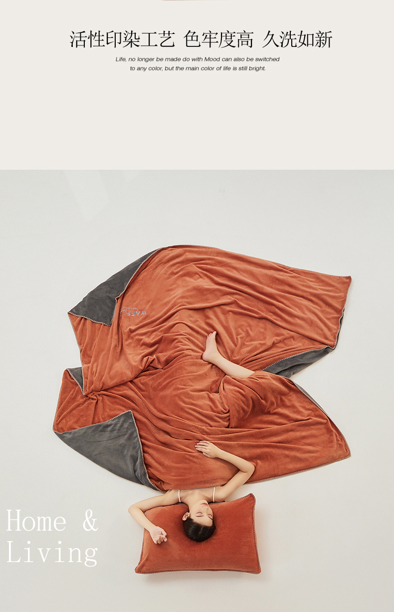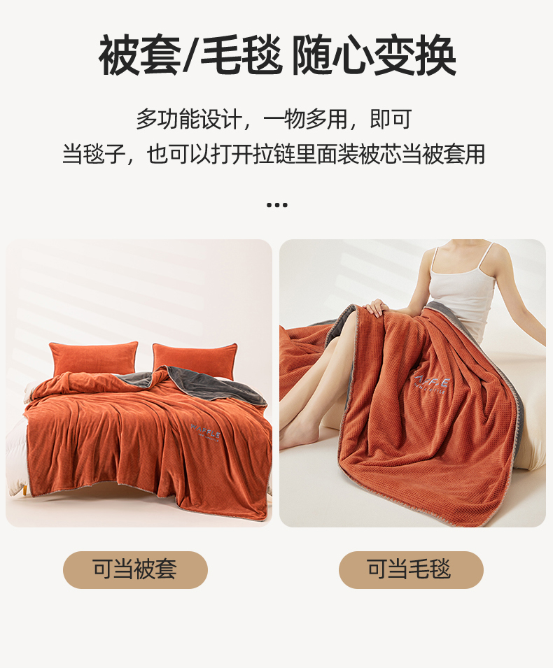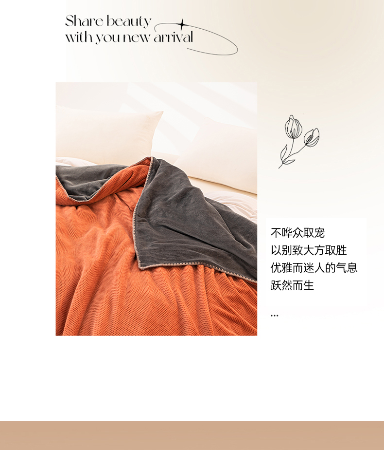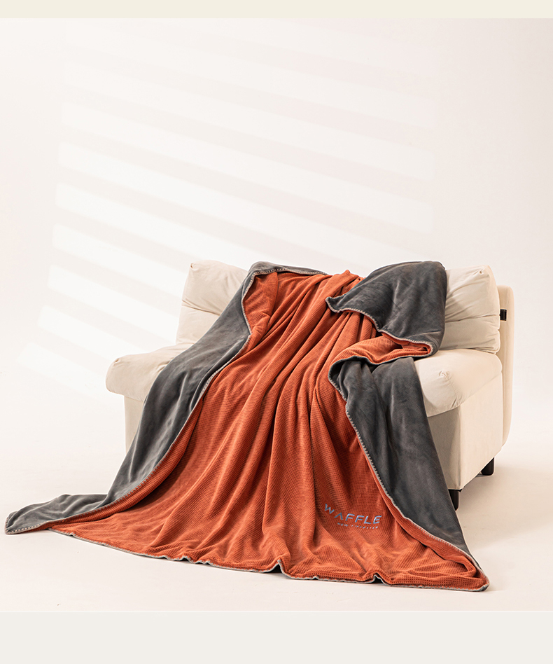 商品名称:吾诺 2023秋冬华夫格牛奶绒毯子 毛毯床单床笠单品系列-多功能绒毯 焦糖咖-深灰