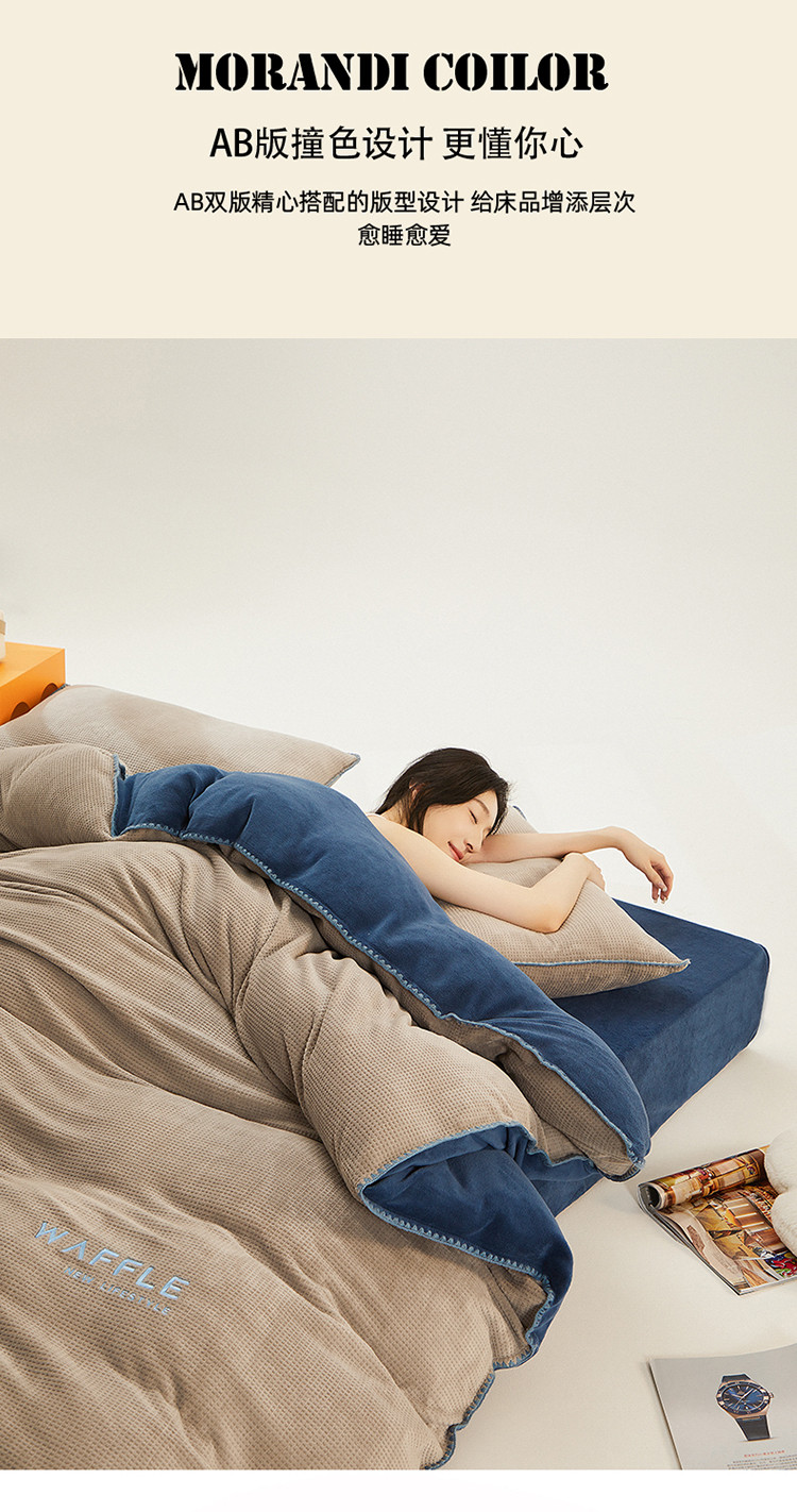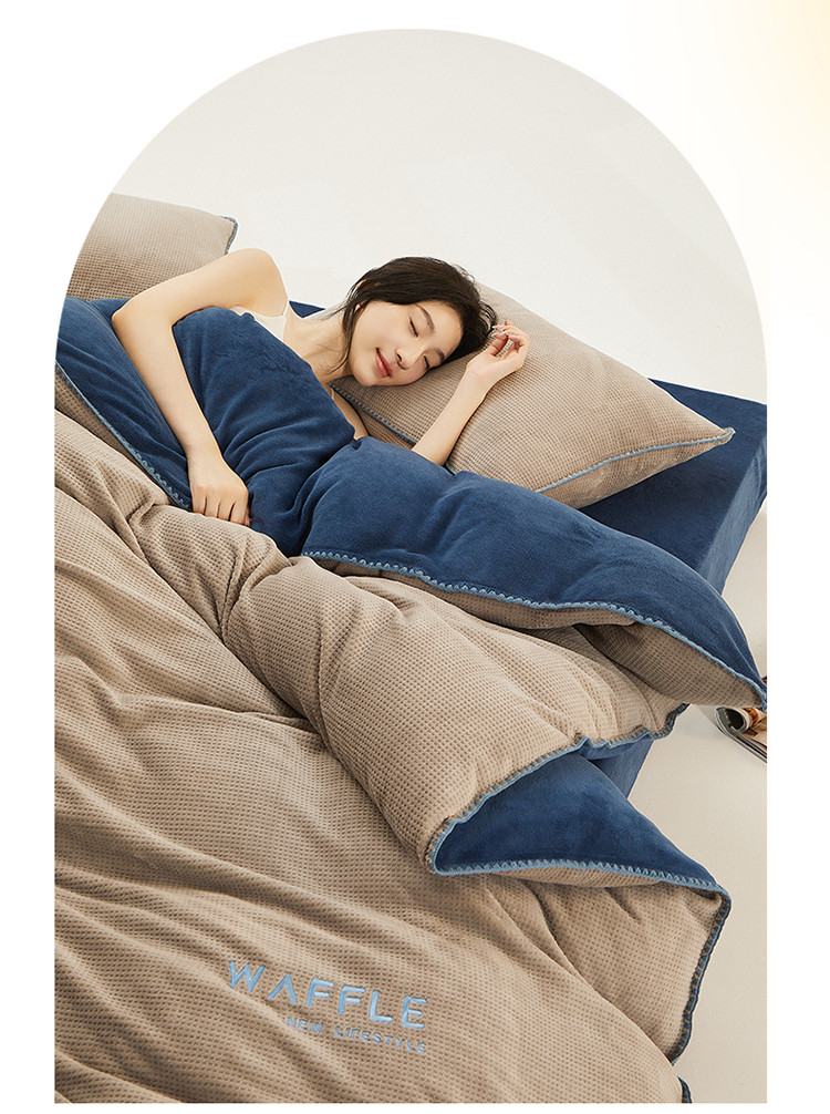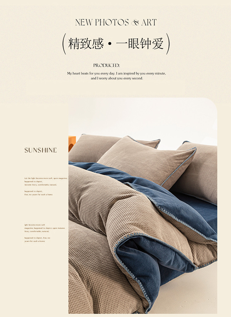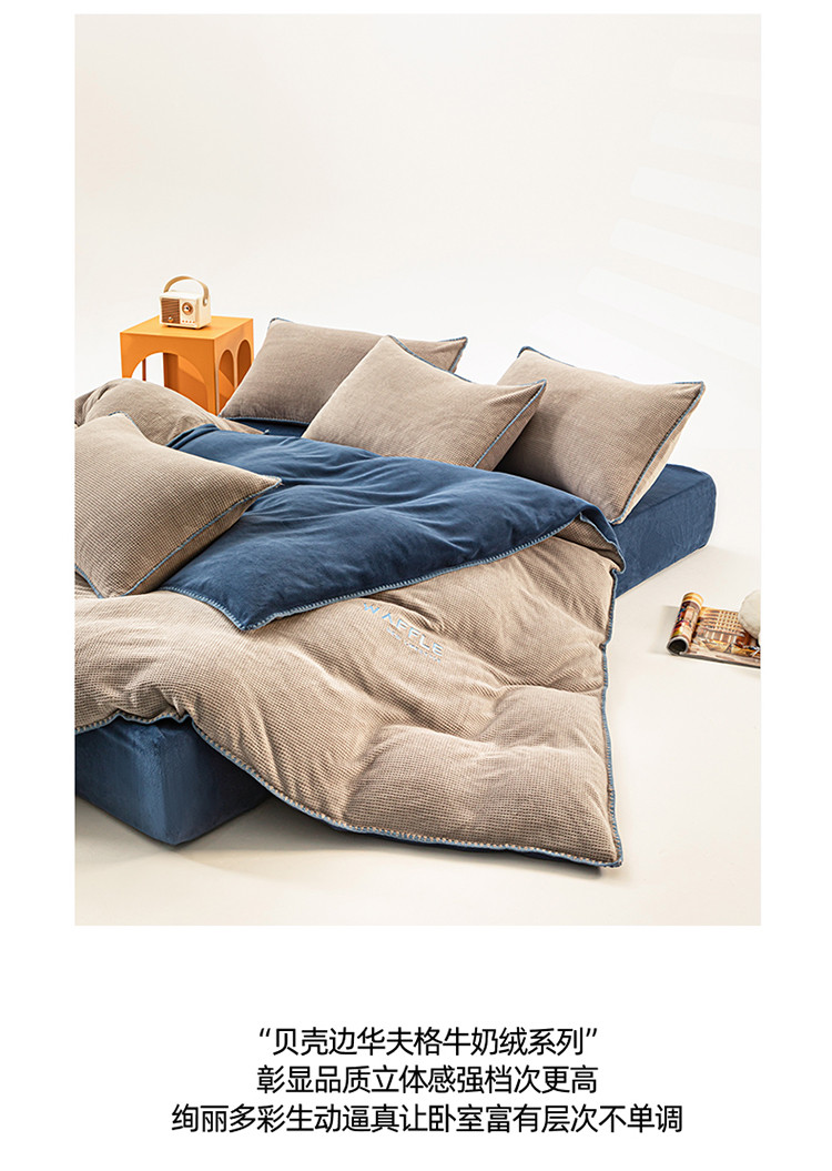 当前位置: 91家纺网 > 商品网购 > 床品套件 > 四件套 > 牛奶绒四件套 > 吾诺 2023秋冬贝壳边华夫格牛奶绒四件套-纯净版拍摄风格 浅灰-深蓝