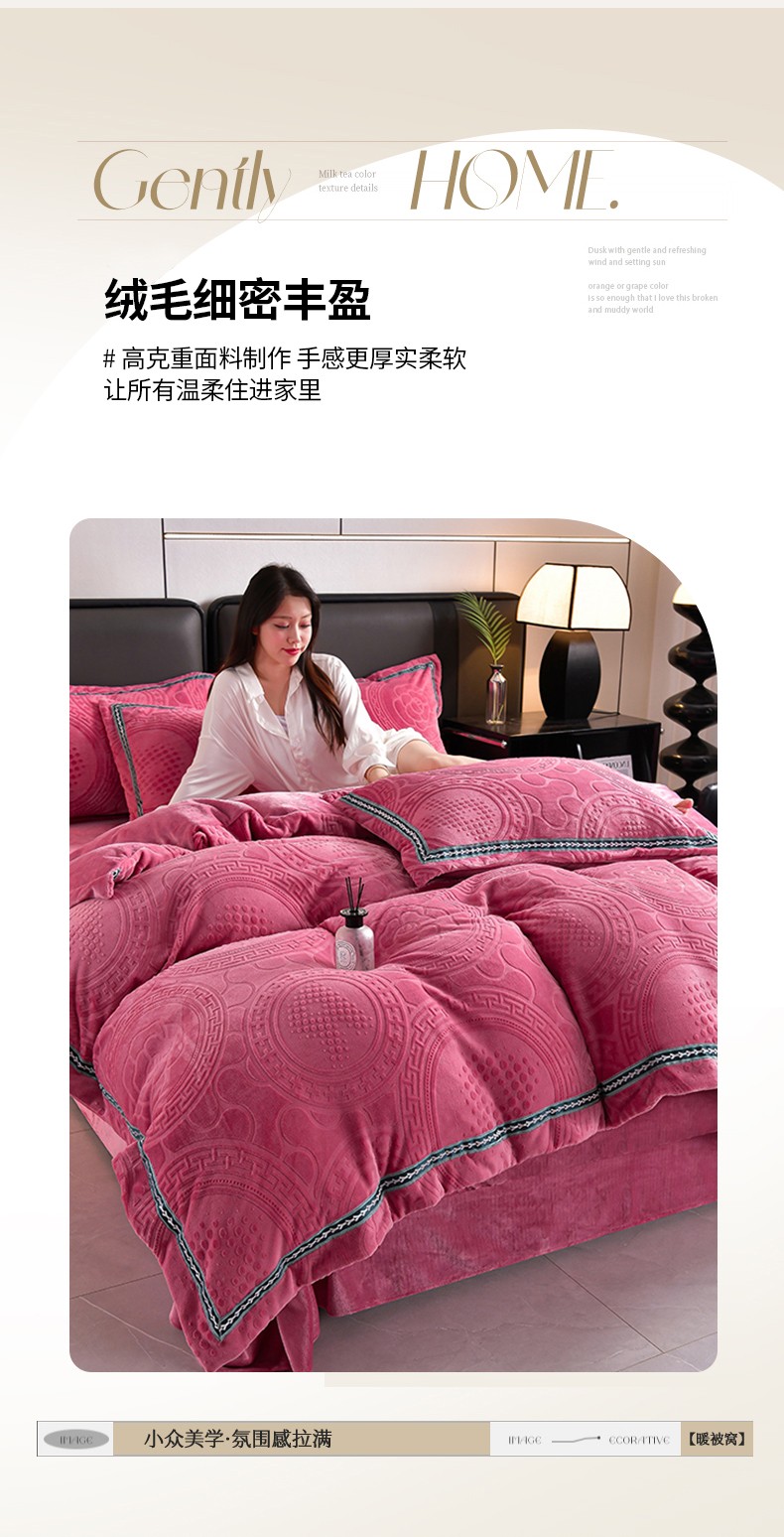 绒耀 2025新款高克重牛奶绒四件套保暖四件套直播爆款电商爆款 金玉良缘,金玉良缘
