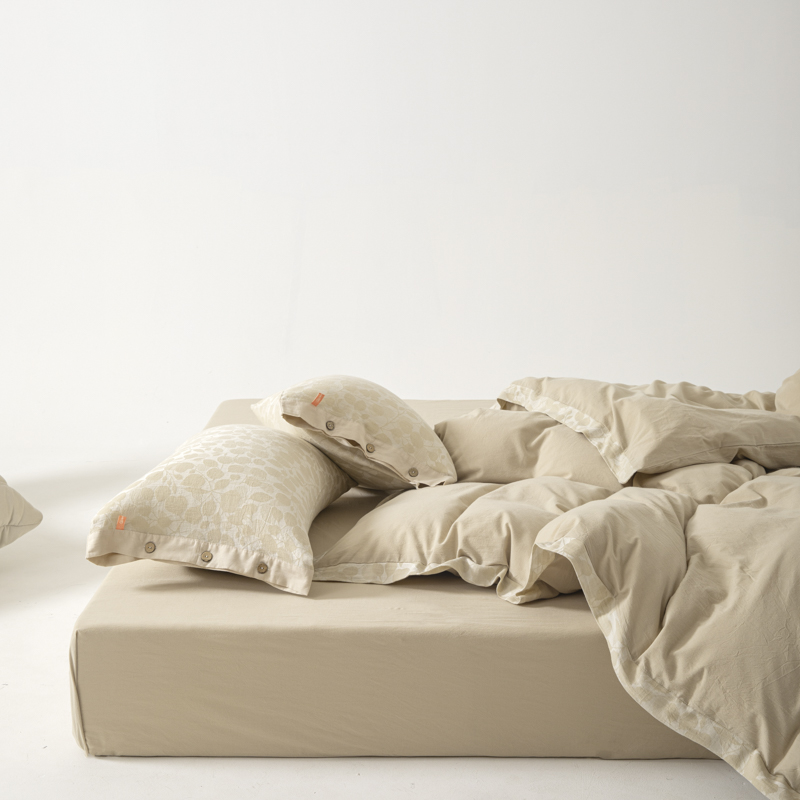 当前位置: 91家纺网 > 商品网购 > 床品套件 > 四件套 > 全棉普通四件套 > 安莱生活 2023新款A类简约棉麻树叶拼边四件套 棉麻拼边纽扣款-米白