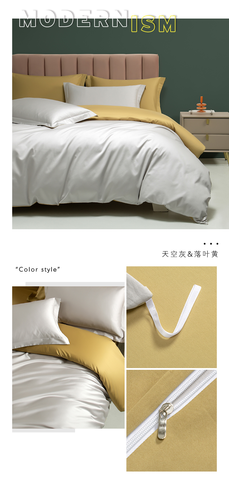 商品名称:云栖家居 2023A类长绒棉纯色单被套 天空灰&落叶黄