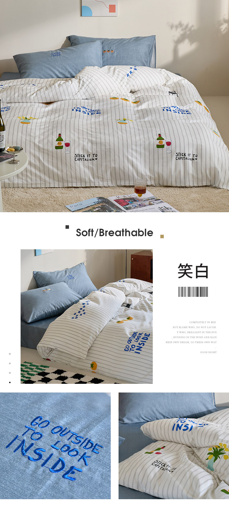 怡家居 2023都市野兽刺绣系列四件套 笑白