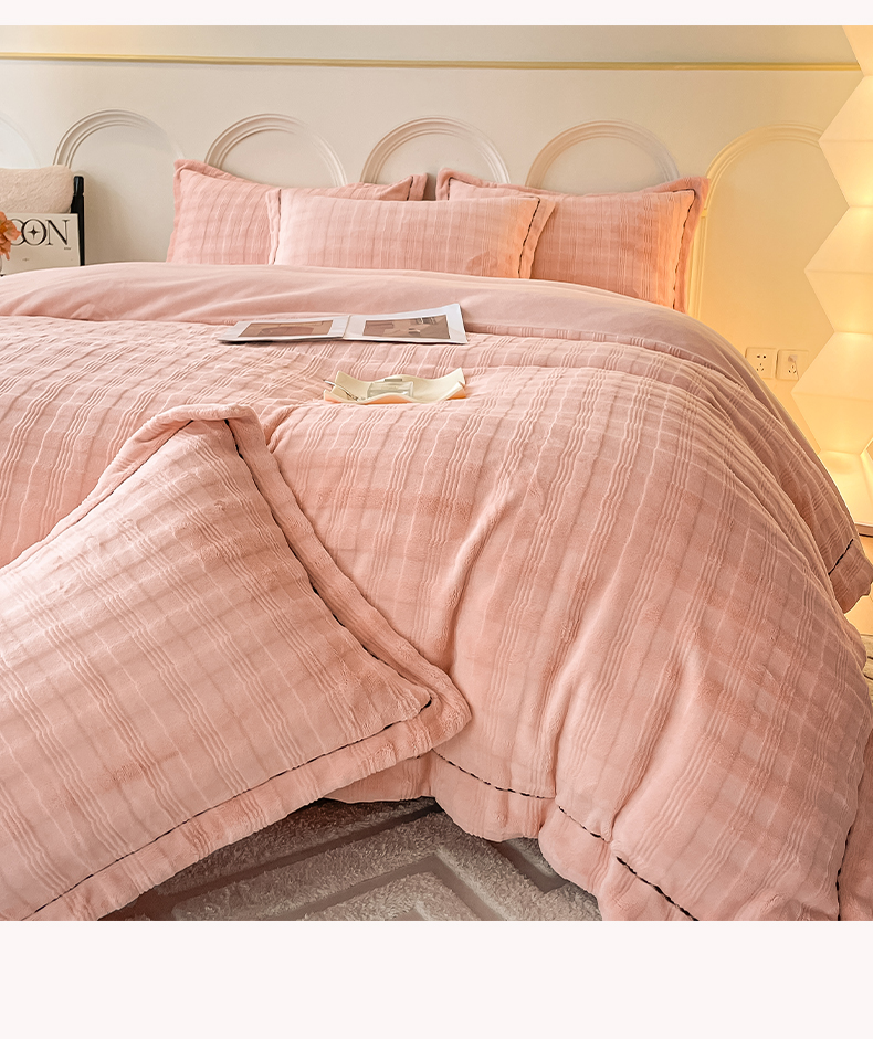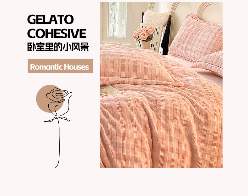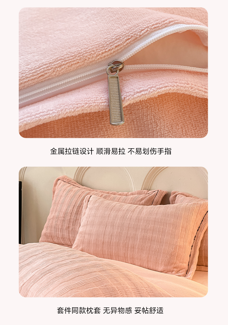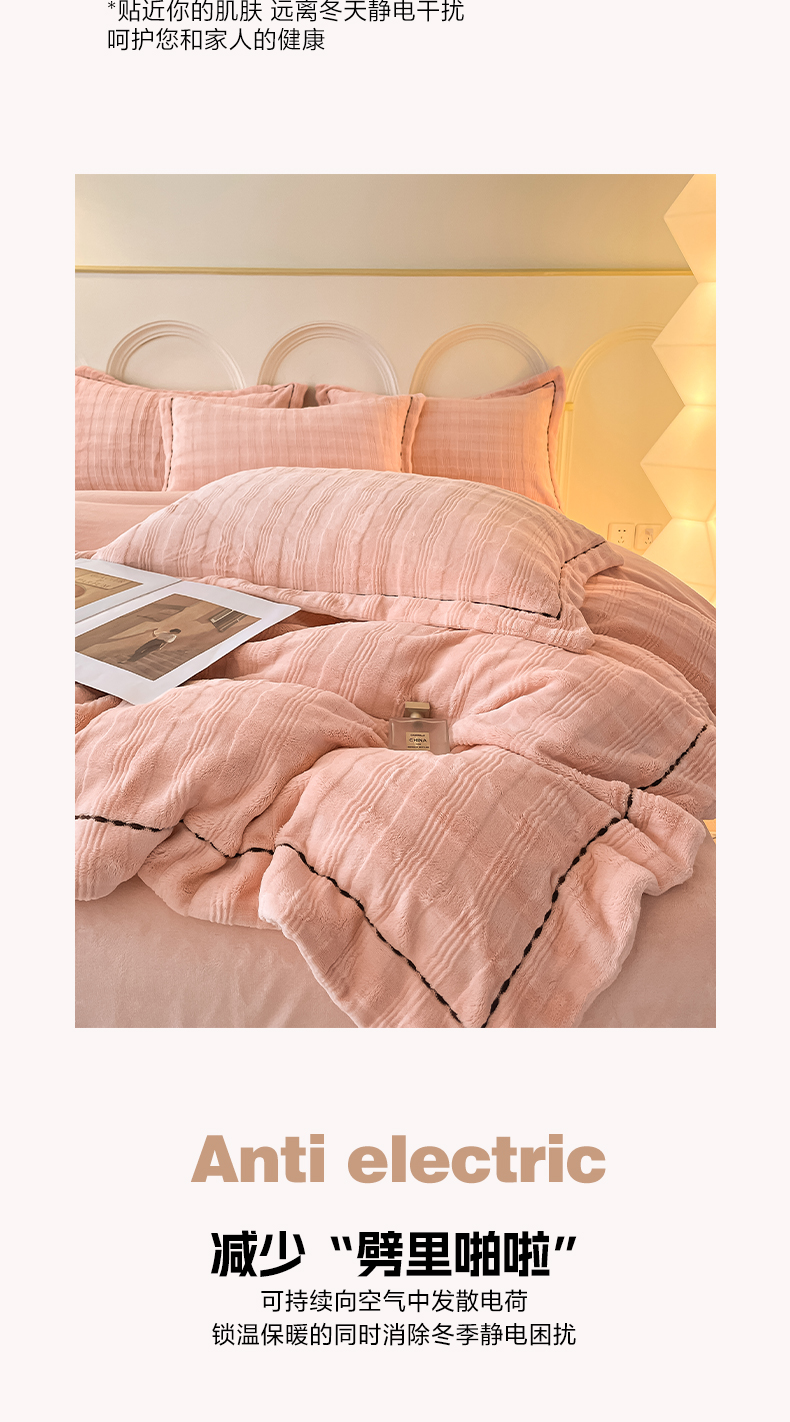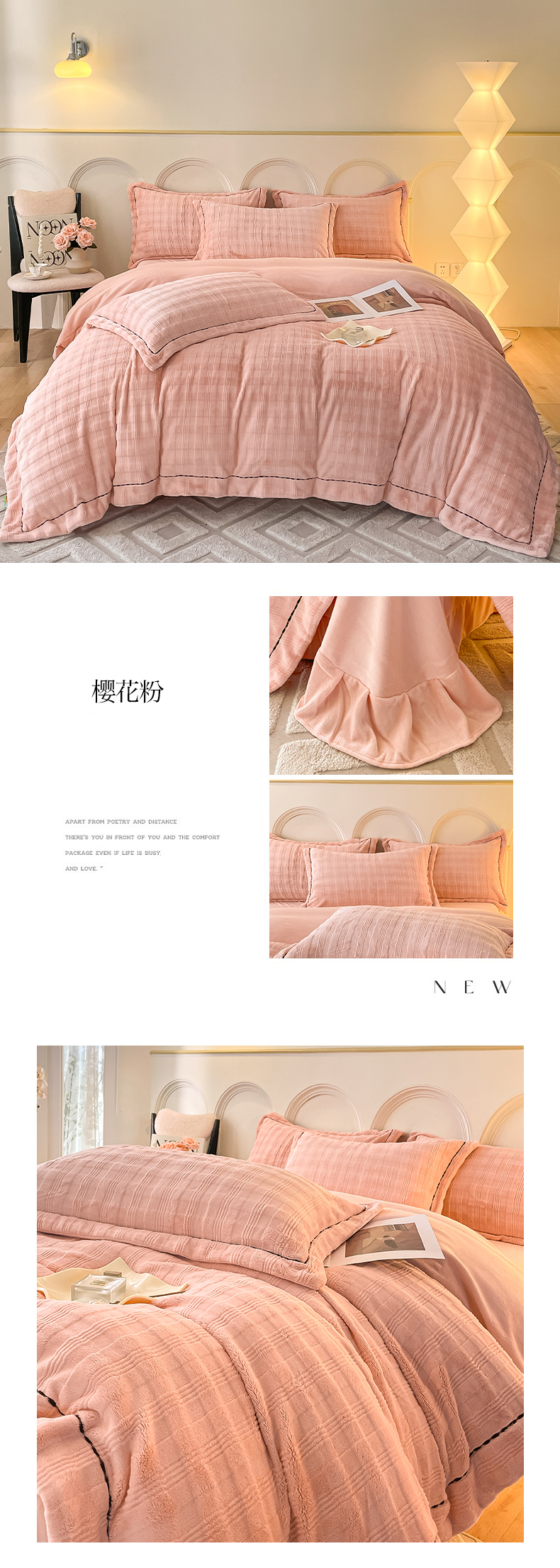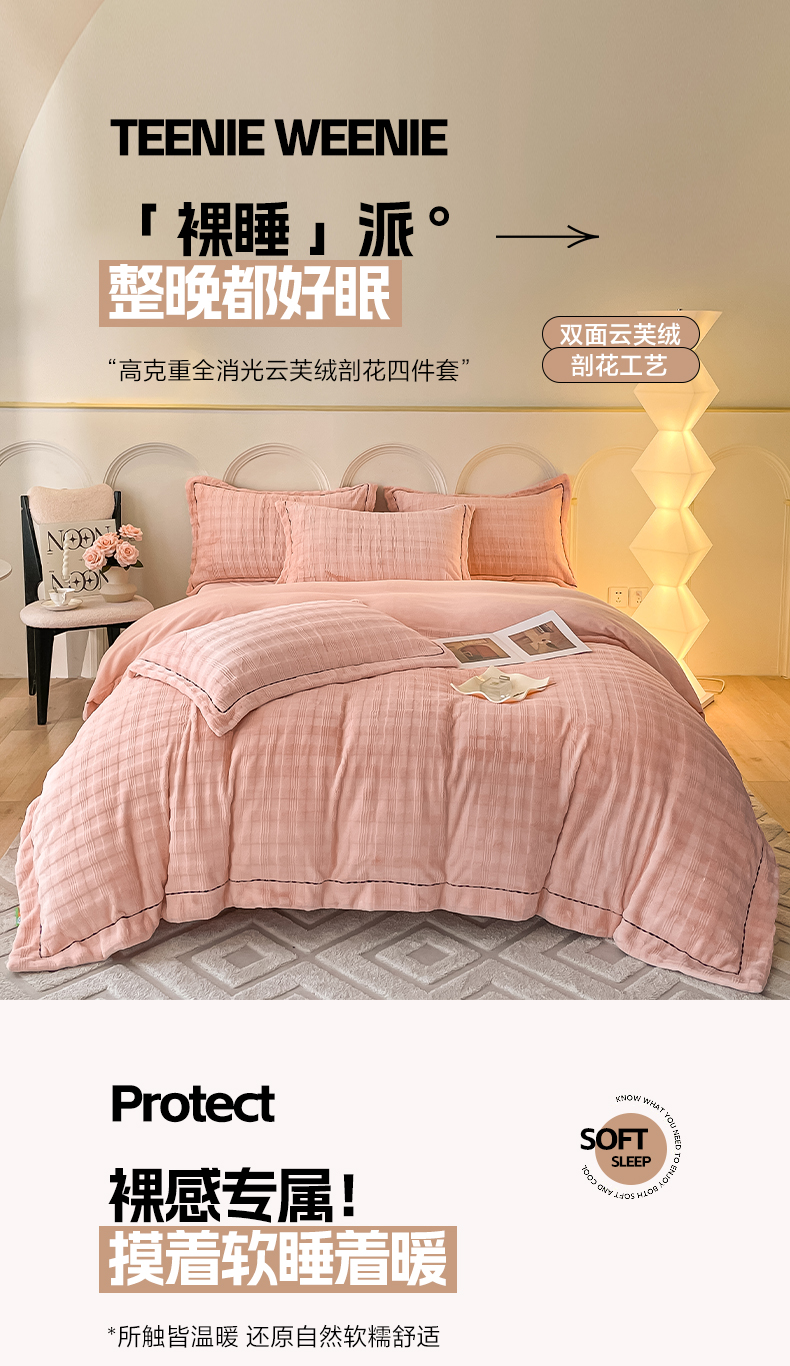 商品名称:嗯呢家纺 2023新款A类轻奢高克重全消光剖花牛奶绒四件套 樱花粉