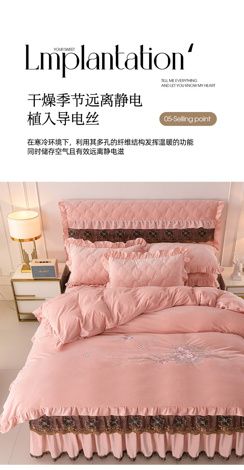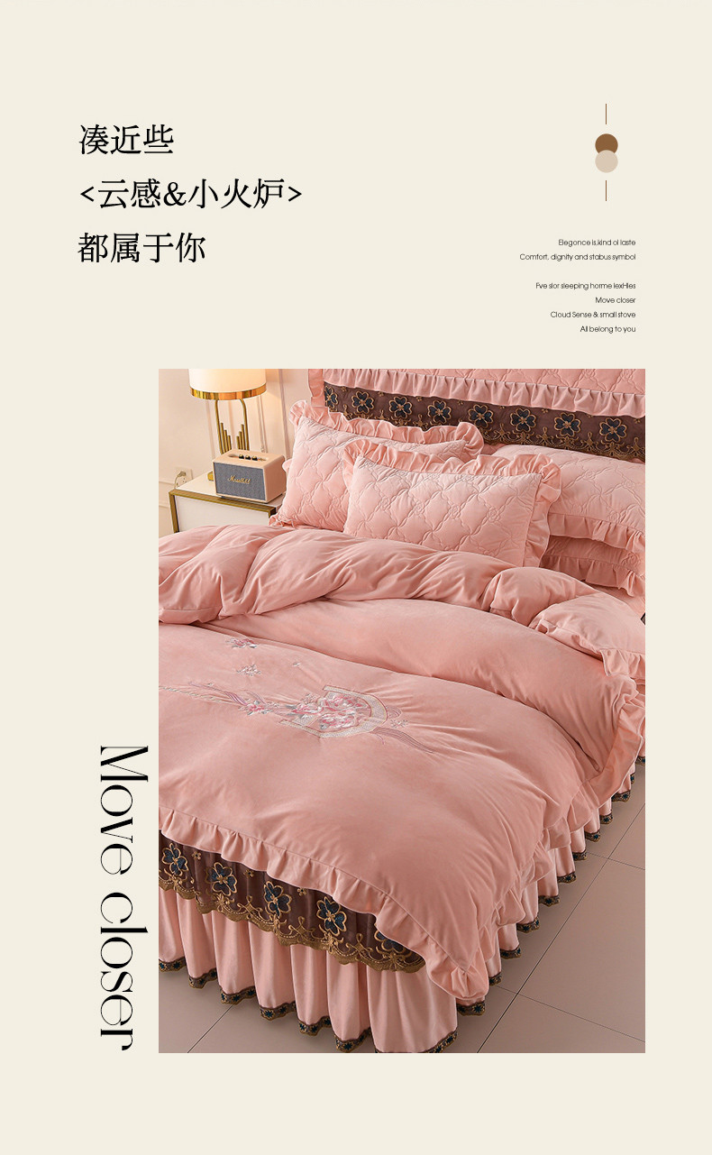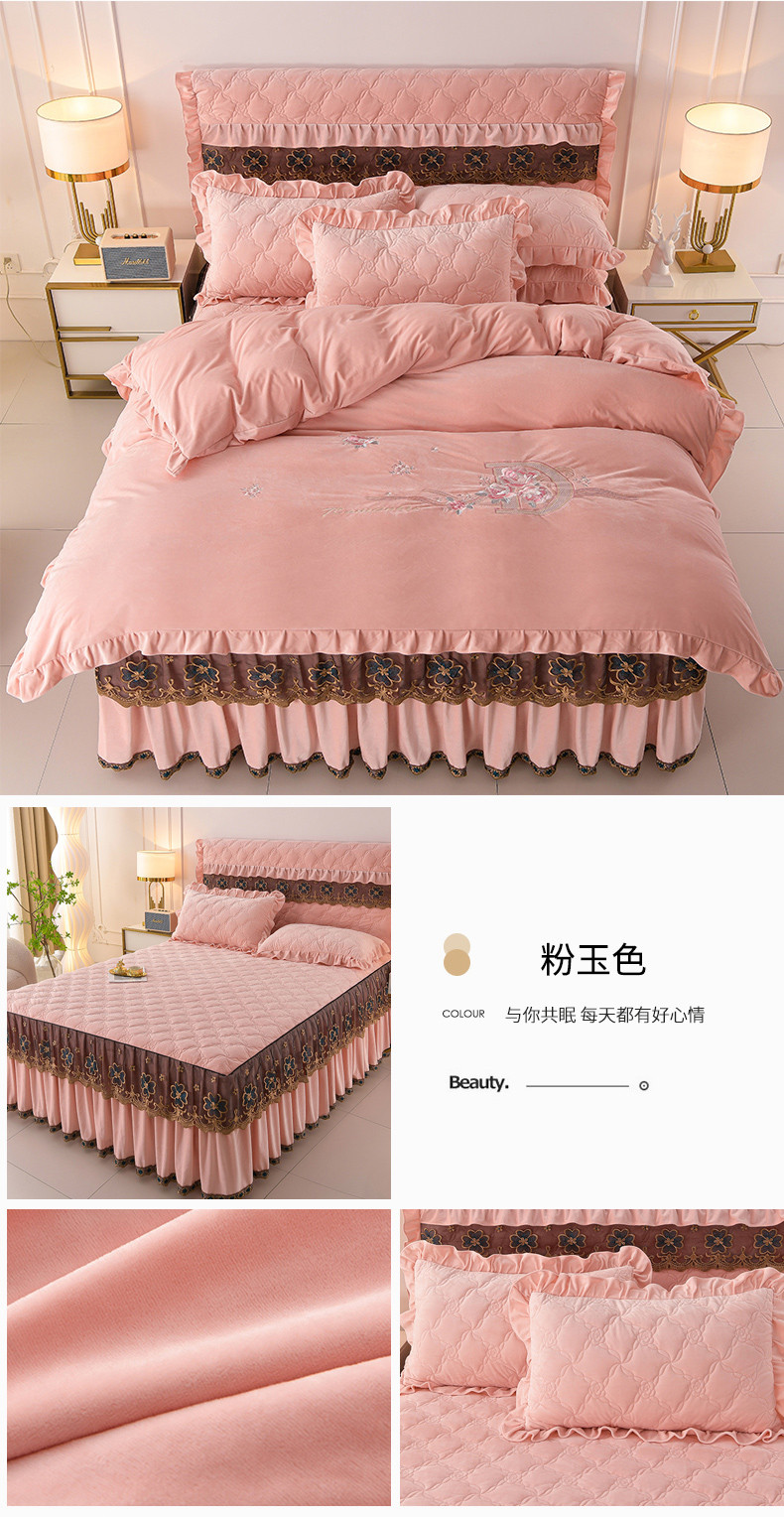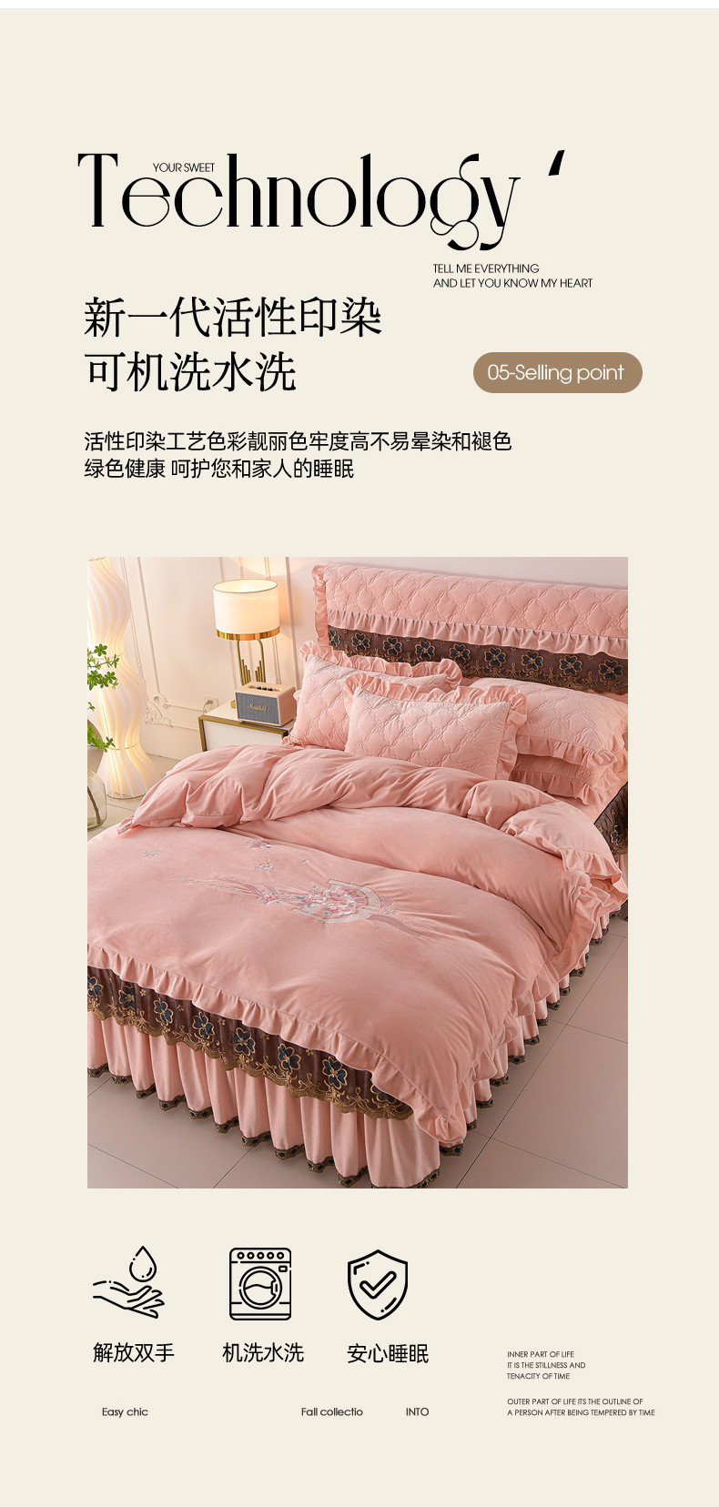(总)怡源梦 2025新款牛奶绒床裙四件套-甜心公主系列,米白色,大红色,粉玉色,灰色,咖色,绿色,紫色