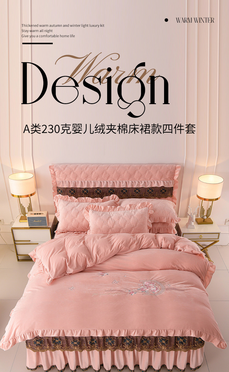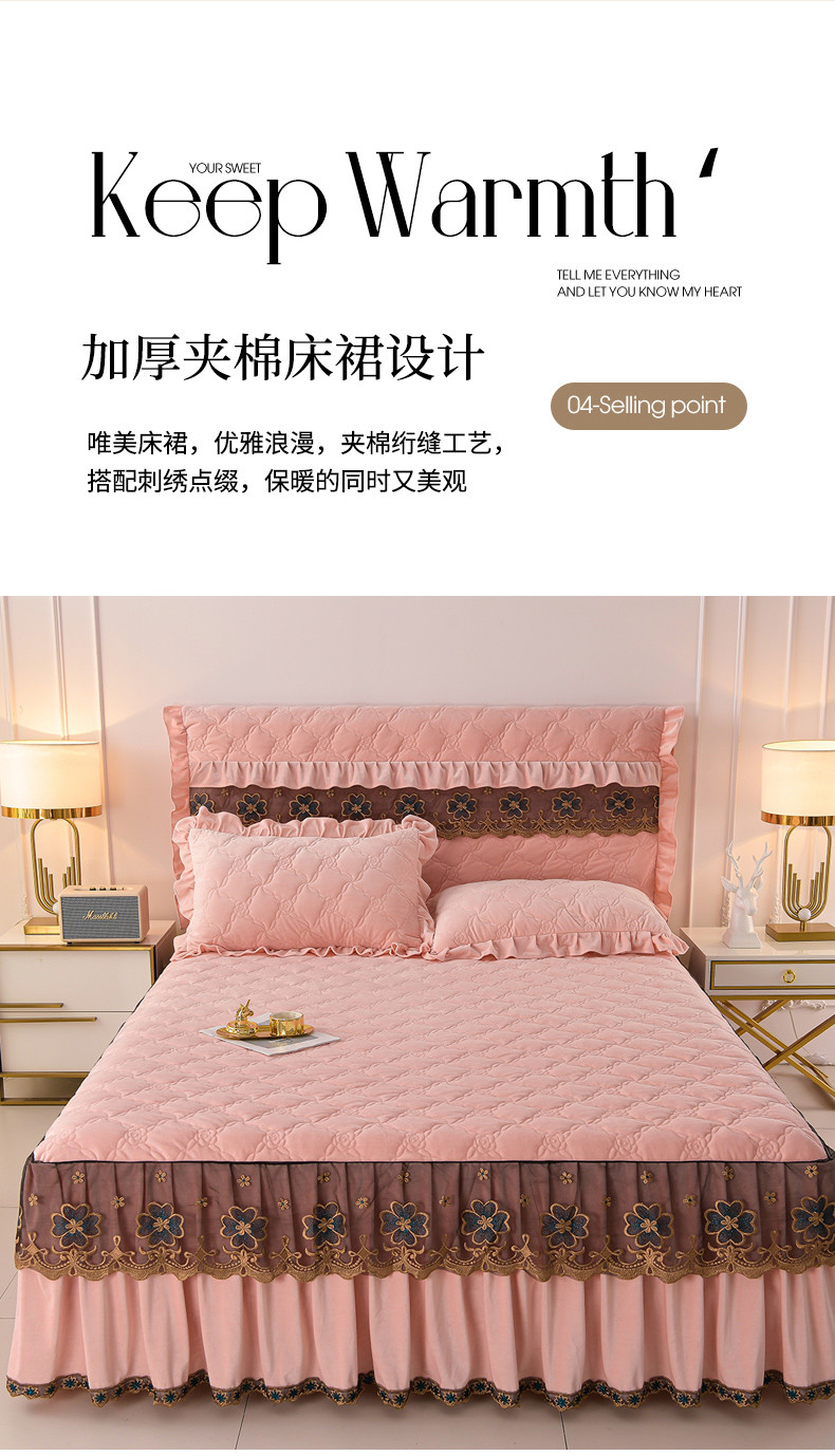 (总)怡源梦 2025新款A类牛奶绒夹棉床裙单件-甜心公主系列,米白色,大红色,粉玉色,灰色,咖色,绿色,紫色