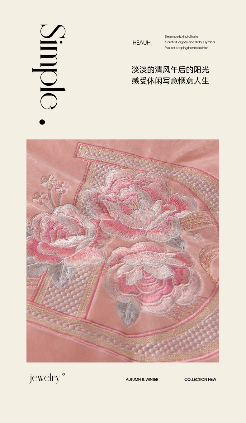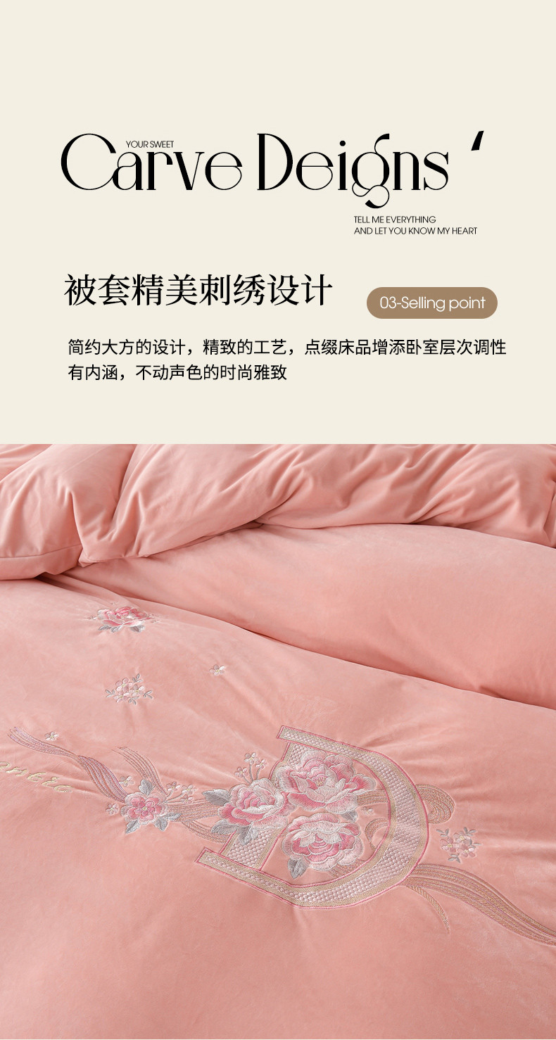 源梦家纺 2023新款A类230克婴儿绒四件套-盛世牡丹 盛世牡丹-粉玉色
