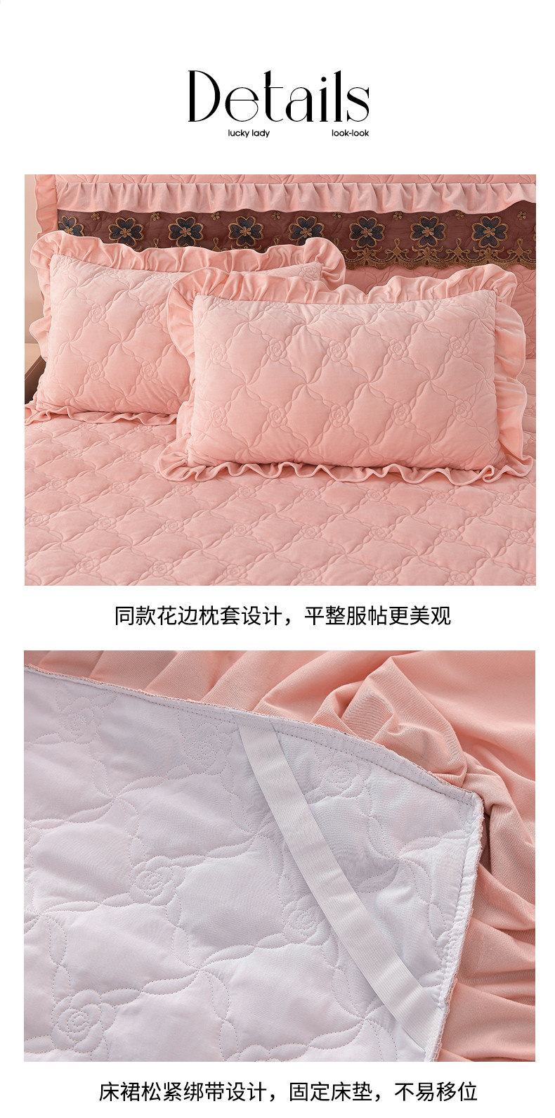 (总)怡源梦 2025新款A类牛奶绒夹棉床笠三件套-甜心公主系列,灰色,咖色,大红色,粉玉色,绿色,米白色,紫色
