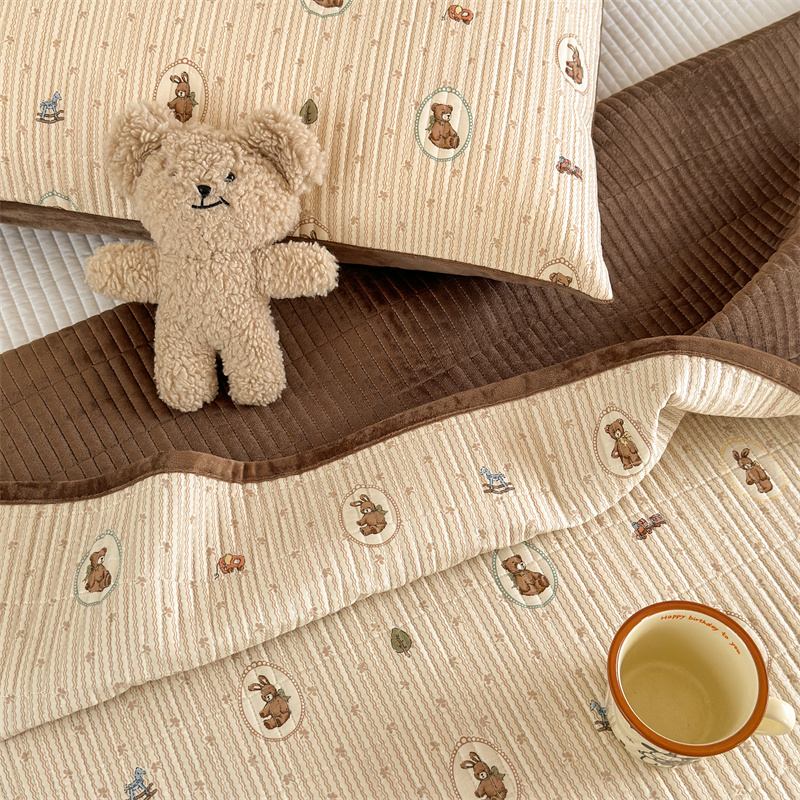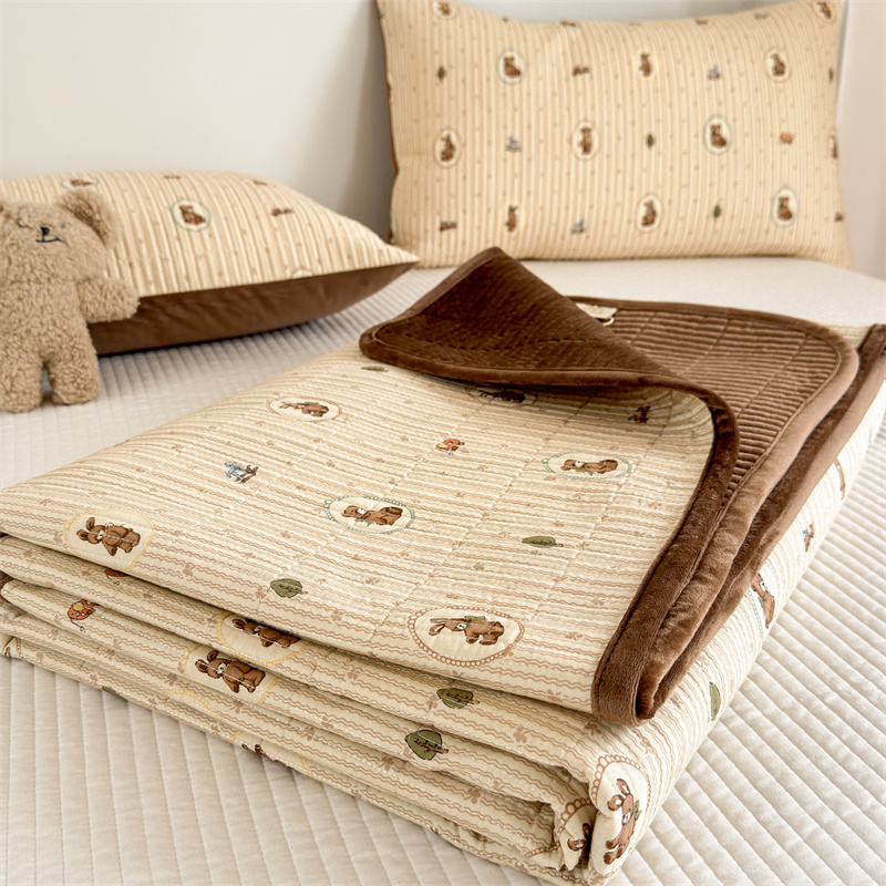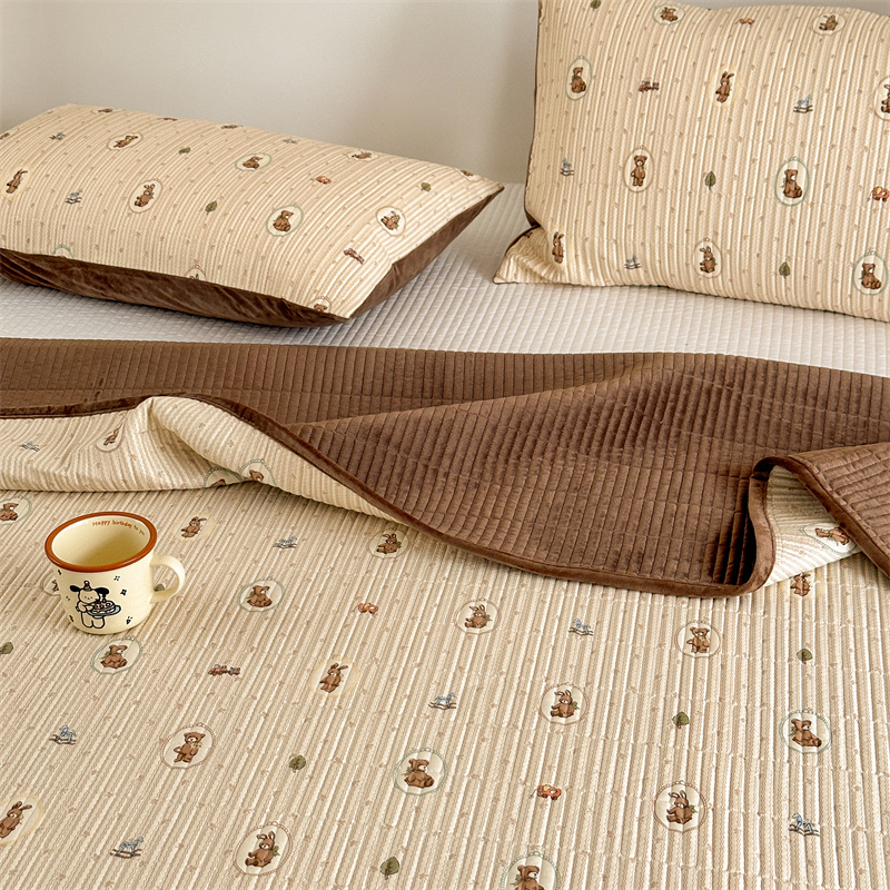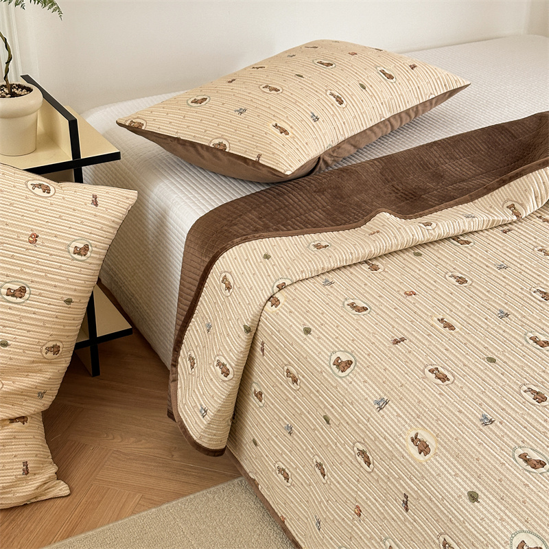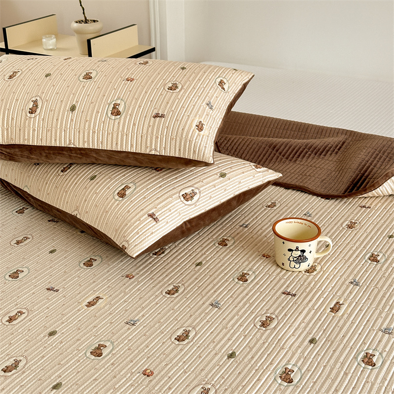 星期八 2023新款棉加绒床盖三件套 熊兔乐园