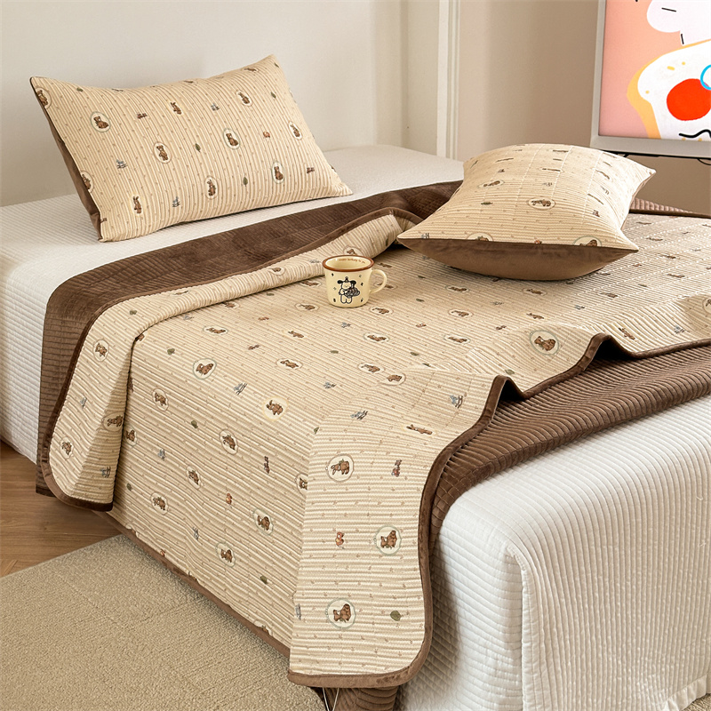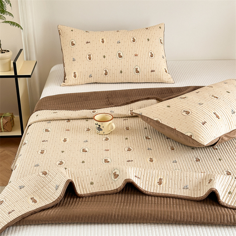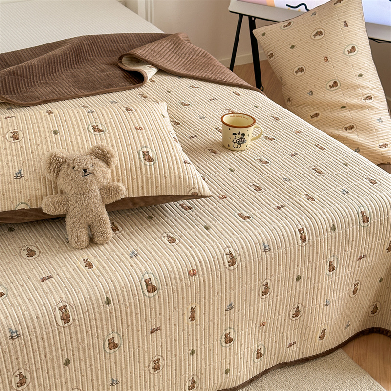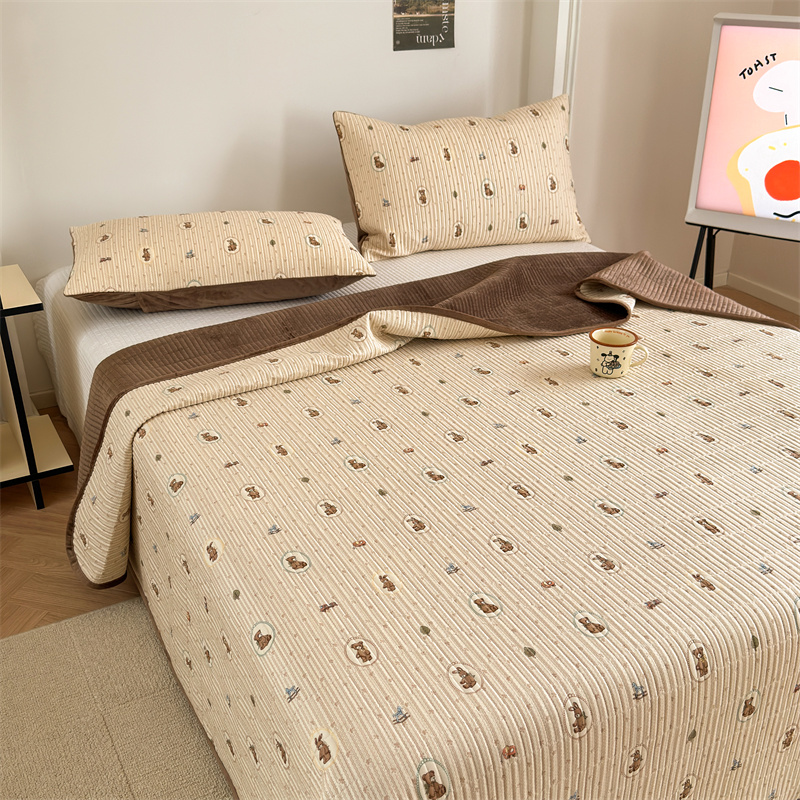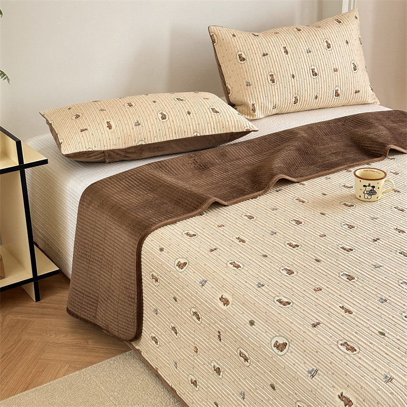 星期八 2023新款棉加绒床盖三件套 熊兔乐园
