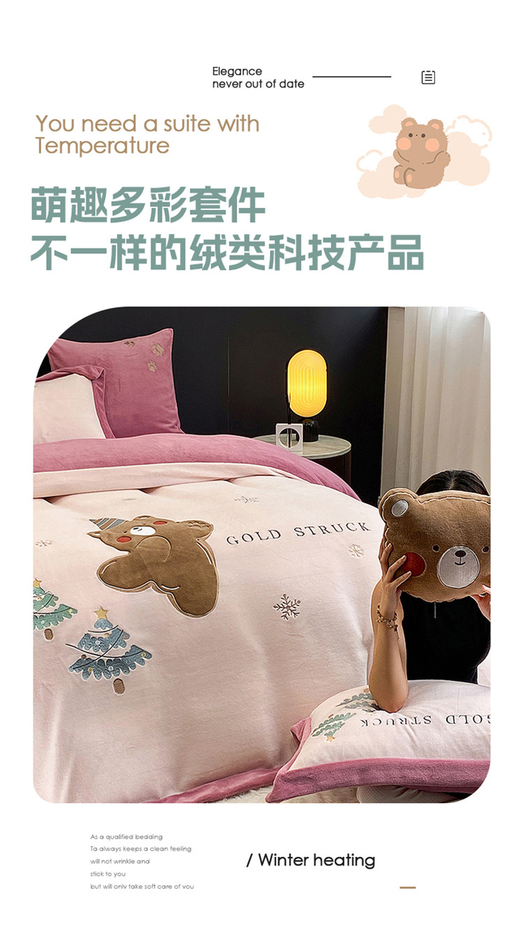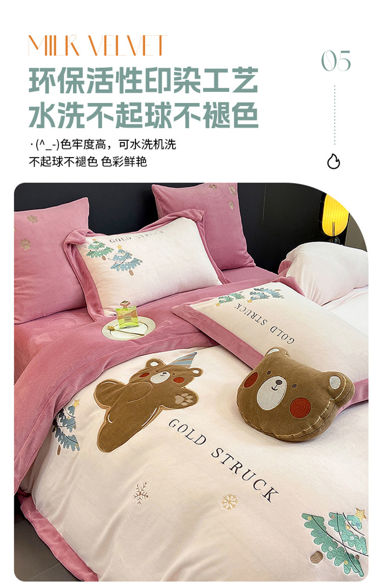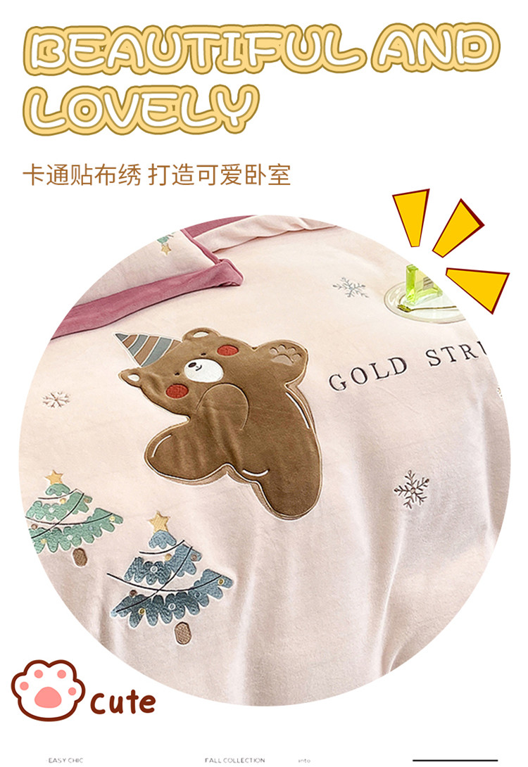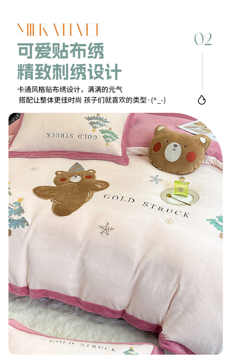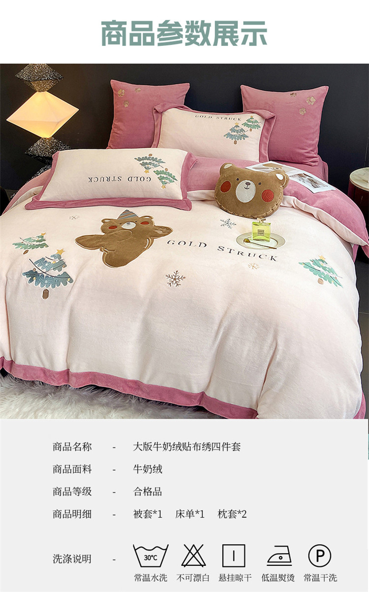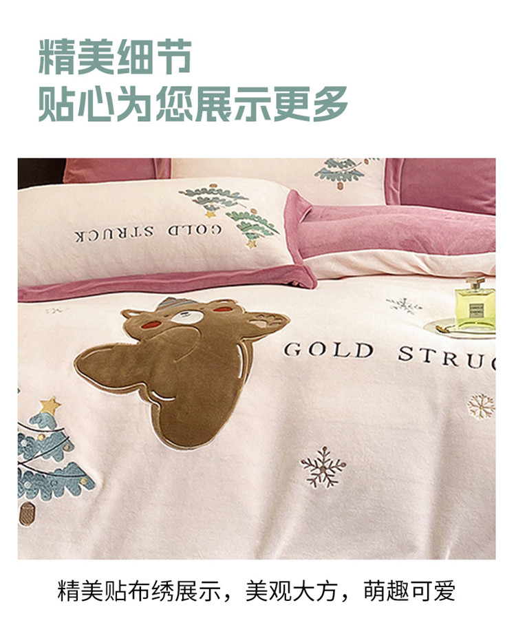 当前位置: 91家纺网 > 商品网购 > 床品套件 > 四件套 > 牛奶绒四件套 > 家居1号 2024新款230克牛奶绒贴布绣四件套奇趣圣诞熊 奇趣圣诞熊-浅粉+豆粉