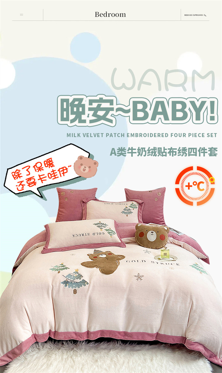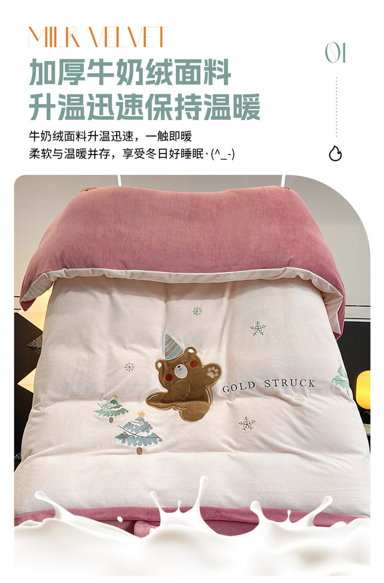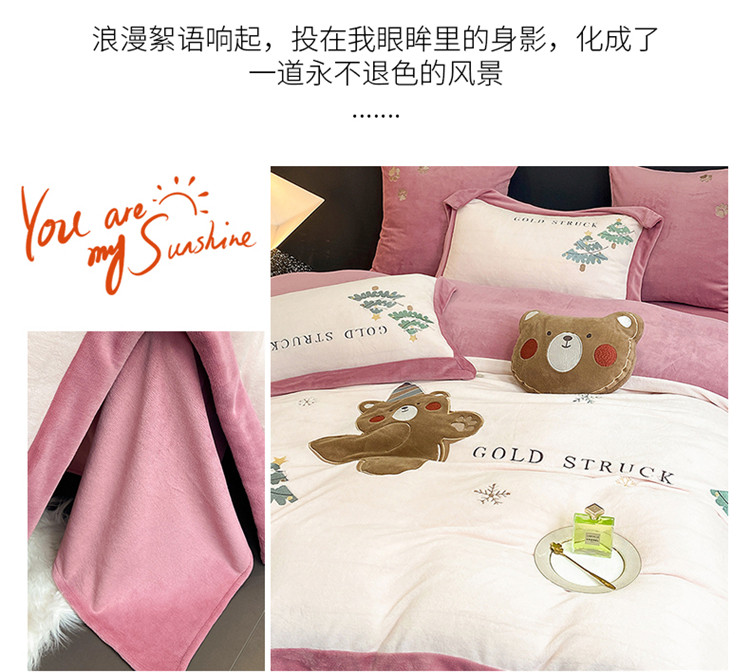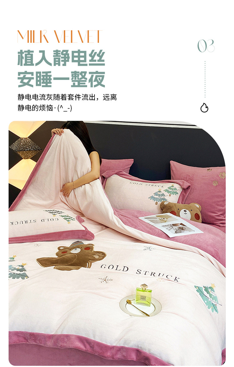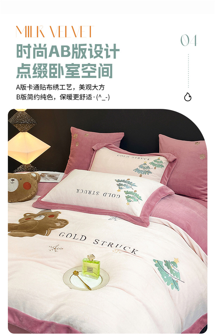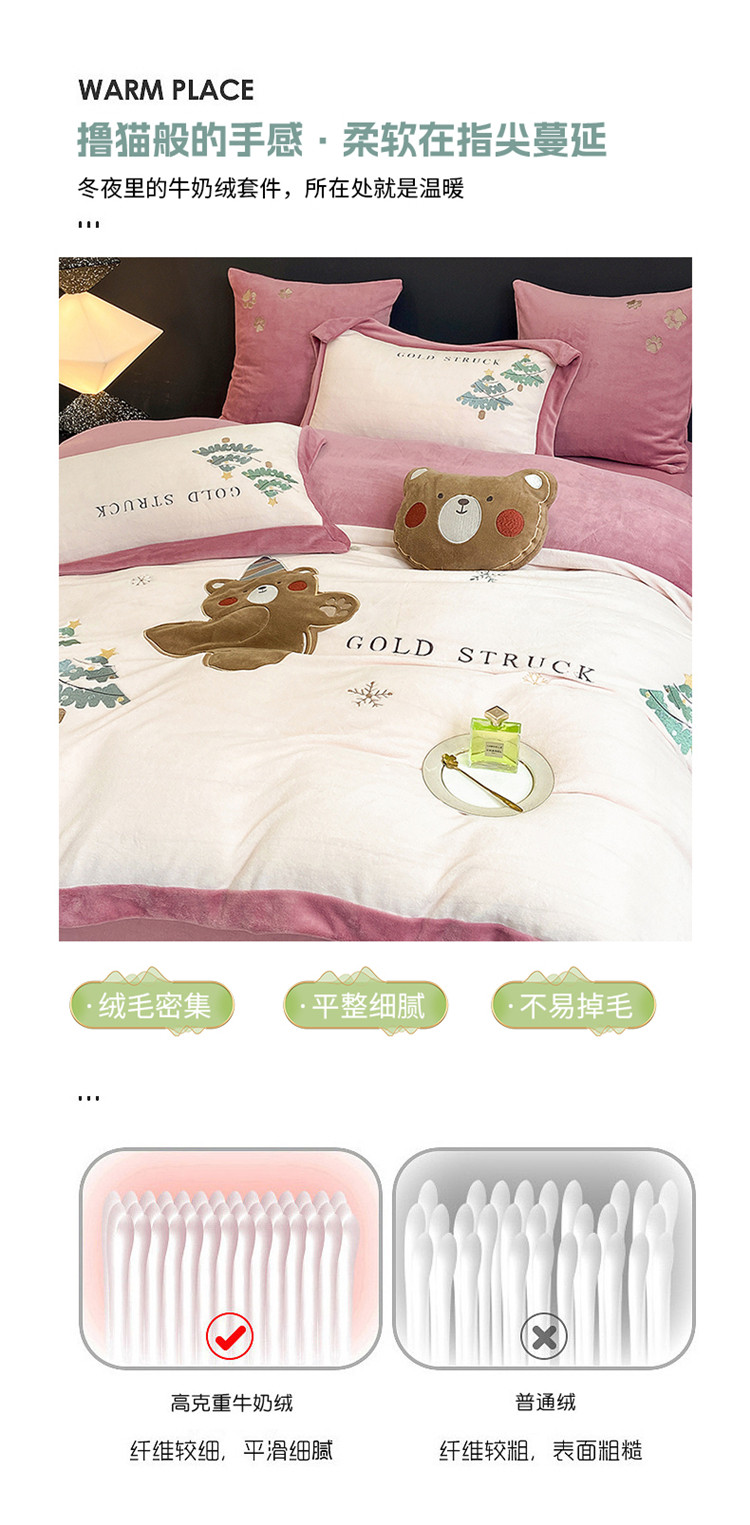 当前位置: 91家纺网 > 商品网购 > 床品套件 > 四件套 > 牛奶绒四件套 > 家居1号 2024新款230克牛奶绒贴布绣四件套奇趣圣诞熊 奇趣圣诞熊-浅粉+豆粉