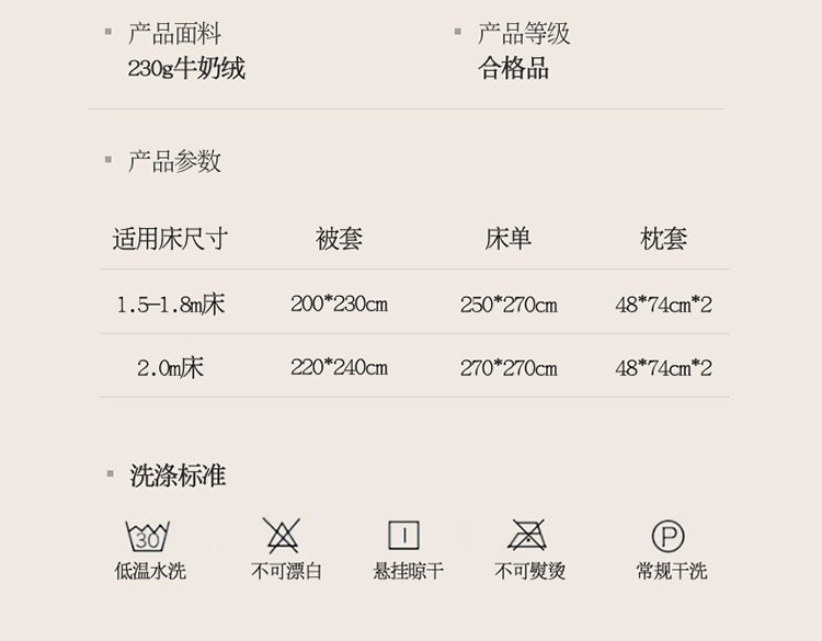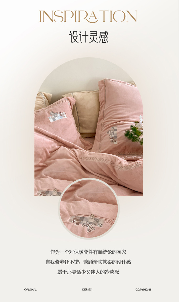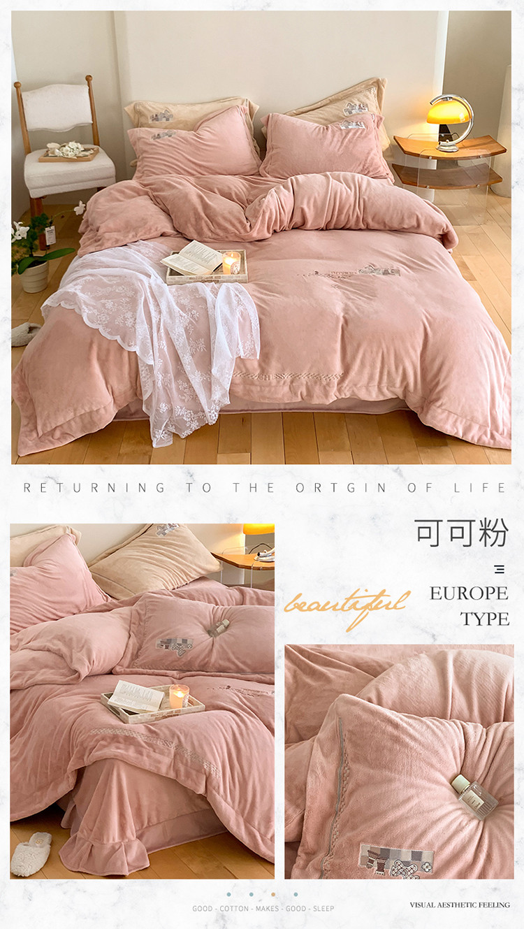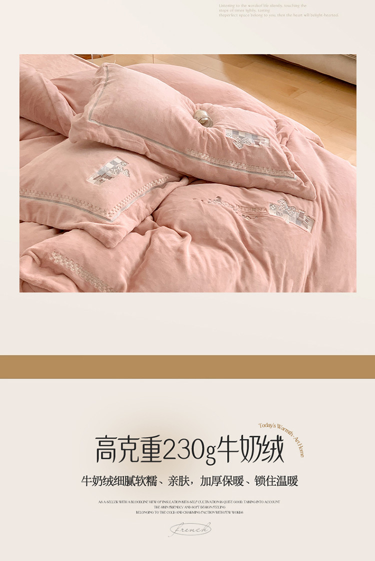 商品名称:名品优仓 2023新款高克重230克牛奶绒绣花款四件套-极简 极简-可可粉
