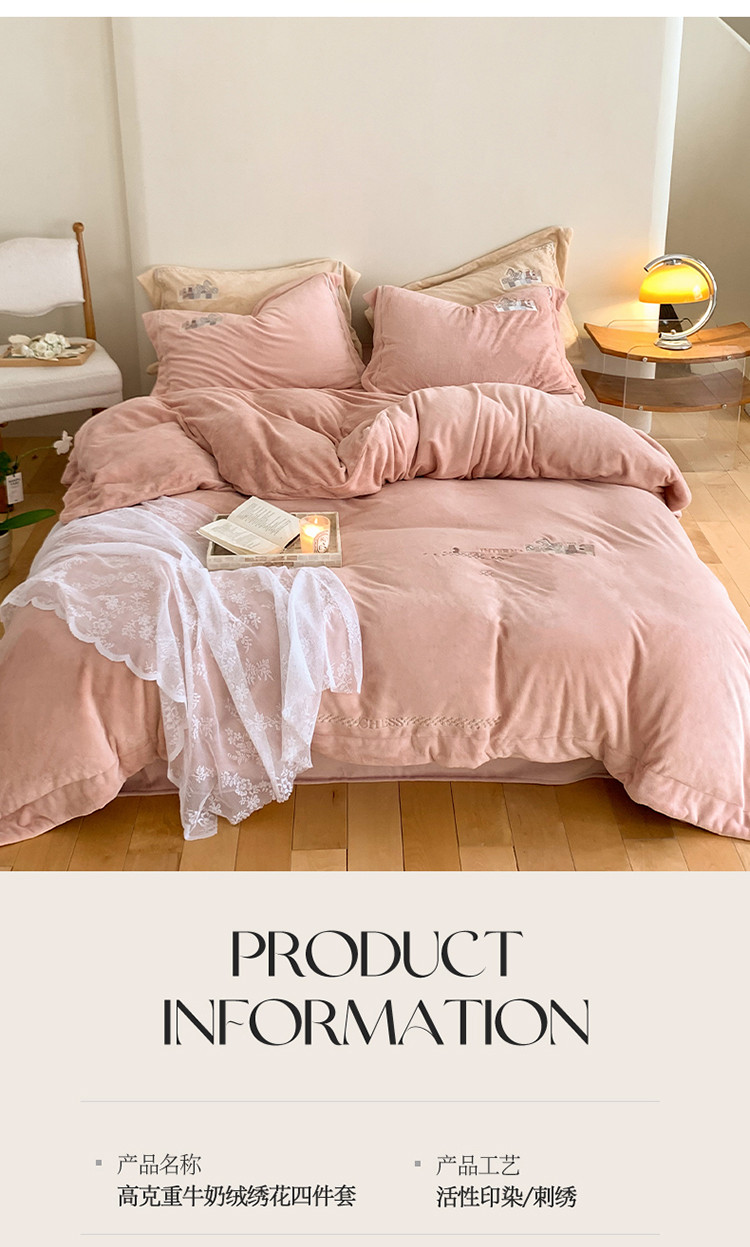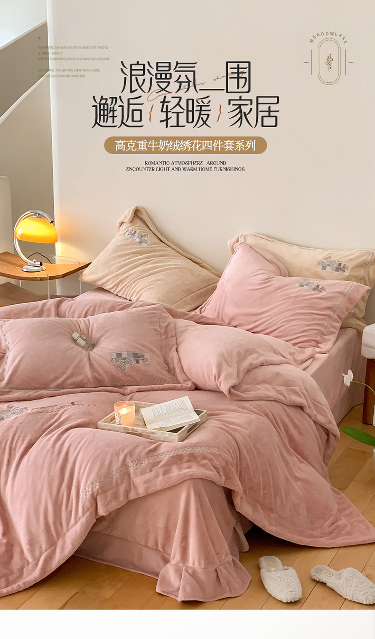 (总)名品优仓 2025新款220克牛奶绒绣花四件套-珊瑚,珊瑚-宝石蓝,珊瑚-粉色,珊瑚-姜黄,珊瑚-米杏,珊瑚-沫粉,珊瑚-杏粉
