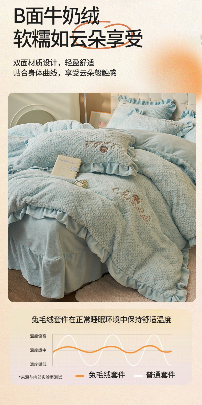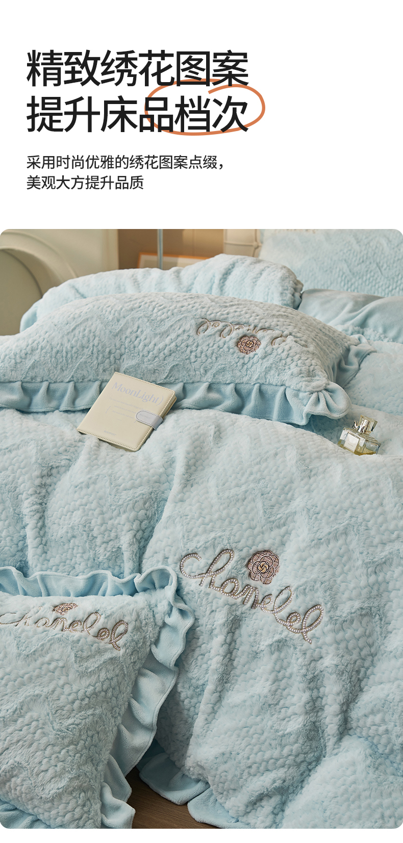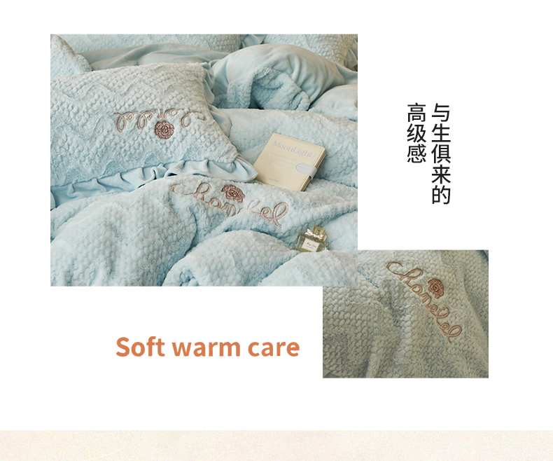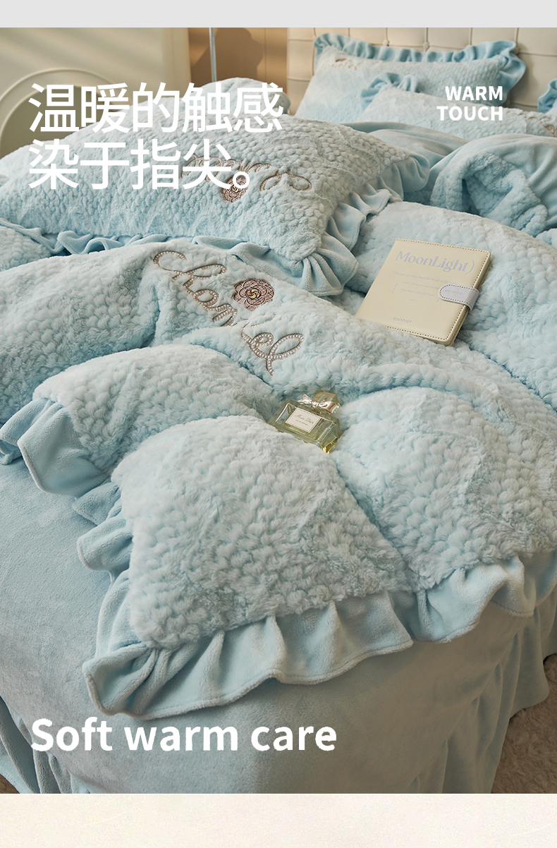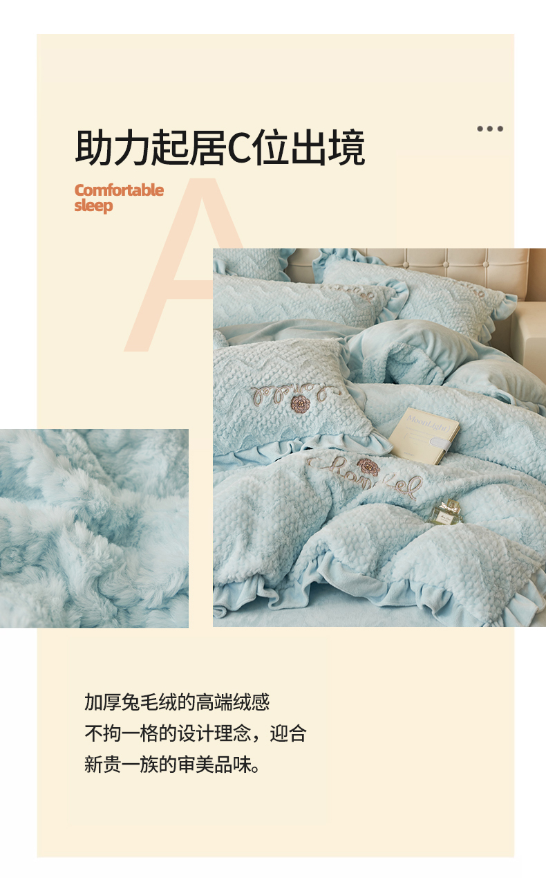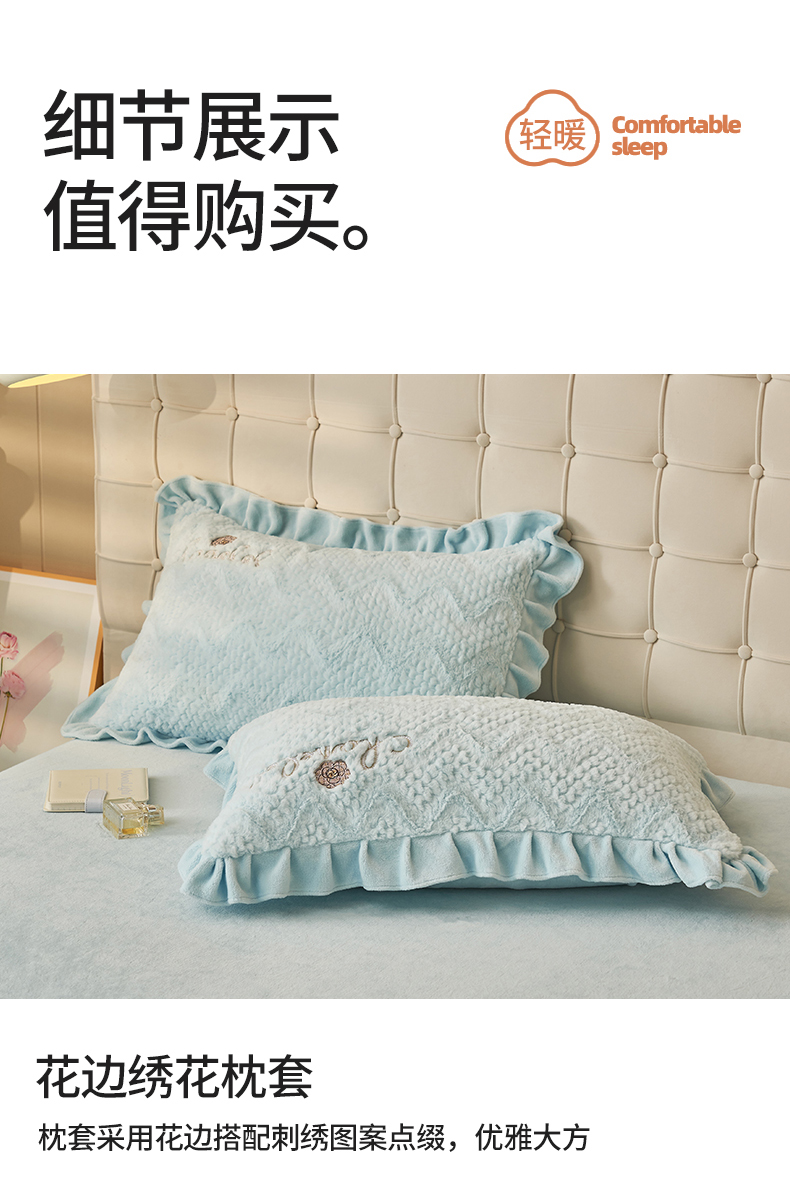商品名称:恒爱家纺 2023新款兔毛绒绣花四件套 波浪款-浅兰