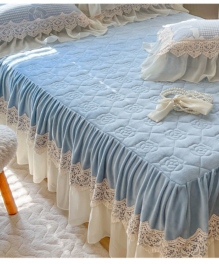 网红馆 2025新款牛奶雕花绒床裙花间浪漫 天空蓝