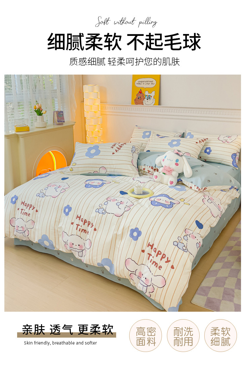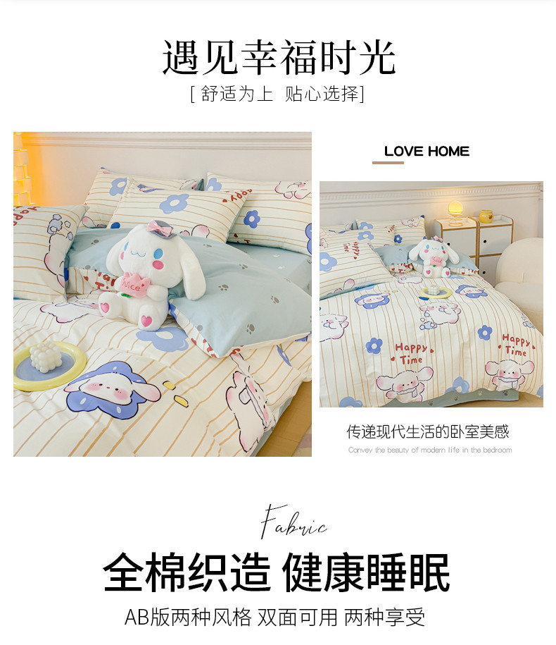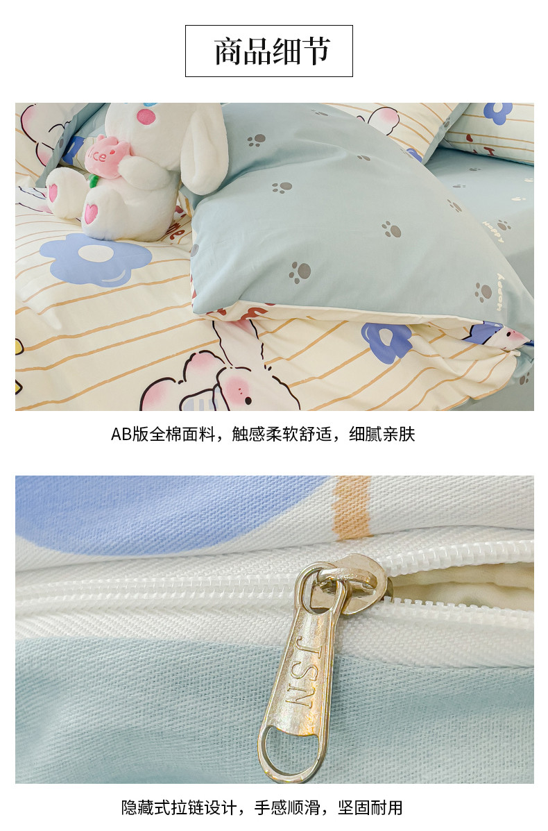 当前位置: 91家纺网 > 商品网购 > 床品套件 > 四件套 > 全棉普通四件套 > 金丝鸟家纺 2023新款全棉小清新四件套-第三批 条纹大耳兔