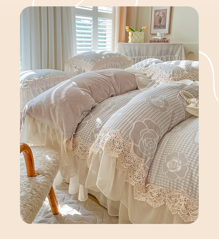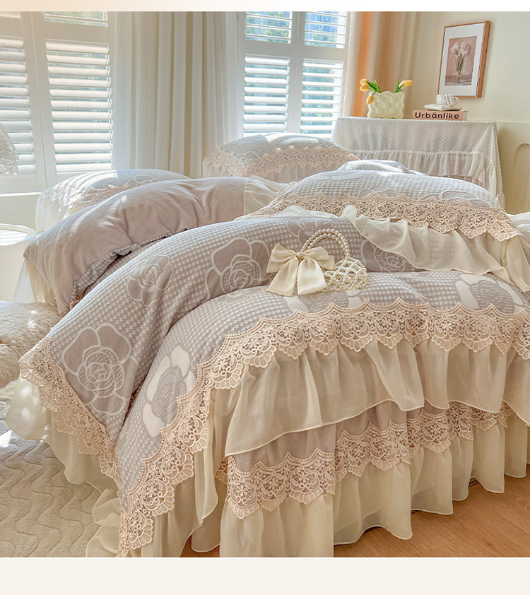 当前位置: 91家纺网 > 商品网购 > 床品套件 > 四件套 > 牛奶绒四件套 > 网红馆 2025新款花间浪漫 牛奶雕花绒四件套 清新紫(灰色)