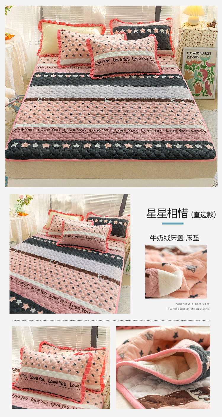 羽爱家纺 2024新款牛奶绒直边款床盖床垫 星星相惜