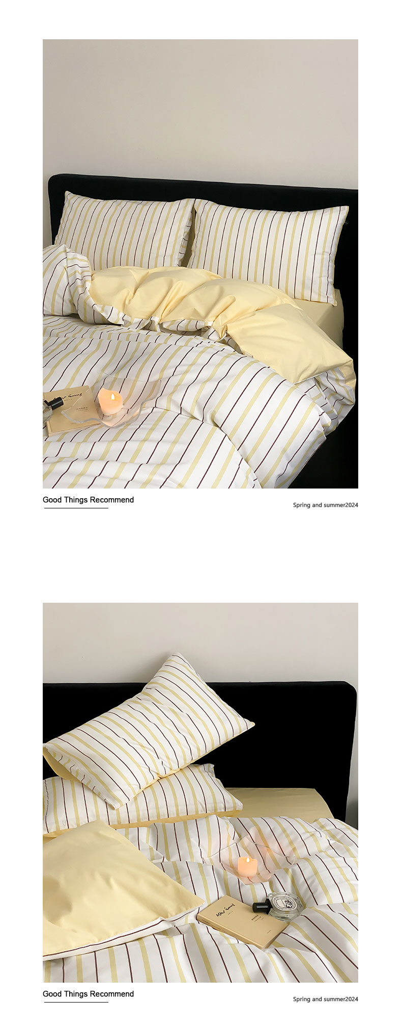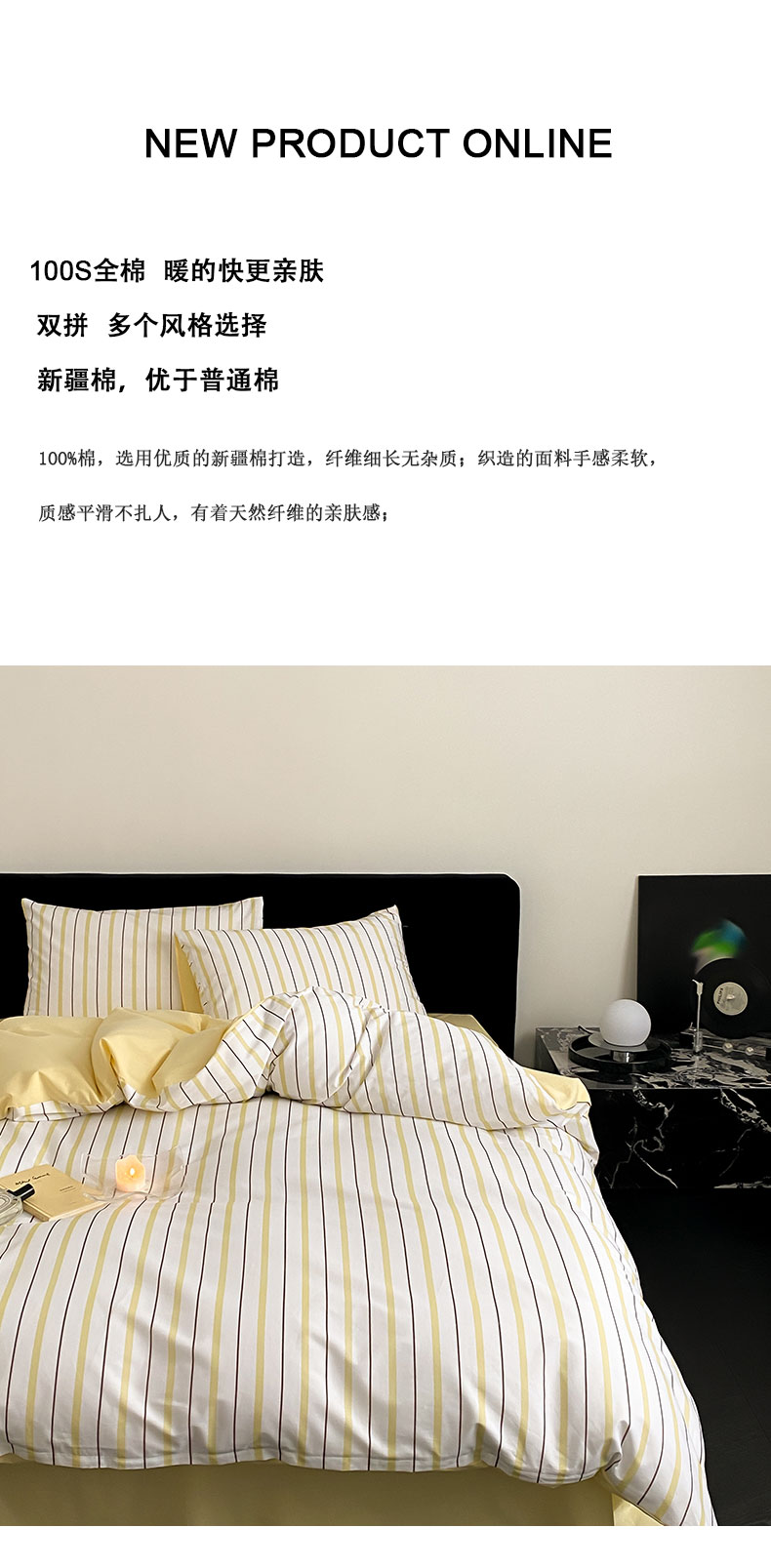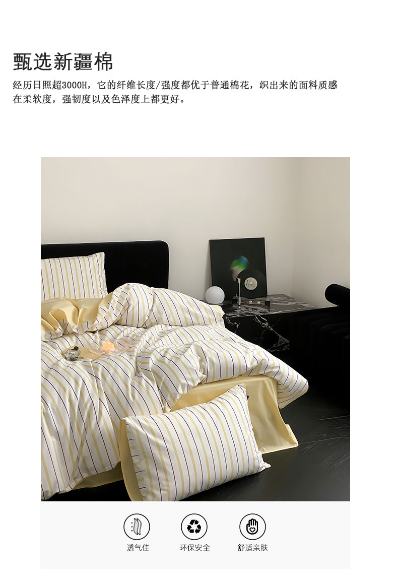 商品名称:Mr.pig猪先生水洗棉 2023新款A类全棉印花竖条纹四件套 嫩黄条