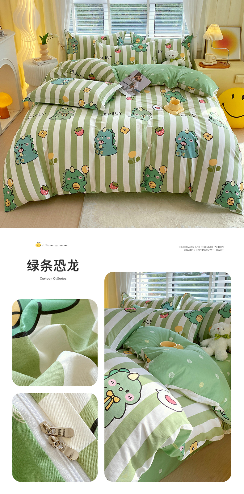 当前位置: 91家纺网 > 商品网购 > 床品套件 > 四件套 > 全棉普通四件套 > 拾物记 2024新款A类喷气全棉12868卡通印花四件套 绿条恐龙0