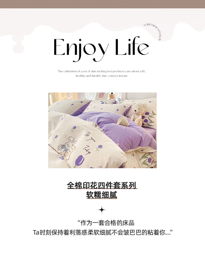 (总)曼之夏 2025新款原棉加厚磨毛印花四件套,比心,布鲁兔,春风十里,大都会,简兮,麦琪熊,麦语-灰,梦游记,眠时光,奇想,轻奢生活,塔维尔(米),甜心小熊,威斯丁,闲趣时光,意林(兰)