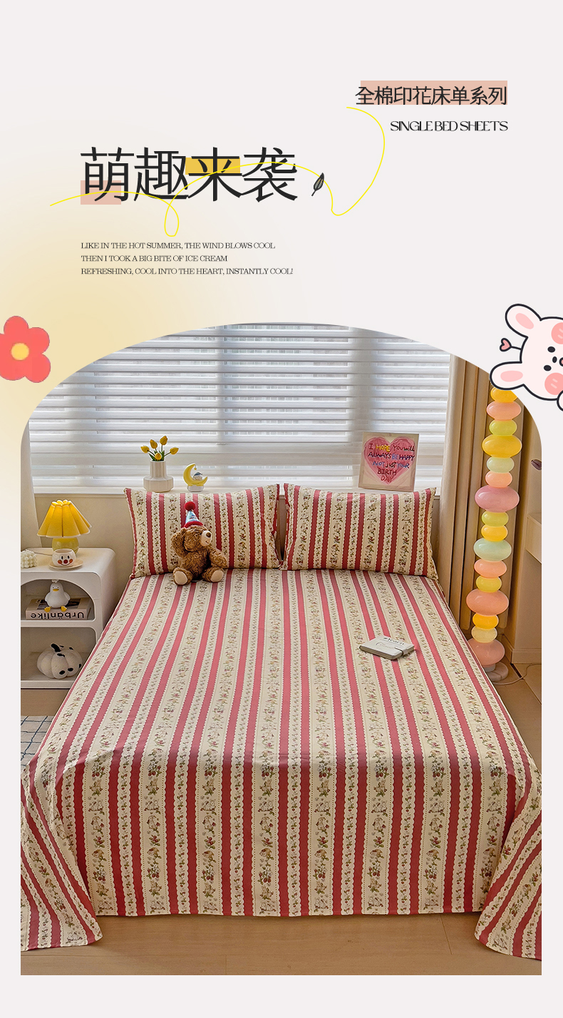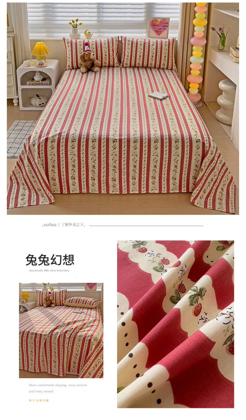 • 91家纺网 家纺一手货源 找家纺 名兮家居 2024新款小清新全棉单品床单 兔兔幻想