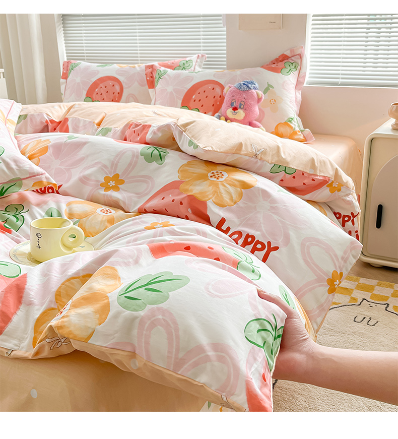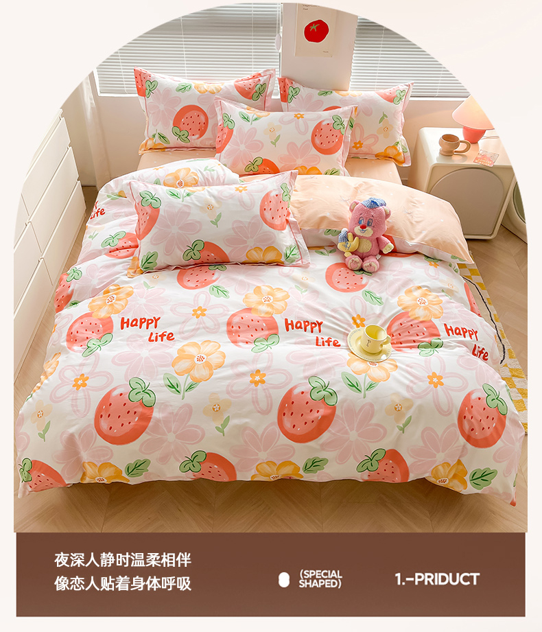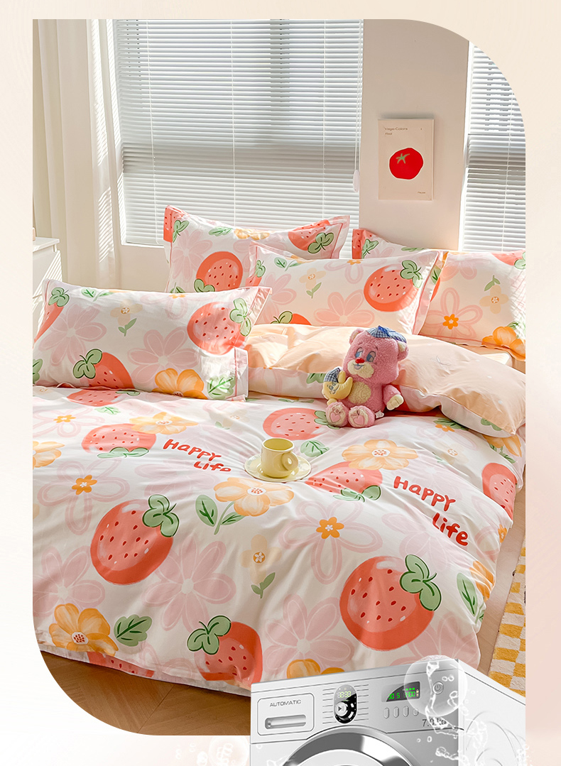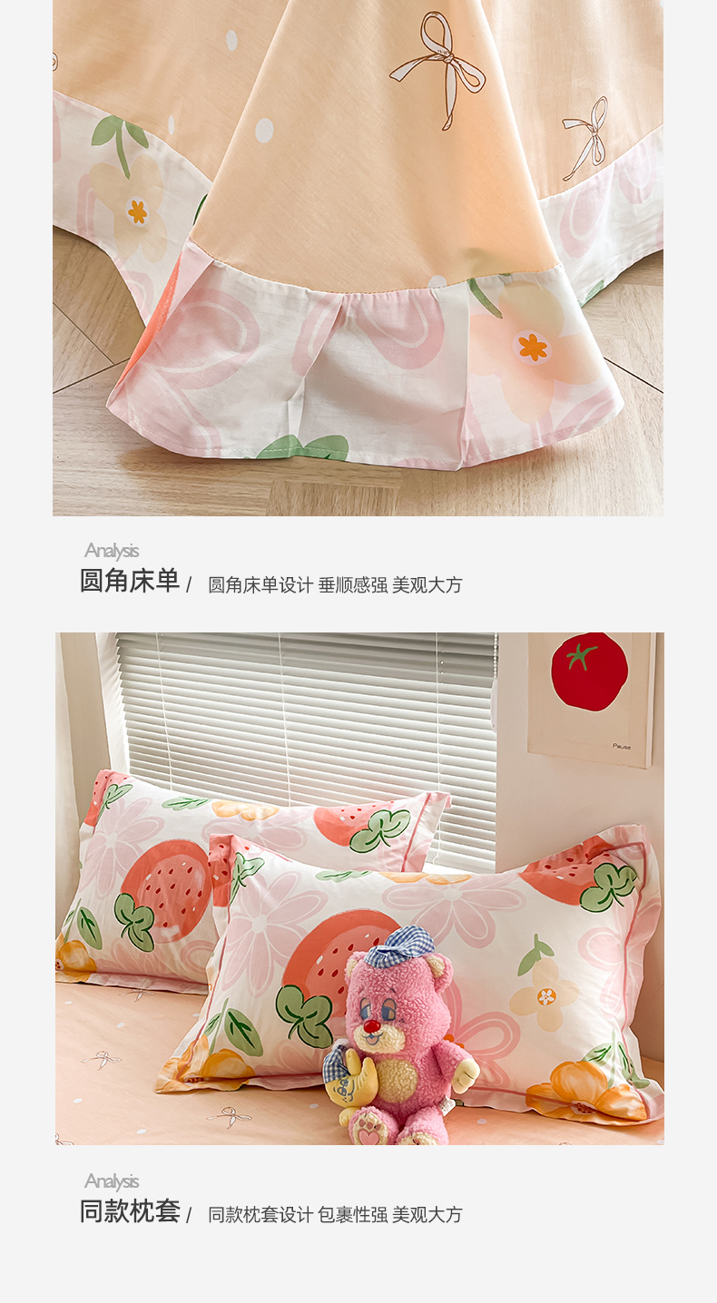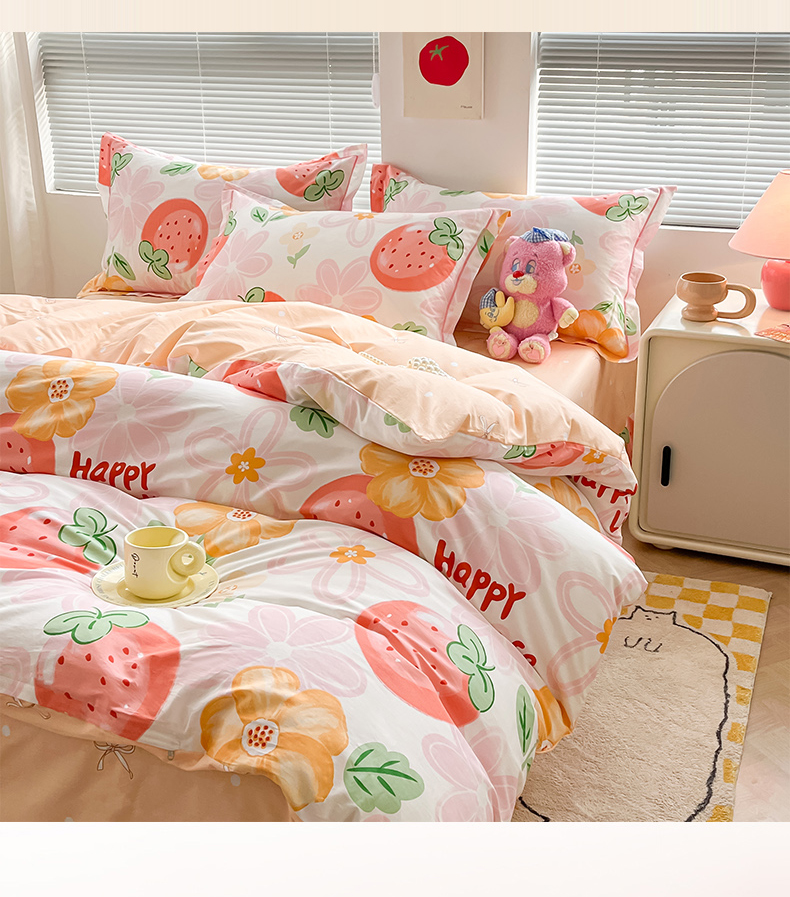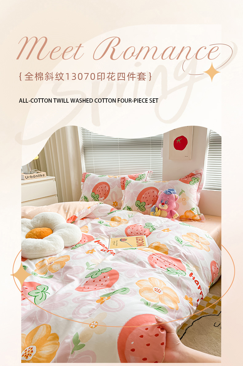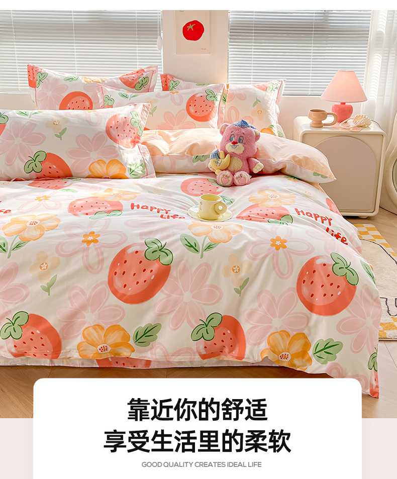 简约家纺 2025新款全棉斜纹13070田园风印花四件套 草莓圣代