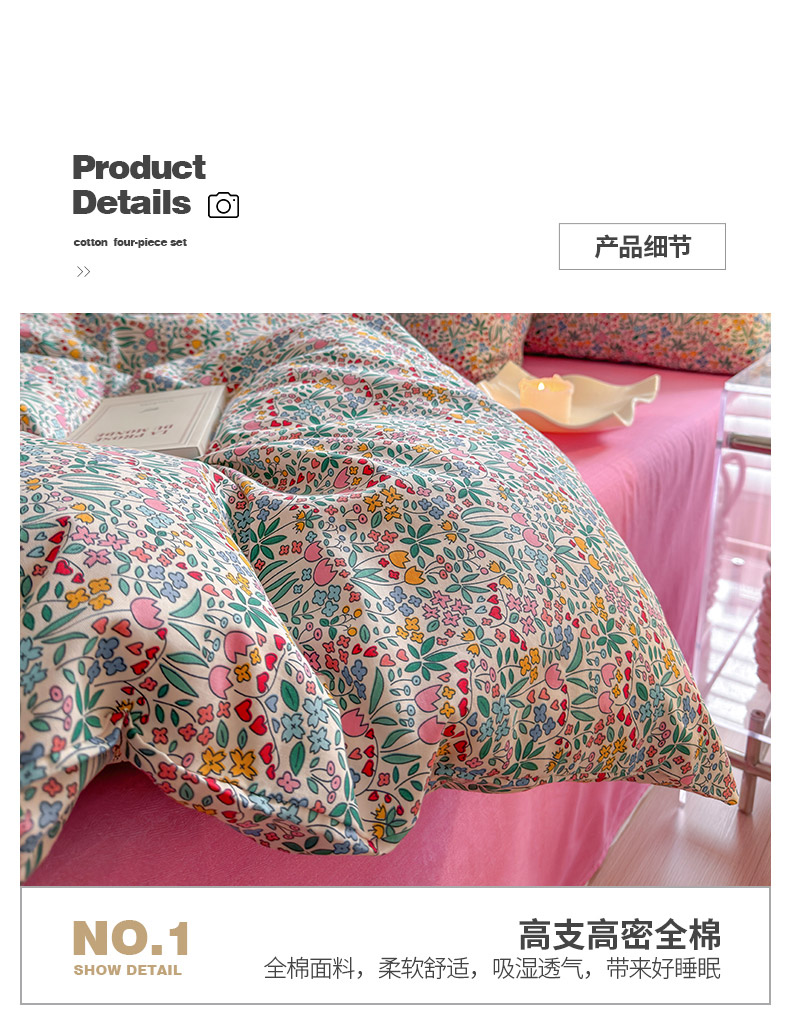 商品名称:怡家居 2024新款全棉印花第二批碎花类四件套 花绘