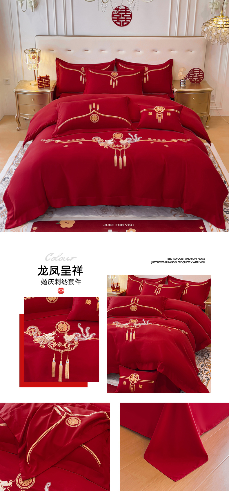 商品名称:2024新款亲肤面料婚庆刺绣系列四件套 吾家有喜