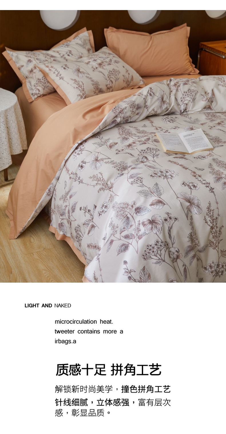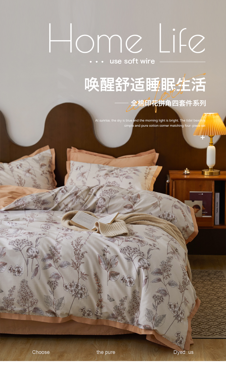 千朵森 2024新款全棉长绒棉拼角款印花四件套(风格二) 瑞莎