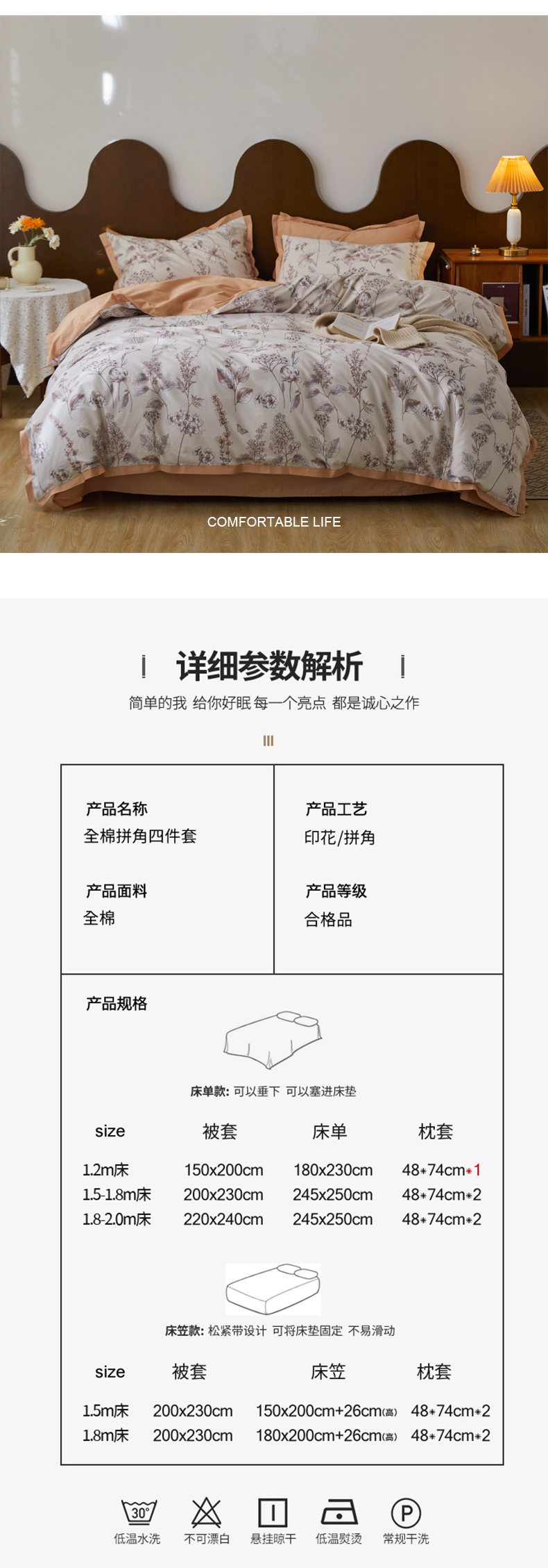 商品名称:千朵森 2024新款全棉长绒棉拼角款印花四件套(风格二) 瑞莎